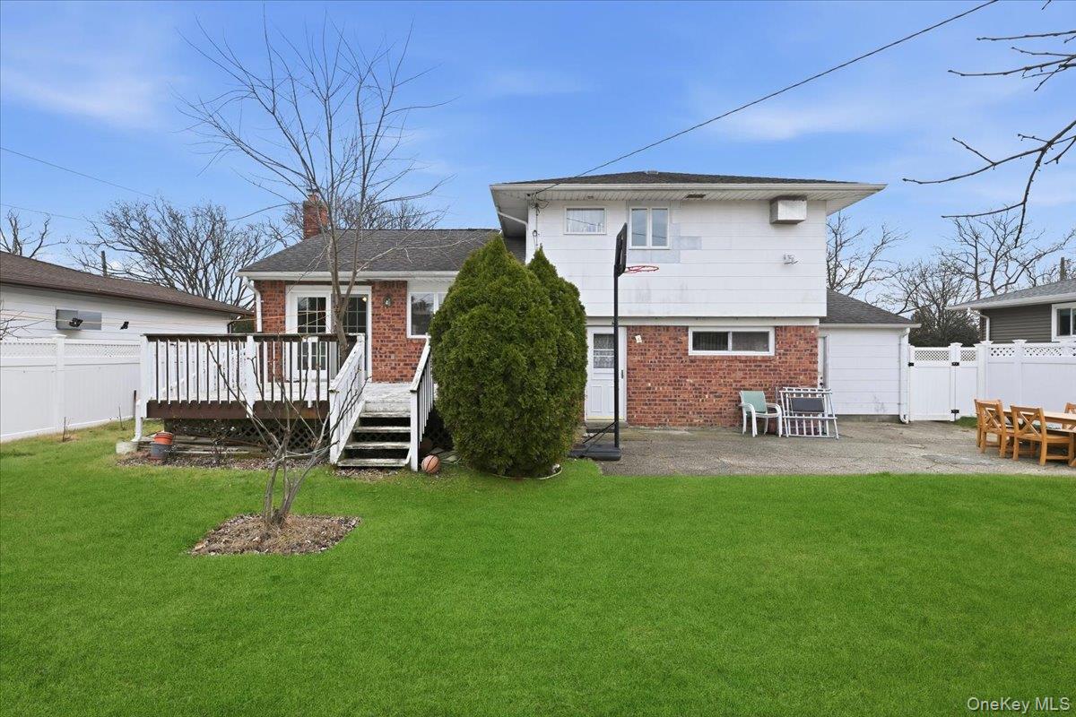 Spacious split-level home located in the heart of Hicksville, just minutes from parks, shopping centers, and local amenities. This home offers 4 bedrooms plus a bonus 5th room, providing flexible space for a home office, guest room, or extended family. Featuring 2 full bathrooms and situated on a generous 70x100 lot, the property offers plenty of room both inside and out. Also has a partial basement that's finished for lots of storage. With low taxes and a versatile layout, this home is ideal for a large family and presents excellent potential to customize and make it your own. A fantastic opportunity in a prime location.