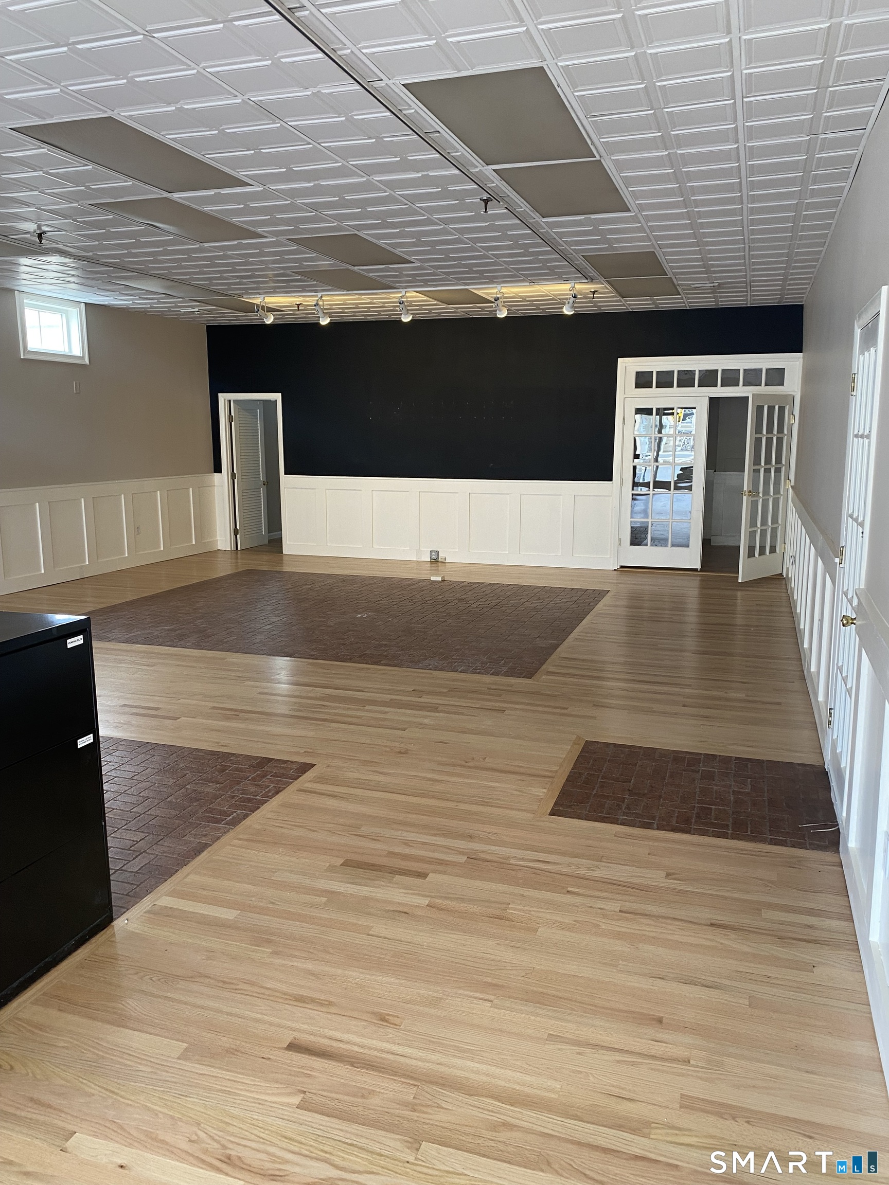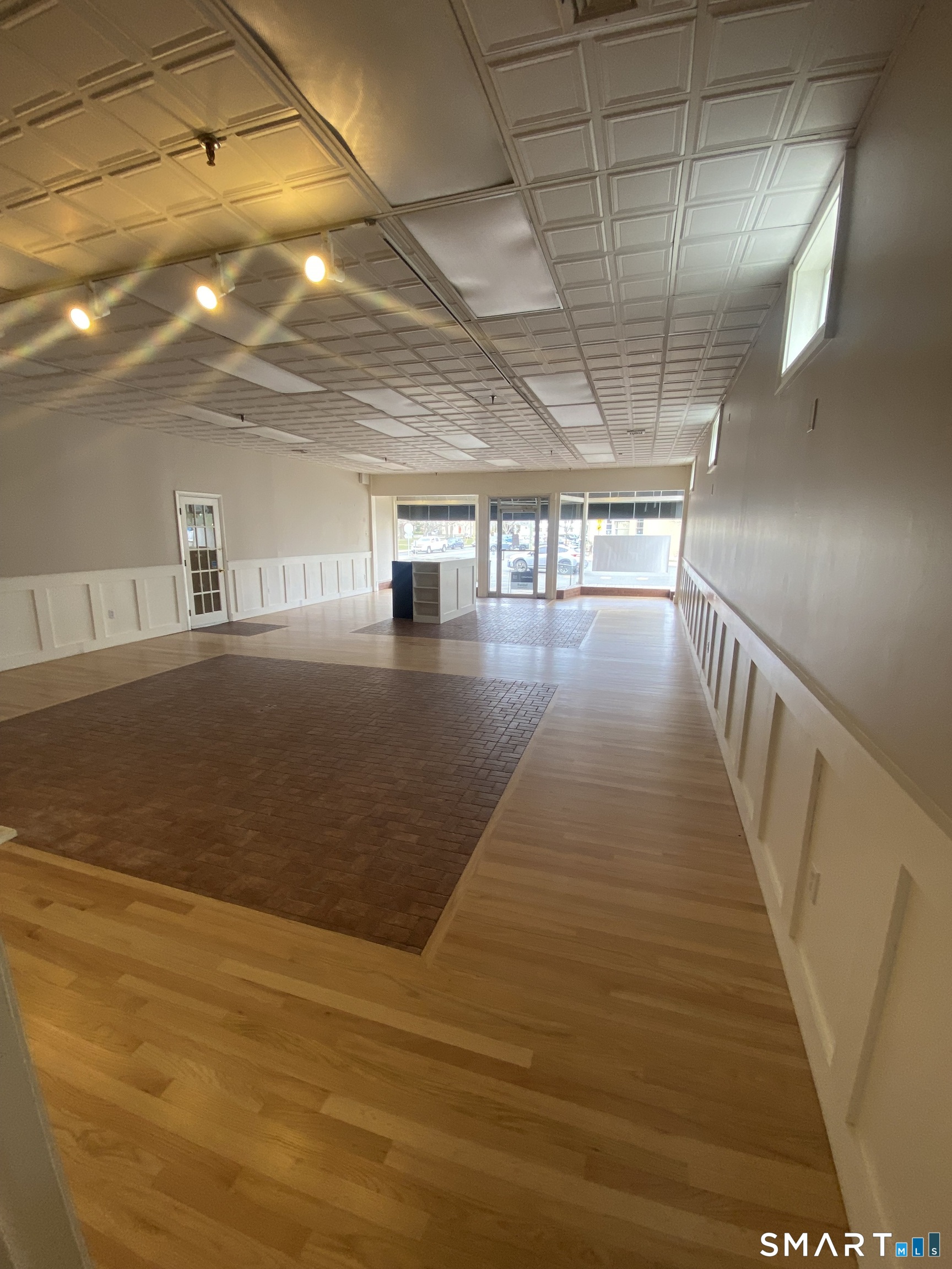 Position your business in one of the most sought-after locations on the Connecticut shoreline. This large retail space sits directly on the Guilford Green offering unmatched visibility, foot traffic and the charm of a vibrant New England town center. The space is bright and open with a newly refinished hardwood floor and fresh paint. The open floor plan is ideal for a custom build out of your business. This space is perfect for a curated retail shop or a professional office such as an, architect and or design firm. Large display windows (25ft) provide excellent natural light and prominent street presents while the flexible floor plan supports a wide range of business concepts. Customers will appreciate the convenience of near by public parking, walkability to restaurants and shops and the lively year round activity of the green. The space has interior access to Cilantro Specialty Foods & Coffee Roaster LLC, a vibrant cafe and meeting place for the community. This offers the potential for increased traffic flow and visibility. The space does not permit food production or the sale of prepared or packaged food.