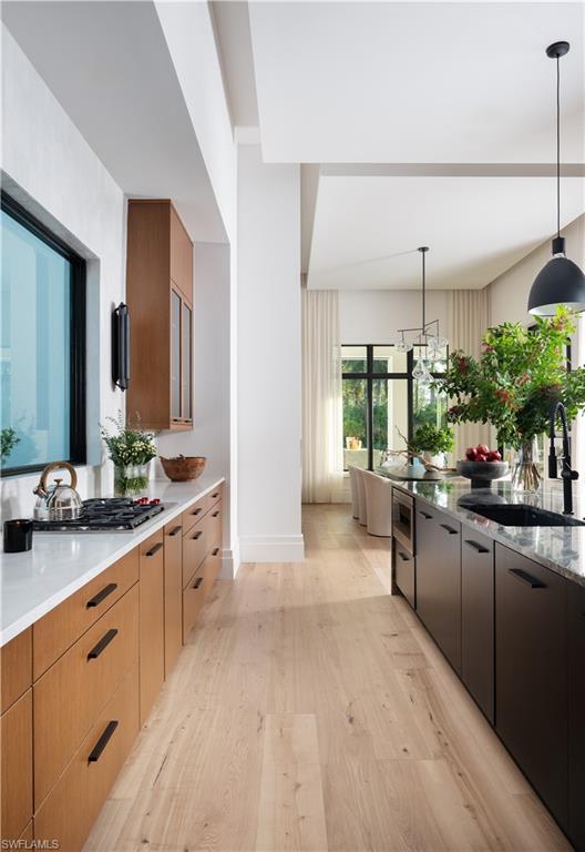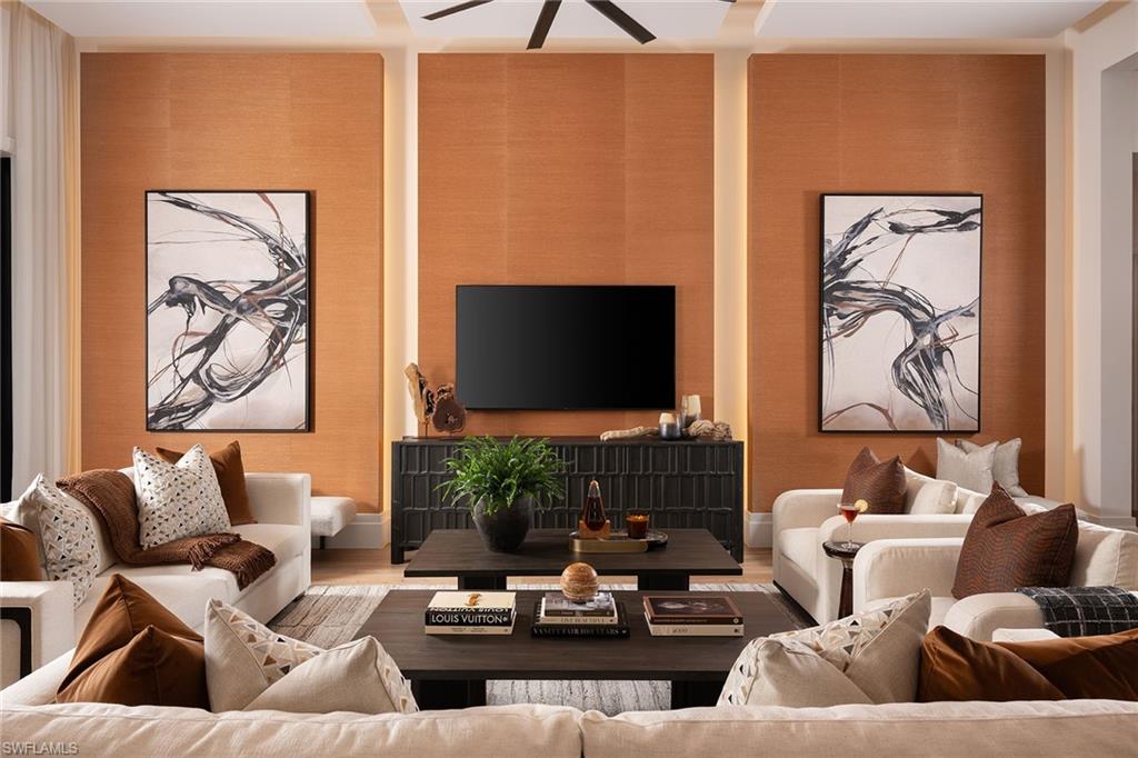 DESIGNER FURNISHED AND MOVE-IN READY HOME AVAILABLE NOW! Seagate Development Group and Theory Design present the professionally designed and furnished Burrata Custom Home in Silver Oak, one of Seagate’s newest, luxury communities in Naples. This custom home is a collaboration between Seagate Development Group and Theory Design with Architecture by RG Designs, and custom landscape & hardscape design by Outside Productions. Silver Oak, developed by Seagate Development Group, offers exclusive living on 10 expansive Estate homesites, each spanning 1. 25 acres. With no homeowner's association, residents have the freedom to customize their homes and enjoy a superior standard of living. Enjoy a mid-century modern design with natural finishes, with Baltic Ash wood floors and cove lit reverse soffit ceiling details throughout. The Burrata model features four bedrooms, a study, four full and two half baths, and an oversized four-car garage. The spacious outdoor living area is accentuated with a private putting green, fire pit, oversized pool with sun shelf and spa, and plenty of yard space. The outdoor living area also features electric roll down screens, tongue and groove stained ceiling, outdoor kitchen, stone fireplace, pool bath and lush landscaping. The gourmet kitchen includes two tone stacked cabinetry, with lit glass cabinets, backsplash, under cabinet lighting, island with waterfall countertop, paneled Sub Zero/Wolf appliance package, walk-in pantry, oversized window providing plenty of natural lighting. The dining area includes a bar with an ice maker and a full height wine refrigerator and zero corner pocket sliding glass door. The master suite features a sitting area with glass door leading to the covered lanai. The master bathroom features marble floors and comes equipped with Kohler plumbing fixtures including 2 private water closets, dual vanities, soaking tub and a spacious shower with 3 showerheads. Additional luxury features include 9. 5” Baltic Ash wood floor throughout, custom built-in closets, 1 ¾” solid interior doors, Emtek door hardware, linear HVAC diffusers in common areas, level 5 drywall, double pane Andersen impact windows & doors, Control4 home automation system, sound system, spray foam insulation, custom iron front door, natural gas, lush landscaping, and interior designer selected custom light fixtures and furnishings. Seagate’s portfolio of companies specialize in custom homes, renovations, interior design, and land development. Together, bringing exceptional concierge levels of service to everything we do.