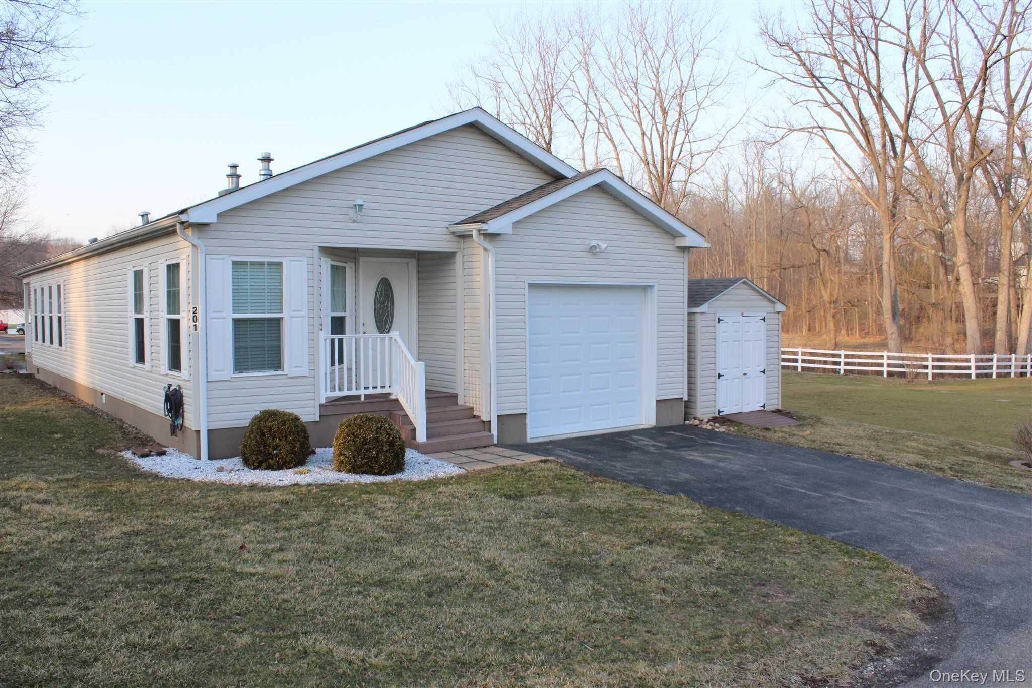 Luxurious home located in the highly sought after Brittany Terrace community in Rock Tavern. Rare unit in this 55 plus community with a one car attached garage! Beautiful 2 bedroom home with a den/sitting room close to 1, 700 square feet. The home is in excellent condition, meticulously maintained. Corner lot with two driveways, 2 porches, attached garage (garage has a side door to outside too) and a matching shed. Features include - fantastic open floor plan that is great for entertaining, spacious kitchen with upgraded cabinets, peninsula, pantry with pull out shelving, lazy susan, double SS sink, SS Whirlpool appliances (fridge with an ice maker), recessed lighting, neutral paint throughout, master bedroom with huge walk in closet and en-suite master bath with over sized walk in shower with a seat and a large linen closet, offering privacy on the other side of the home you have a second bedroom with walk in closet, full guest bathroom and third room used as an office/den that gets so much natural light it is guaranteed to be your favorite room. Large laundry room with washer/dryer included, custom cabinets above the washer and dryer and a folding station with extra cabinet storage. Other features include - recessed lighting, attached garage, shed, vaulted ceilings, central air, custom blinds, trex porch, two paved driveways both recently resealed, storm doors and sooooo much more. Lots of space, very bright, open and inviting. The pictures do not do this beauty justice call now before it is too late. 60 miles to NYC, near trains and bus to NYC, 17, 84, 87, West Point, and Stewart. A must see!