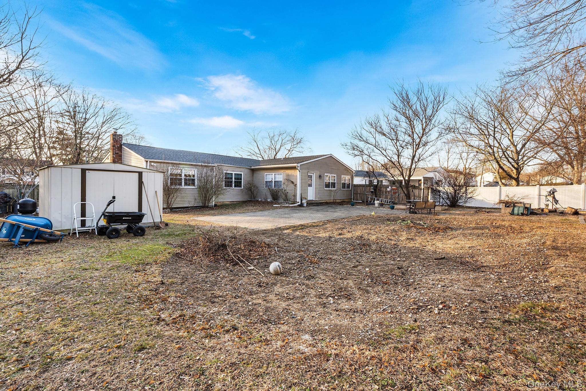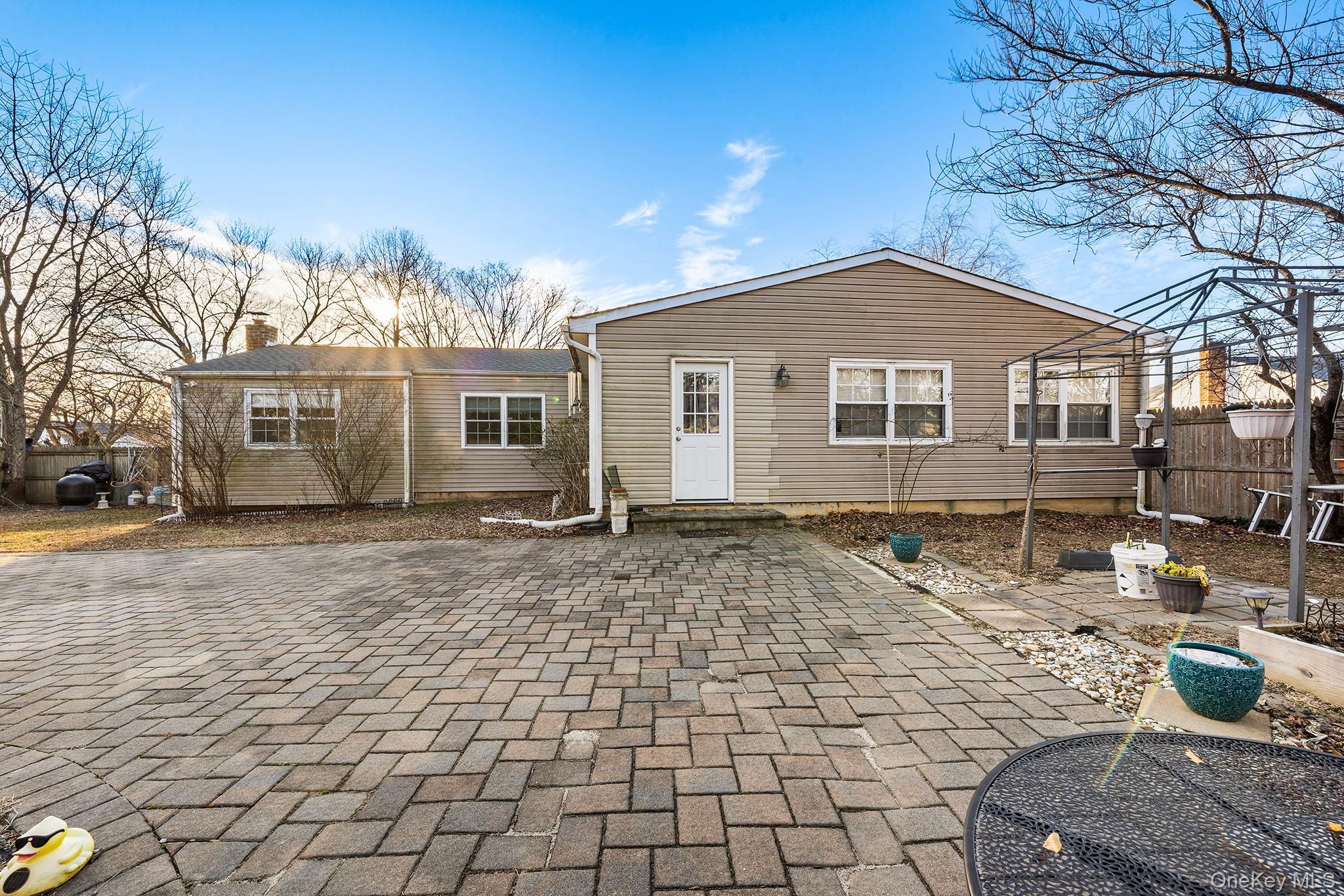 Welcome to 19 Evelyn Rd — a beautifully updated ranch-style home set on a generous 1/3-acre lot in the heart of Port Jefferson Station. From the curb, this property impresses with updated siding, newer windows, and a brand-new roof (2023), offering outstanding curb appeal and long-term value. Inside, enjoy a thoughtfully refreshed interior featuring all rooms freshly painted, an updated kitchen, and solid wood doors throughout. The main level includes three spacious bedrooms, a full bath, and a half bath, while a private space provides an additional bedroom and a full bath, offering exceptional flexibility for a variety of living arrangements. A new full bath was completed in 2022, enhancing both comfort and functionality. The expansive backyard is designed for entertaining, highlighted by a Cambridge paving stone patio and electric already in place for a future pool. The sizable 1/3-acre property creates endless opportunities for outdoor enjoyment and recreation. Recent upgrades include the newer roof, updated windows, and modern finishes throughout, making this home truly move-in ready. Located in the highly regarded Comsewogue School District, a Middle States accredited district, and conveniently close to shopping, dining, major roadways, and the charm of Port Jefferson Village — this exceptional property delivers space, style, and an unbeatable location.