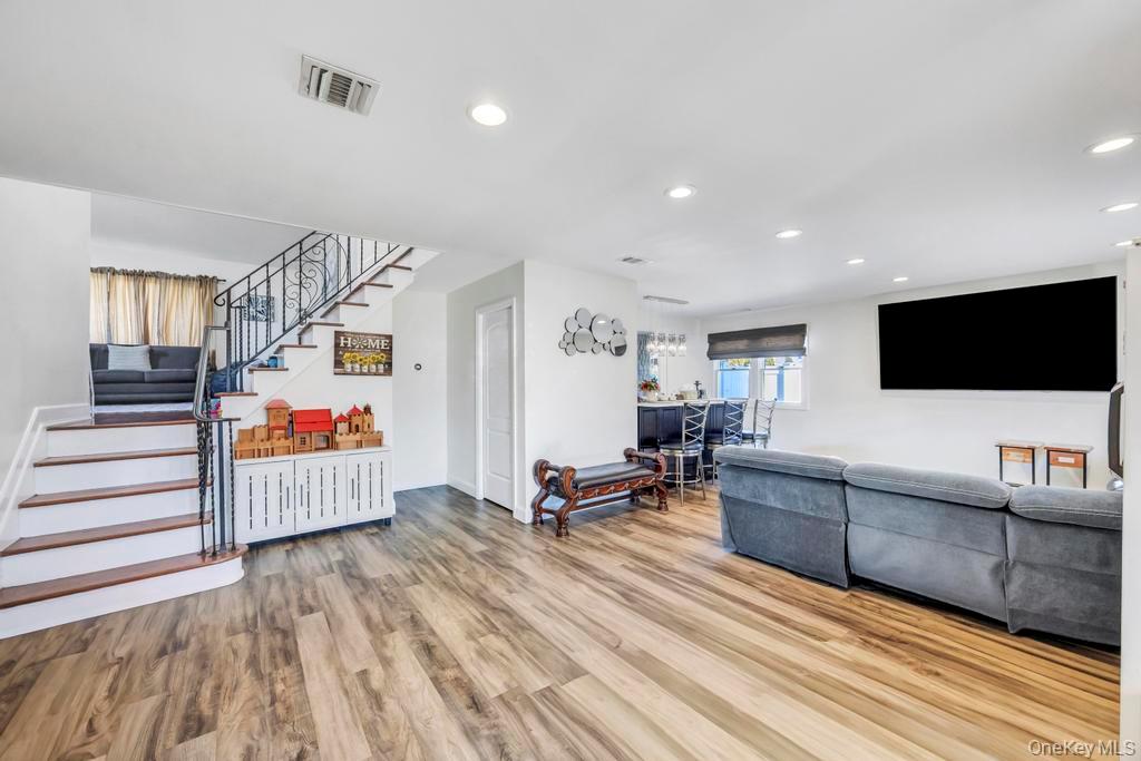 Introducing this expansive 2, 900-square-foot Splanch home located in Babylon. Featuring 5 spacious bedrooms and 2. 5 bathrooms, including a primary suite with its own private en-suite, this residence is designed for comfort and functionality. The main level boasts a bright, open floor plan featuring a stunning kitchen equipped with modern black appliances, stone countertops, and a large center island with seating. The kitchen flows seamlessly into a formal dining room and multiple living areas characterized by recessed lighting and beautiful hardwood and laminate flooring. For those working from home, a dedicated office space provides a quiet retreat—five well-appointed bedrooms, including a master suite and a versatile room with charming wood paneling, 2. 5 bathrooms featuring contemporary updates, including a primary bath with a walk-in shower and stone-topped vanities. A large basement with a finished section offers additional recreational space, while a partial unfinished area provides excellent storage or workspace. Set on a manicured lot with a fully fenced-in yard, the exterior is an entertainer’s dream featuring a massive stone patio with a built-in fire pit. Peace of mind comes standard with a roof replaced within the last 10–15 years, and a high-efficiency HVAC system, heating system, and water heater all updated within the last 1–5 years. Additional Amenities include a 1-car garage, central air conditioning (CAC), and convenient laundry facilities. This move-in-ready Colonial combines massive interior square footage with a backyard oasis, making it a rare find in today’s market.