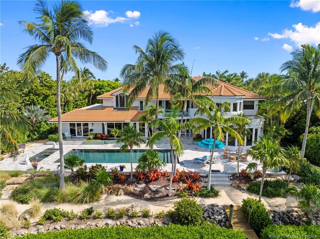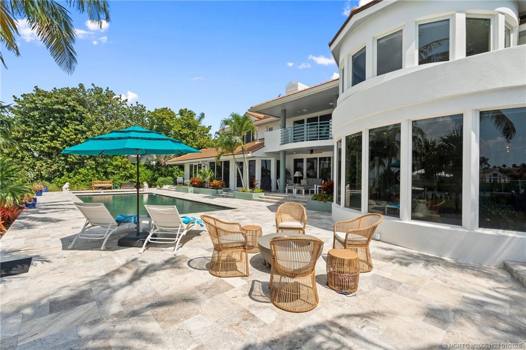 Discover this expansive Waterfront Estate located on a secluded barrier island in prestigious Sailfish Point Country Club. Enjoy stunning views, turquoise waters, 127 ft of waterfront & welcome guests by yacht at your private dock. Completely reimagined, the home blends timeless elegance w/ modern coastal luxury after a complete renovation in 2022. The chef's kitchen features high-end appliances, quartz counters, a large walk-in butler's pantry & panoramic views. The primary suite offers his-&-her spa-like baths with dual walk-in closets & expansive views. An elevator was added along with an additional bay garage- 4-car garage + 2 golf carts makes this home perfect for any car enthusiasts. Boaters will love the deep-water access, 16K lb lift & pilings for a large vessel. The beautifully redesigned pool framed by lush tropical landscaping. Enjoy the ultimate lifestyle with access to fine dining, golf, tennis, spa, fitness, private beach & an exclusive yacht club, only at Sailfish Point.