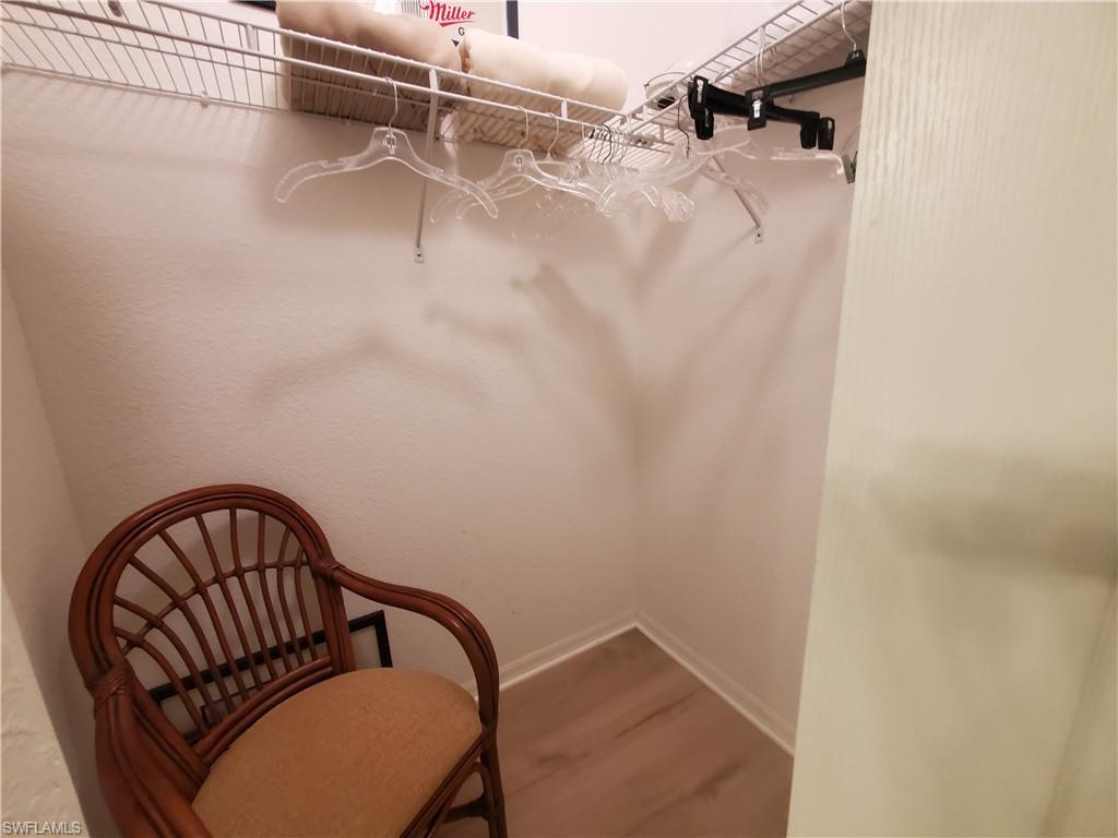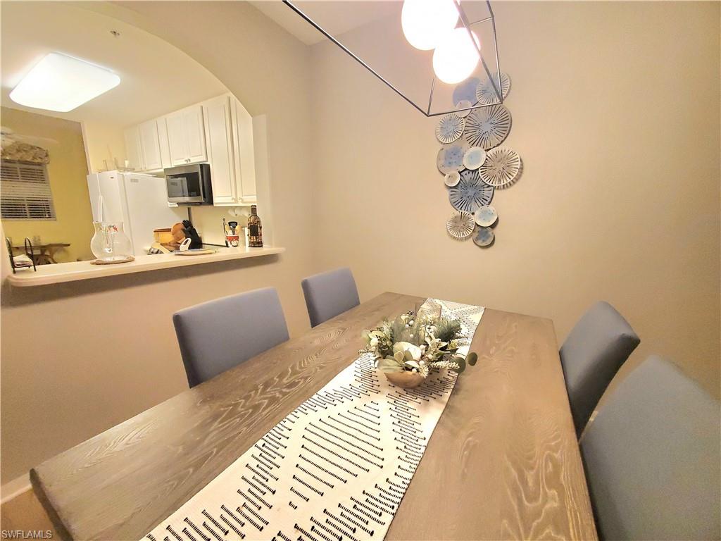 Stunning Sterling Greens move in ready condo with picture perfect views and FULL GOLF membership. Extra flex room model off kitchen used for office or breakfast area. Start days watching golfers- breathtaking PANORAMIC VIEWS of 17th fairway greens -- no buildings across only lush preserves. Private screened lanai with electric shutters for easy closing. WIDE-PLANK wood look luxury vinyl and TILE flows - no carpet. NEW FURNISHINGS remain if dered TO move right in! NEW DESIGNER LIGHTING. Kitchen has 42" CABINETS, updated NEW STAINLESS CONVECTION OVEN and microwave. WIDE OPEN breakfast bar to dining-living area —perfect for entertaining. Spacious primary suite has a door to the lanai and 2 walk-in closets. The split bedroom plan allows privacy for you and guests. Comes with your own locked STORAGE UNIT for bikes, beach chairs, Golf clubs, etc. . Trash shoot at elevator so easy disposal. Covered parking spot included, and option to buy vehicle. Community pool, BBQ, picnic tables, bike racks, neighbor socials. Near the Divot, with new state of the art full fitness, bocci, breakfast, lunch, bar. Clubhouse dining, bar, ping pong, billiards, library, card rooms, fire pit, golf simulation room, events. For active enthusiasts, enjoy golf leagues, lit Har-Tru Tennis, pro shop, lessons, fitness classes. All conveniences out front or back gates — just 4 mi to Olde Naples, white sand beaches, dining, shops, art, theater. Perfect Full or Part time, or Investor (renter Feb and March for automatic income). Don’t miss, beauty you'll love it!