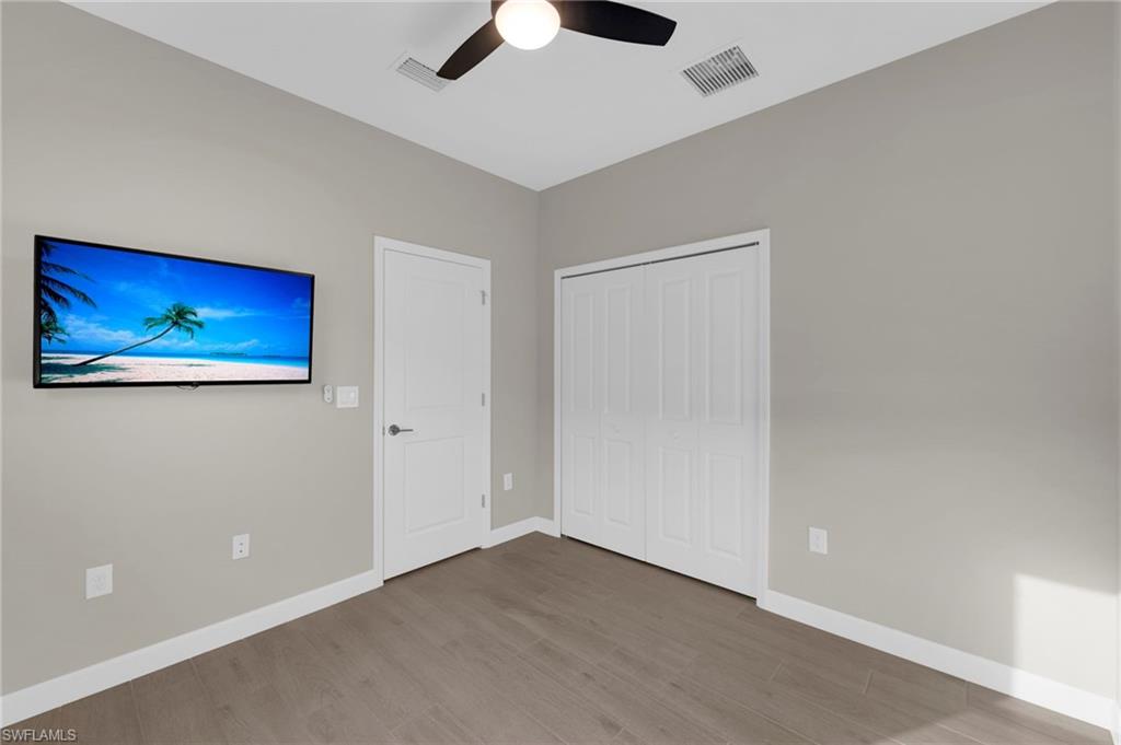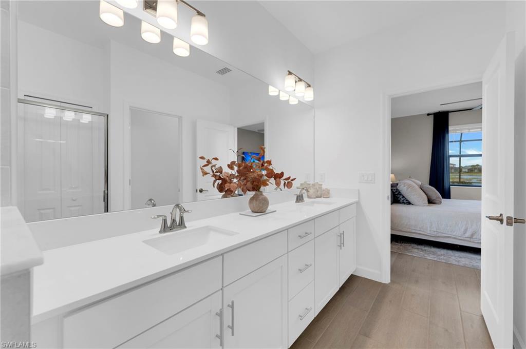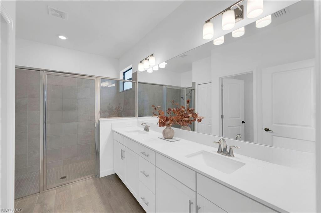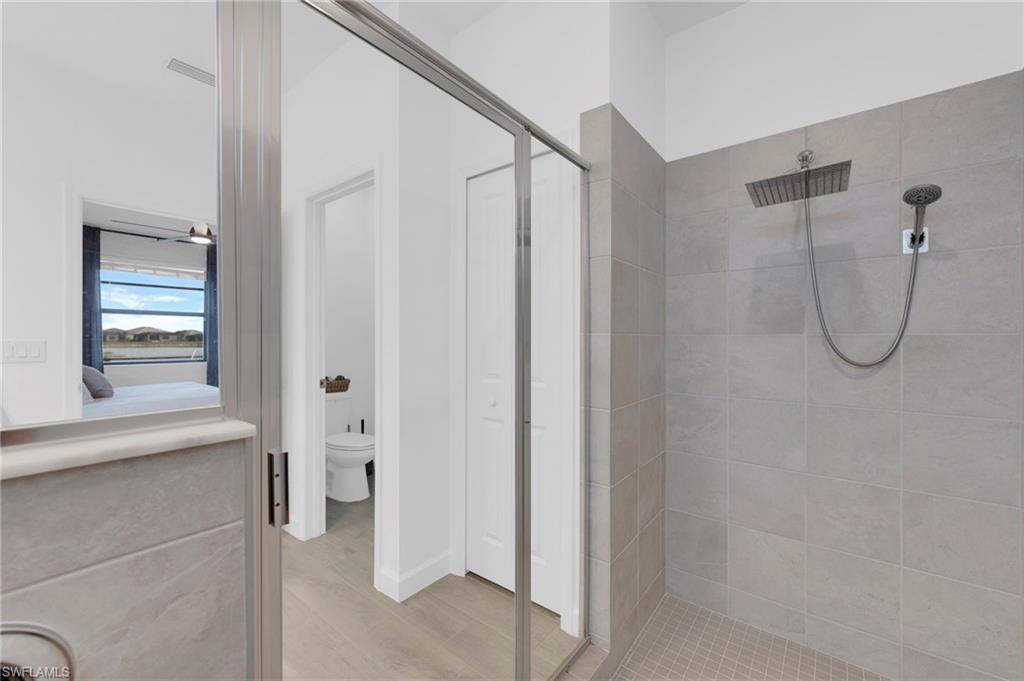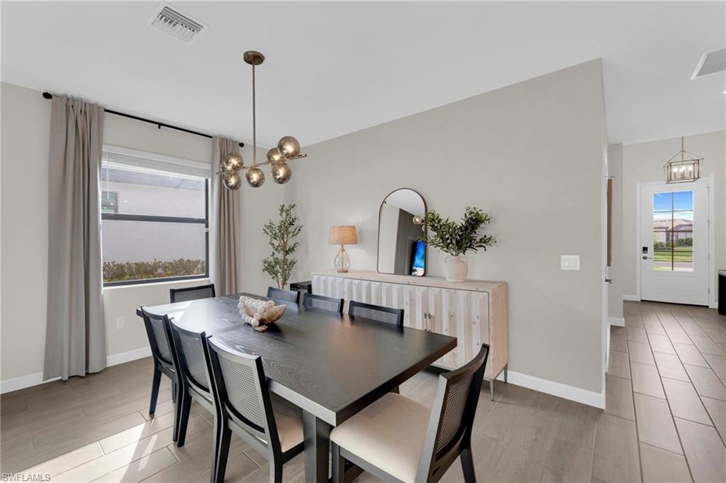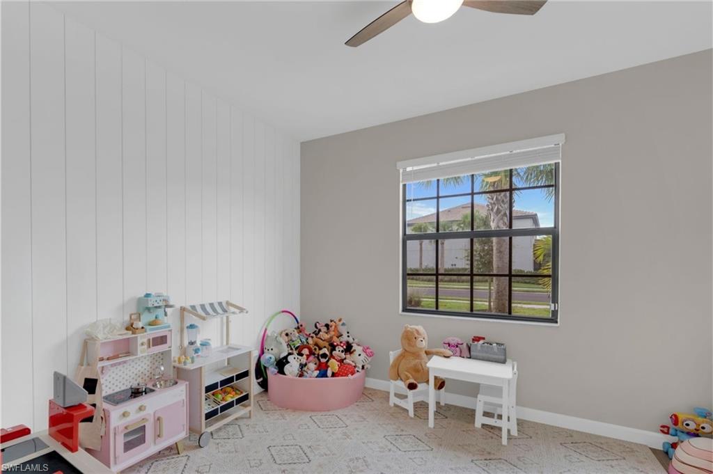 Enjoy peaceful LAKE VIEWS while relaxing in your PRIVATE POOL and SPA in this nearly new LENNAR TREVI floor plan. Located in the sought after VERDANA VILLAGE community, this highly popular layout offers 4 BEDROOMS and 3 FULL BATHS. Offered at a compelling price, this home is currently the lowest-priced property with a pool and spa available in the community. It is located in the West Village, where construction is nearly complete, the neighborhood offers a more established feel. Designed for effortless living and entertaining, the open-concept layout is enhanced by thoughtfully added feature and accent walls, including a custom feature wall in the living area, a roman clay dining room accent wall and painted wood accent walls in the primary suite and guest bedrooms. The kitchen is well-appointed with white shaker cabinets, quartz countertops and a ceramic tile backsplash. This home includes all BRAND-NEW appliances including a Samsung refrigerator, BOSCH dishwasher, and LG AI washer and dryer set. The primary suite offers two walk-in closets along with dual sinks and vanities, creating a comfortable, private retreat. Ceramic tile floors throughout the home with no carpet anywhere. Smart home upgrades include a Ring doorbell, Ring security system, keyless entry, Wi-Fi thermostat and smart garage opener. Additional highlights include hurricane impact windows, front door hurricane panels, and an epoxy-coated garage floor, providing durability, and peace of mind. Outdoors, the screened lanai and pool area create the perfect backdrop for enjoying Florida’s indoor-outdoor lifestyle while taking in peaceful lake views. The West Village neighborhood in Verdana offers additional amenities including a clubhouse, pool, spa and more, in addition to the main Verdana resort amenities. This is a NATURAL GAS community known for its impressive resort-style amenities: an INDOOR SPORTS COMPLEX (with 4 indoor pickleball courts, 2 tennis courts and a full basketball gym), 12 OUTDOOR PICKLEBALL COURTS, a state of the art fitness center with yoga & strength training, and THREE ONSITE DINING OPTIONS including a Café, Drift Restaurant, and Craft Lounge. Just outside the gates, you'll find the Shops at Verdana Village including a Publix grocery store, Dunkin Donuts, Italian restaurant, nail salon, UPS store, and a bank—all just a short golf cart ride away!