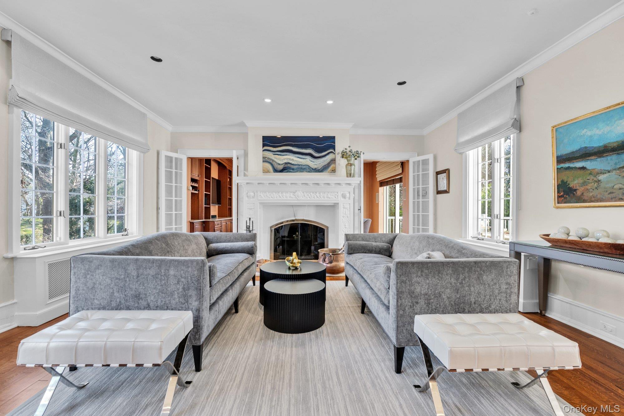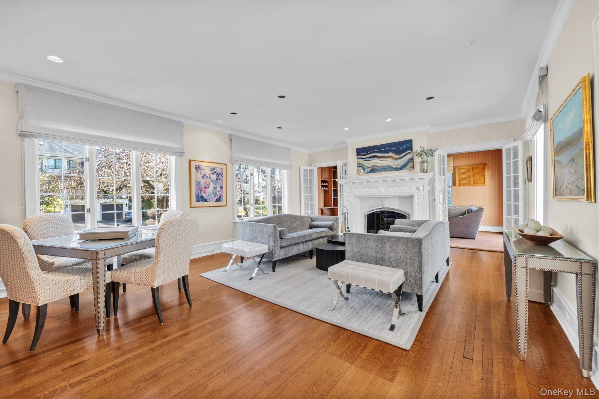 This Great Neck Estates side hall colonial blends timeless architectural character with thoughtfully integrated modern upgrades. Built in 1928, the home retains the craftsmanship and proportions of its era, including nine-foot ceilings throughout, original hardwood flooring, and generously sized rooms that create an airy, elegant living space. The exterior reflects enduring quality with a slate roof and classic stucco facade offering both visual appeal and long-term durability. The renovated kitchen is a standout, featuring custom walnut cabinetry, high-end appliances, breakfast bar and tumbled limestone flooring. A sun-filled living room features a wood-burning fireplace and flows naturally into an inviting den with custom built-ins and a wet bar. From here, sliding glass doors open to an outdoor deck, creating an easy connection between indoor and outdoor living. The formal dining room is ideally situated, accessible from the kitchen as well as through French doors from the living room, making it well suited for both everyday living and entertaining. The upstairs features a primary bedroom with its own cozy fireplace, original built-ins and a massive walk-in closet. Relax in the spa-like primary bath with jacuzzi and steam shower and recently renovated double vanity and cabinetry. A tandem bedroom with its own full bathroom can easily be separated into 2 bedrooms and a 4th ensuite bedroom sits across the hall. There is an additional multi-functional "bonus" room currently used as a gym which be designated as a playroom, study, home office or 5th bedroom. A finished full basement features laundry, cedar closet and bathroom. Mature plantings surround the property offering complete privacy from the street. The backyard envelopes the home on 3 sides with a deck off the den, bluestone patio off the kitchen and fenced-in vegetable garden entered through a lattice trellis. Home includes a full house generator and EV charging station installed in the garage. Home is situated in a prime location with easy access to shopping, town and LIRR. Exclusive Great Neck Estates offers residents access to a private waterfront park with pool, tennis, basketball and summer camp for residents. Zoned for renowned Great Neck South schools, North optional up to 5th grade. Overall, this property offers the rare opportunity to enjoy the grace and permanence of a traditional home enhanced by tasteful modern finishes and updates, ideal for buyers seeking character without compromising on comfort or style.