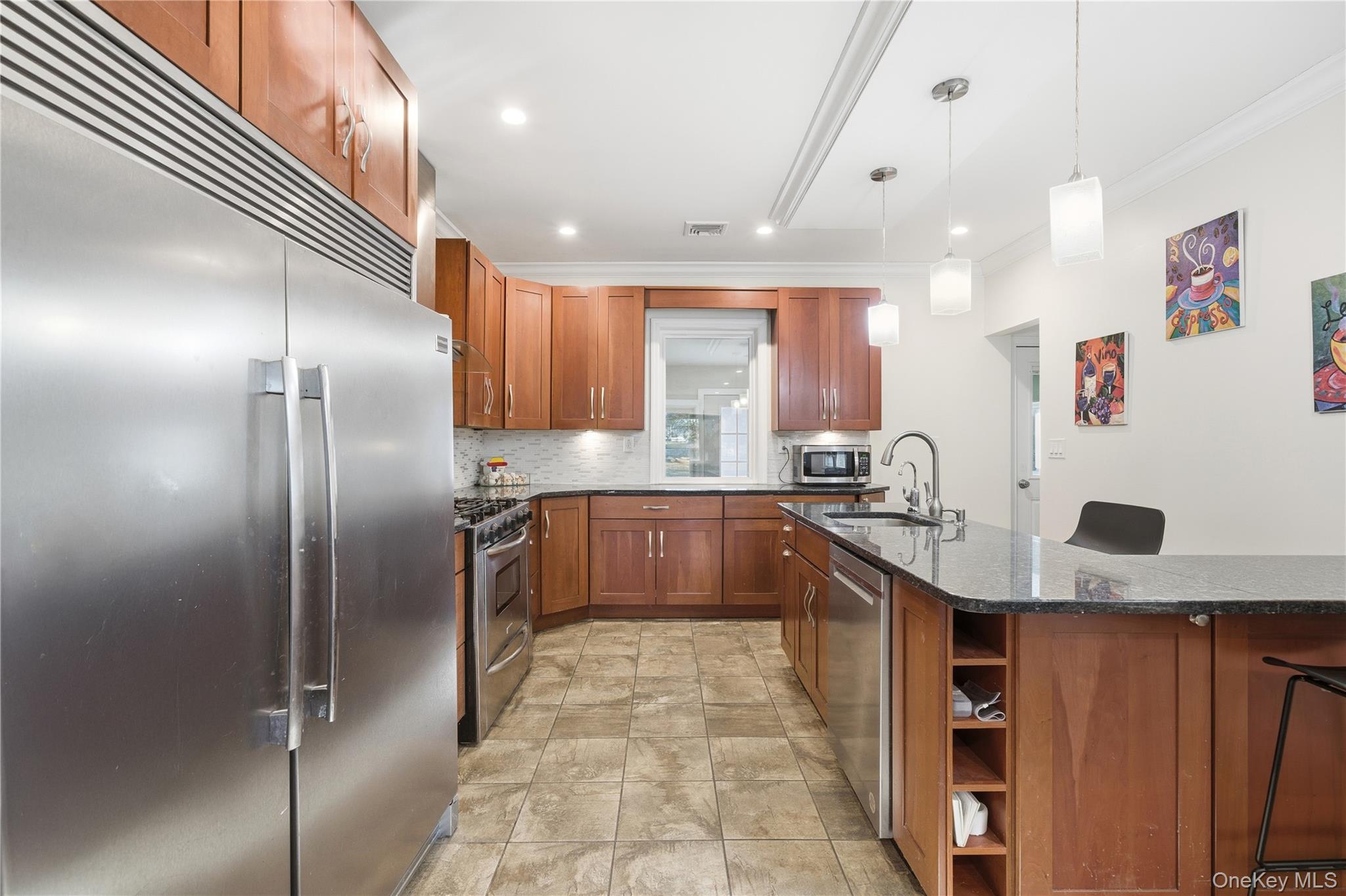 Beautifully updated ranch offering true North Shore coastal living in Wading River, with immediate proximity to acres of private beach access. Positioned just one block from the shoreline, this home delivers a rare lifestyle opportunity ideal for both year-round living and seasonal enjoyment. The interior features a bright, open layout anchored by a well-designed kitchen with KraftMaid cabinetry, granite countertops, stainless steel appliances, and a breakfast bar for everyday living and entertaining. Three comfortable bedrooms and a fully renovated full bathroom complete the main level. Recent improvements include newer windows, recessed lighting, custom moldings, updated insulation and Sheetrock, modern flooring, a newer roof and central air system, approximately 3 years old, upgraded 200-amp electrical service with sub-panel, and low-maintenance gutter covers. A full basement provides excellent storage or future potential, while the oversized two-car garage features new garage doors. Set on a shy half-acre near Wildwood State Park, beaches, shopping, dining, farm stands, and North Fork wineries. Enjoy easy access to fishing, kayaking, paddleboarding, and breathtaking sunsets from one of Long Island’s most sought-after North Shore communities.