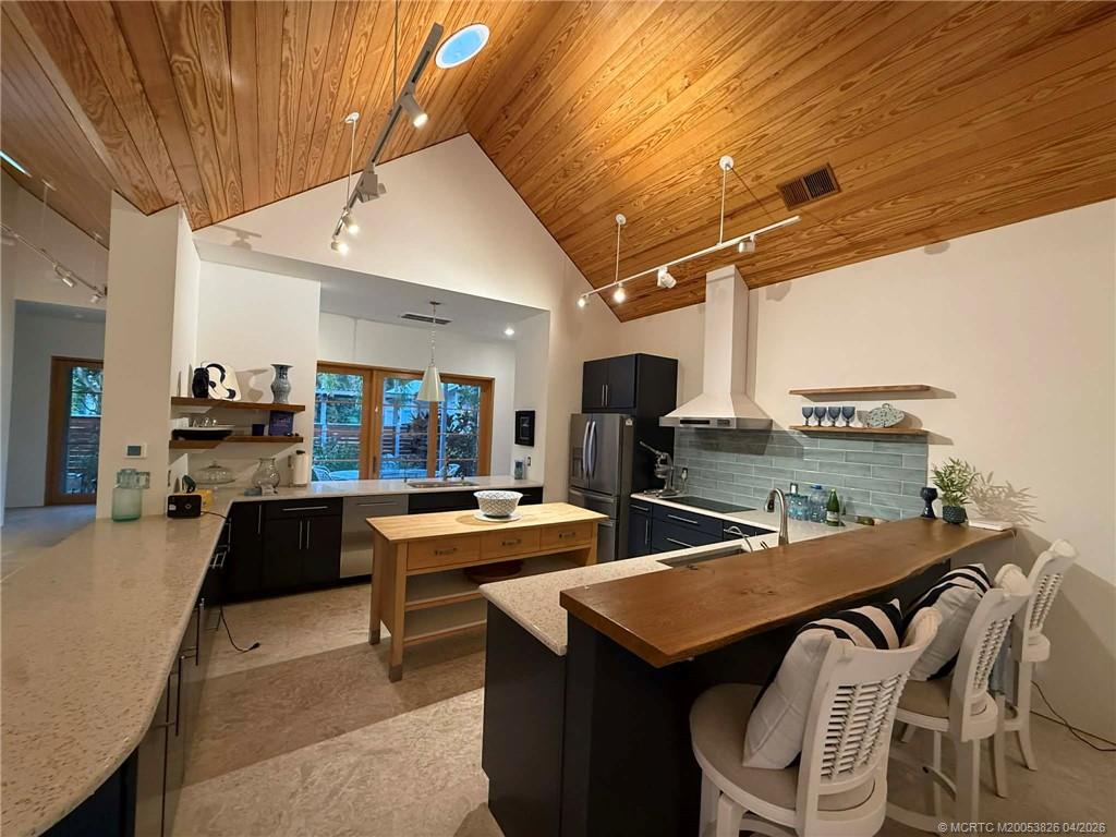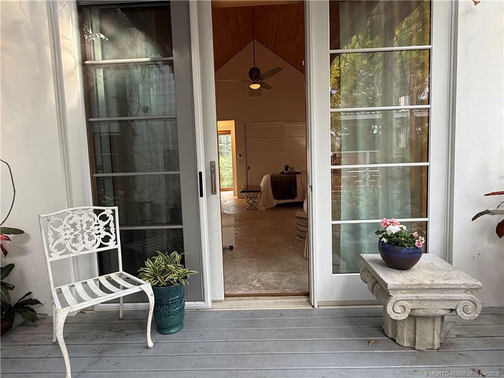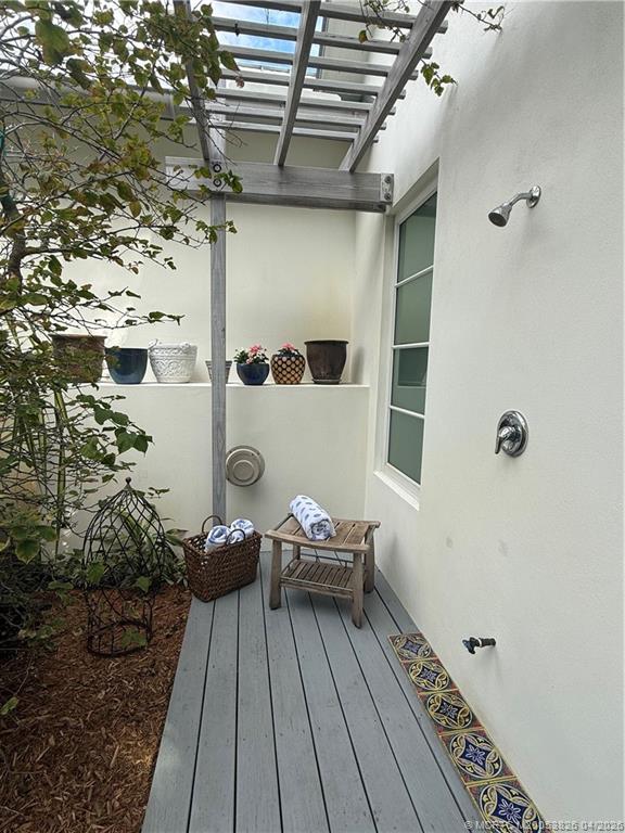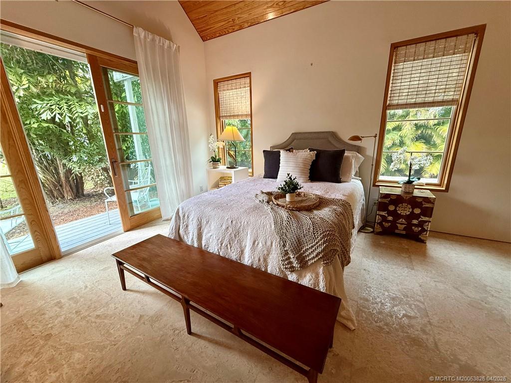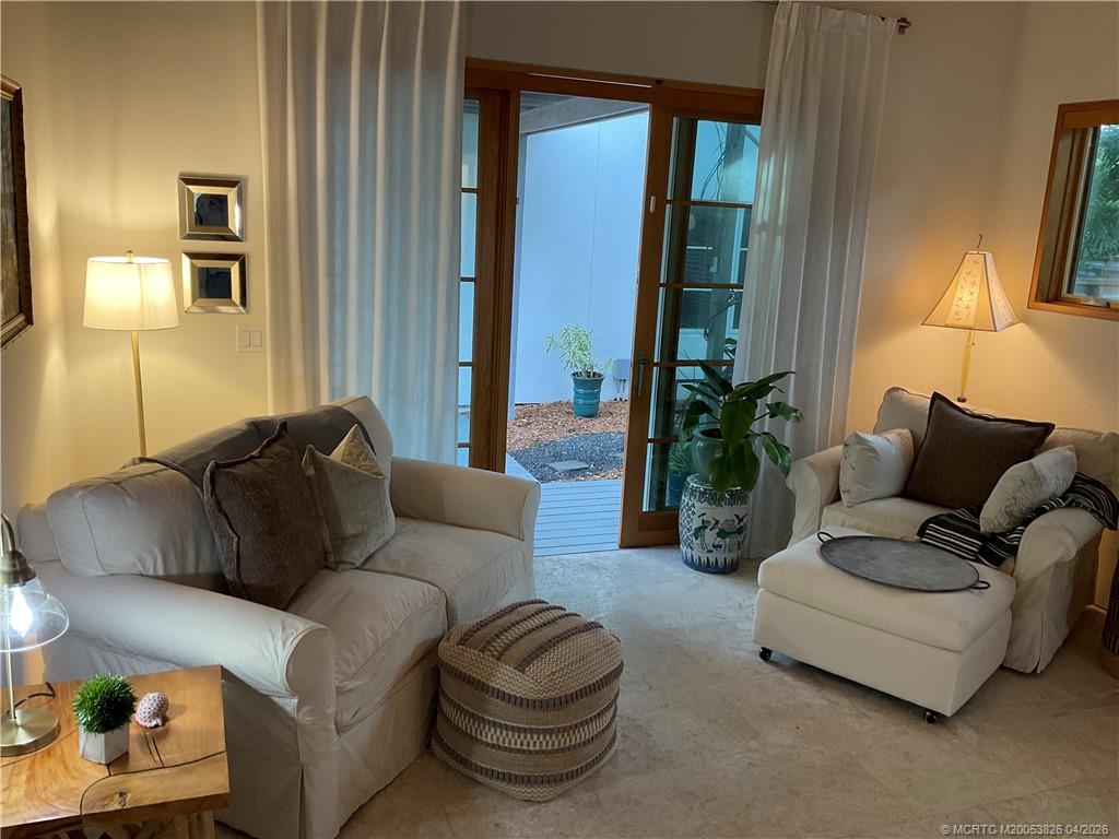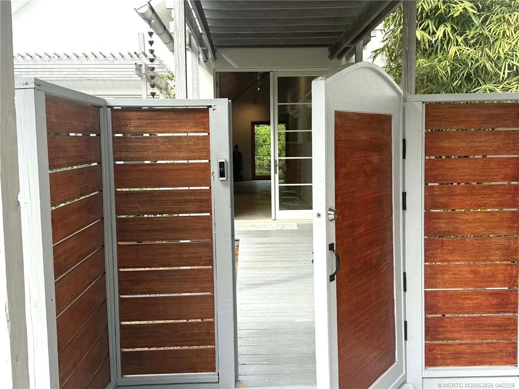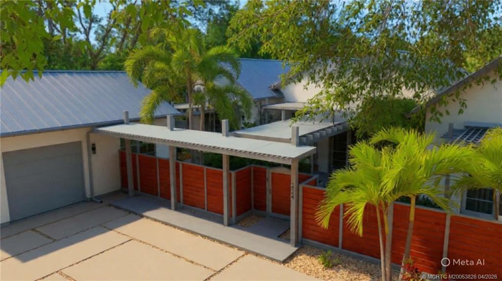 Architecturally distinctive custom modern coastal courtyard residence offers a refined retreat that blends warm natural materials and exceptional indoor-outdoor living. Energy efficient thrmal mass. Vaulted wood-plank ceilings, sliding custom wood framed glass doors make for walls of glass. Curated lighting create gallery-like feel. Seamless coquinq floors enhance the flow of open concept living. Chefs kitchen features polished cement & recycled glass counters, custom cabinetry with organized storage features, Schott Ceran cooktop, Kutch range hood, Zelige tiled backsplash, 2 stainless sinks, GE appliances, & island. 2 primary en-suites, with dual vanities and step into spa like showers and 3rd bedrm has large walkin closet & designated bath. Marvin hurricane windows and matching sliding French doors to private pergola covered pine decks, Whole house generator, RV parking, 4th room off garage for office/studio/suite, an outdoor shower or dog grooming space, outdoor spa jacuzzi as well.
