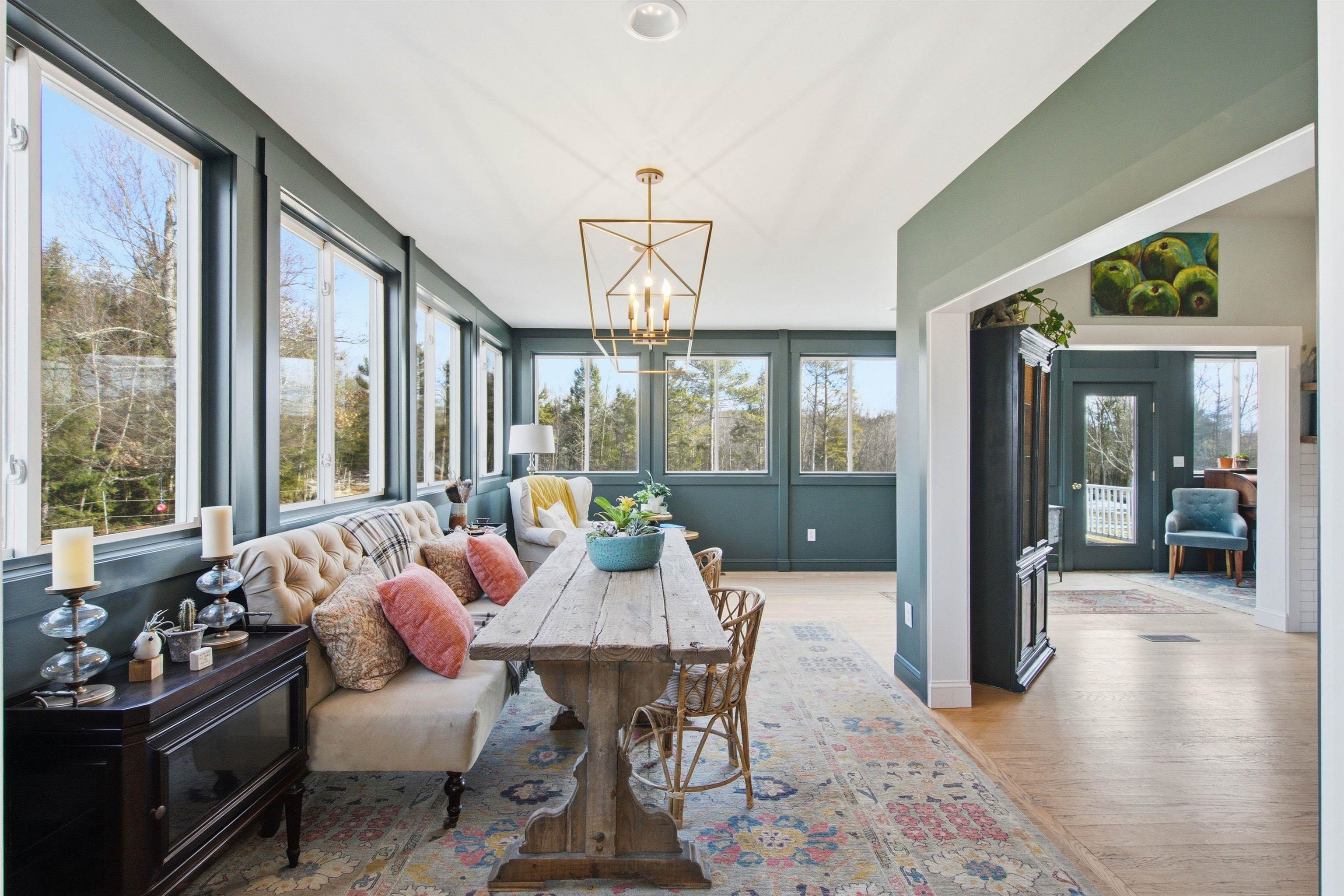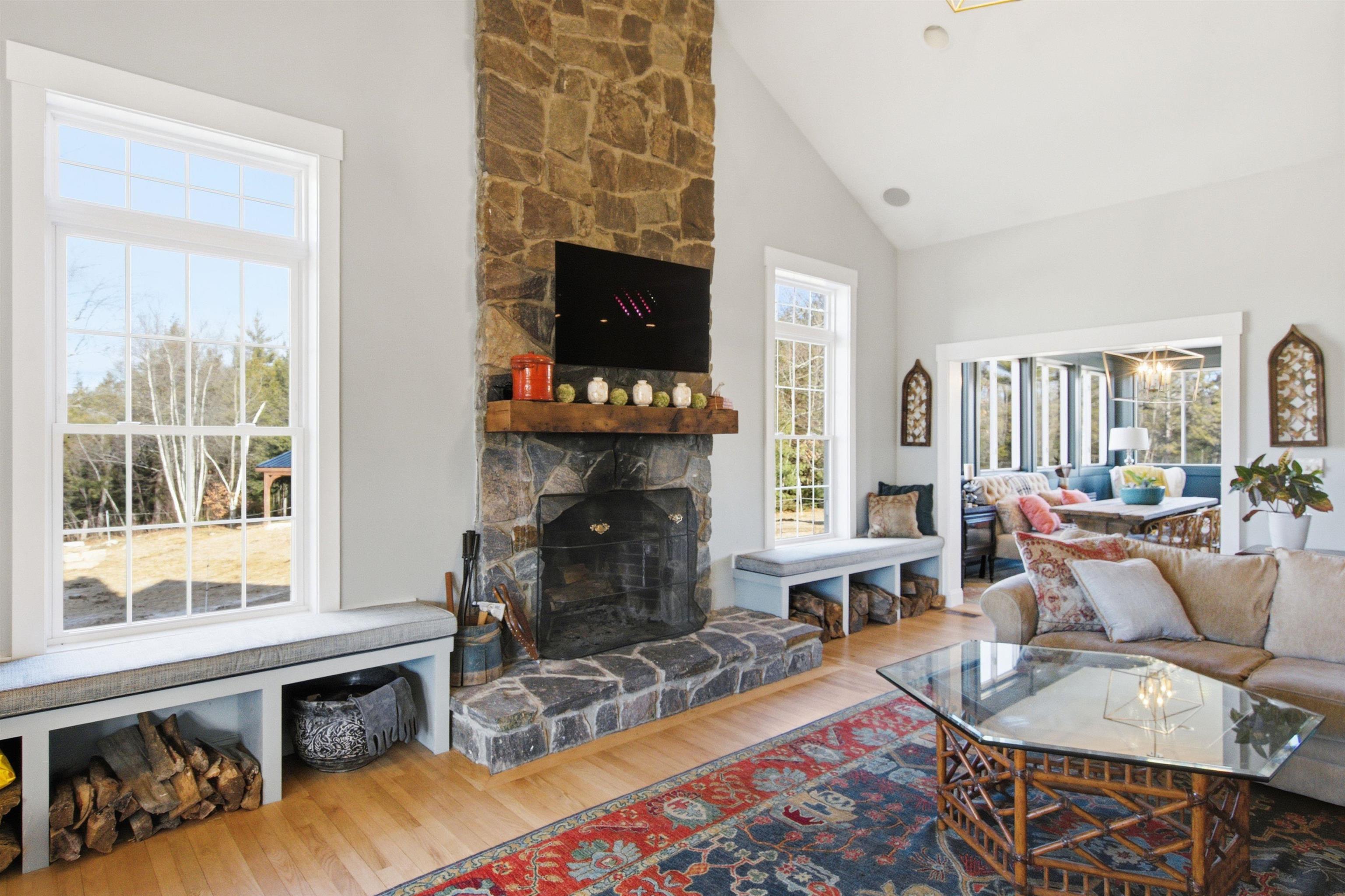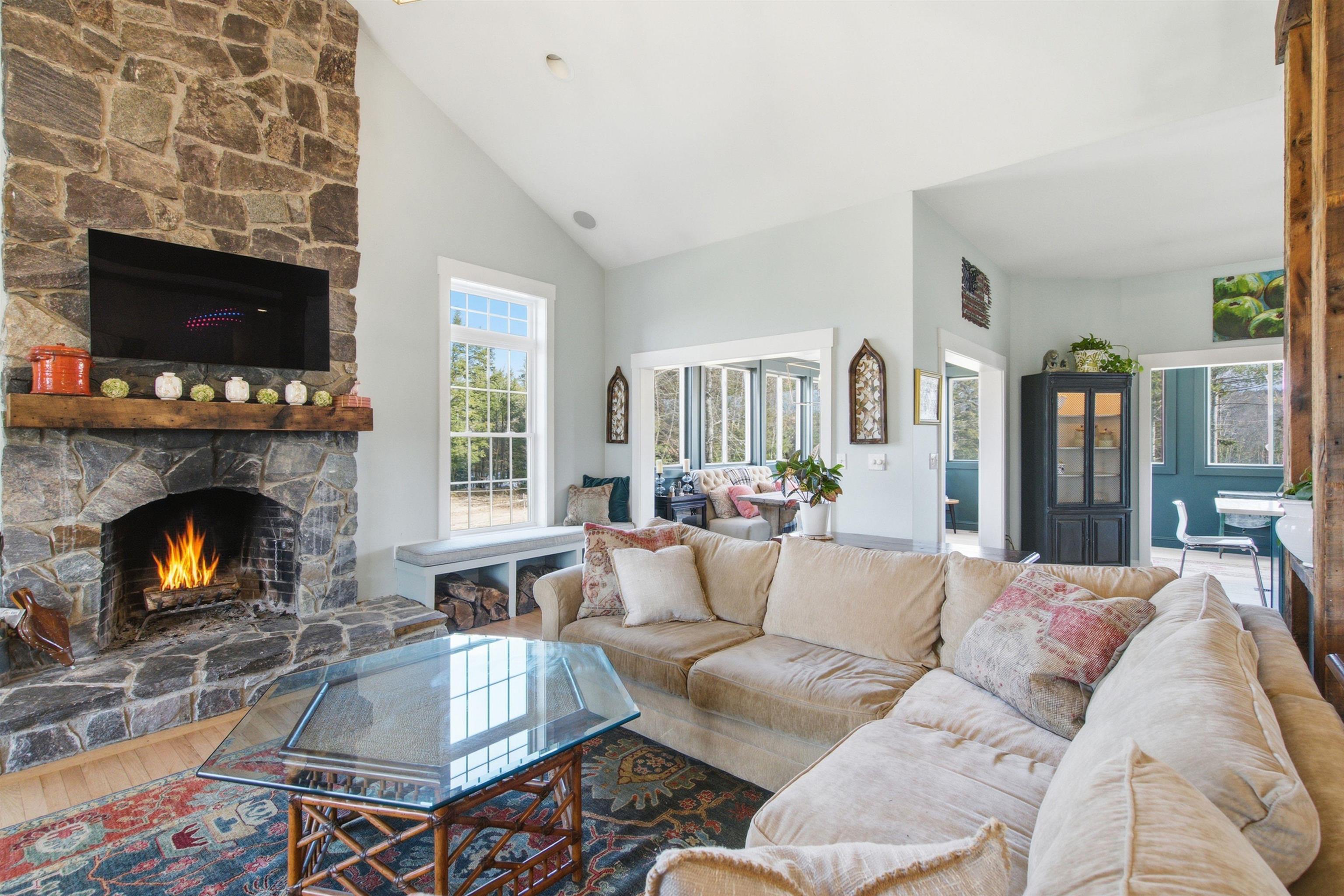 Tucked away on 27. 1 acres of unspoiled New Hampshire countryside in the charming town of Lyndeborough, this custom Craftsman-style ranch offers a rare blend of refined comfort, natural beauty, and peaceful seclusion. High vaulted ceilings adorned with large, reclaimed beams create a sense of warmth and timeless character, setting the tone for a home that feels both welcoming and inspiring. Thoughtfully renovated, the home features a gorgeous kitchen that flows effortlessly into the dining area, where windows invite in sweeping views of the rolling land, mountains, and changing seasons. The living space is anchored by a striking fieldstone fireplace, perfect for cozy evenings as the fire crackles and the outdoors fades into twilight. Central air conditioning and a brand-new roof ensure modern ease and lasting peace of mind. Designed for those who cherish the land, the property is a true equestrian haven with a two-stall run-in barn and an enclosed tack room, established trails throughout the acreage and direct access to snowmobile trails. Enjoy the quiet rides, year-round recreation, and uninterrupted mountain views in a setting that feels worlds away. A three-car garage, true single-level living, and meticulous updates make this home as functional as it is beautiful. Whether you're drawn to horses, outdoor adventure, or simple luxury of privacy, this exceptional property offers a rare opportunity to live in harmony with the landscape. A turnkey Craftsman ranch retreat-where craftmanship, land, and lifestyle come together in perfect balance. Open house January 18 11am-2pm