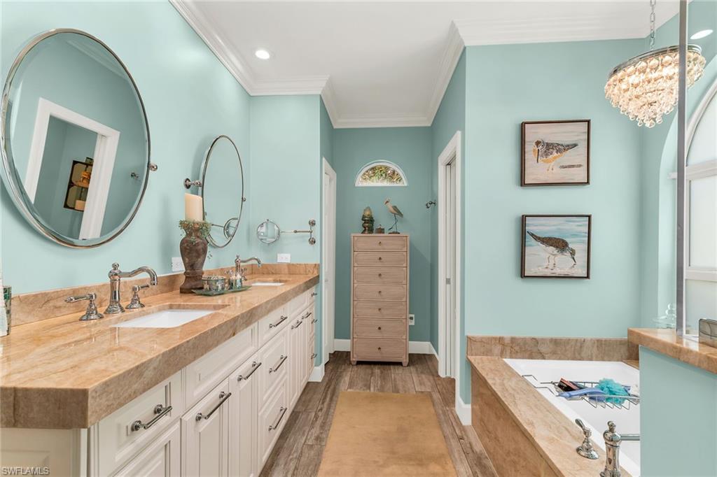 This beautifully upgraded 3 bedroom, 2 bath plus den single family home is ideally positioned on a large corner lot with highly desirable southeast exposure and long, tranquil water views. A circular driveway and lush, professionally designed landscaping, complete with nighttime uplighting, create an impressive first impression.