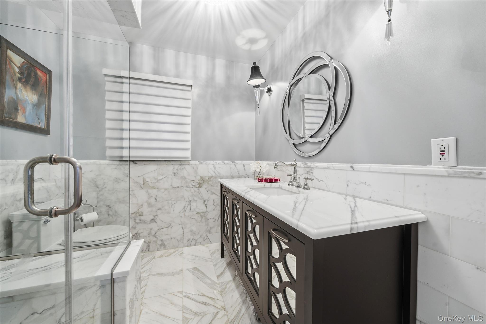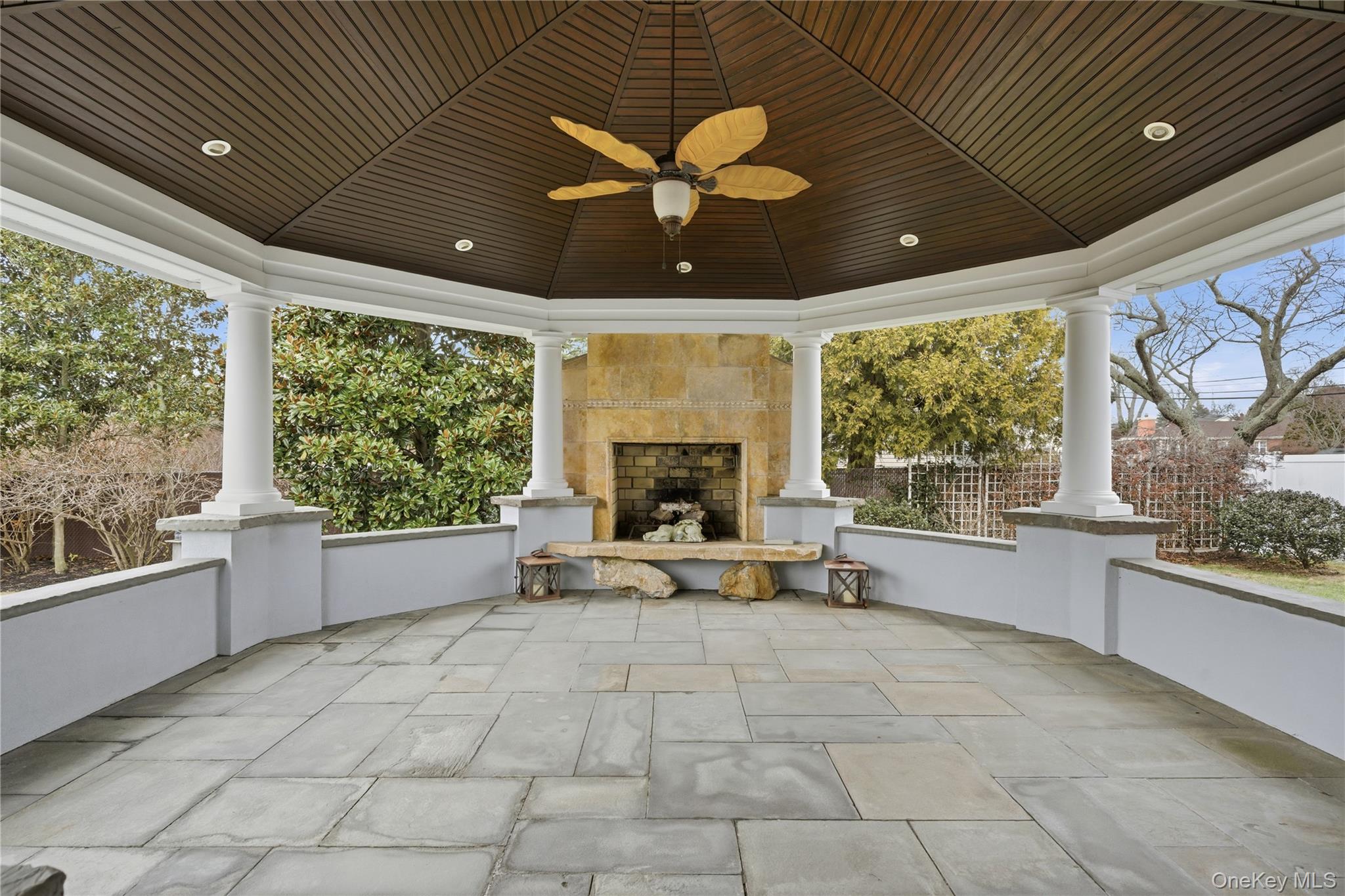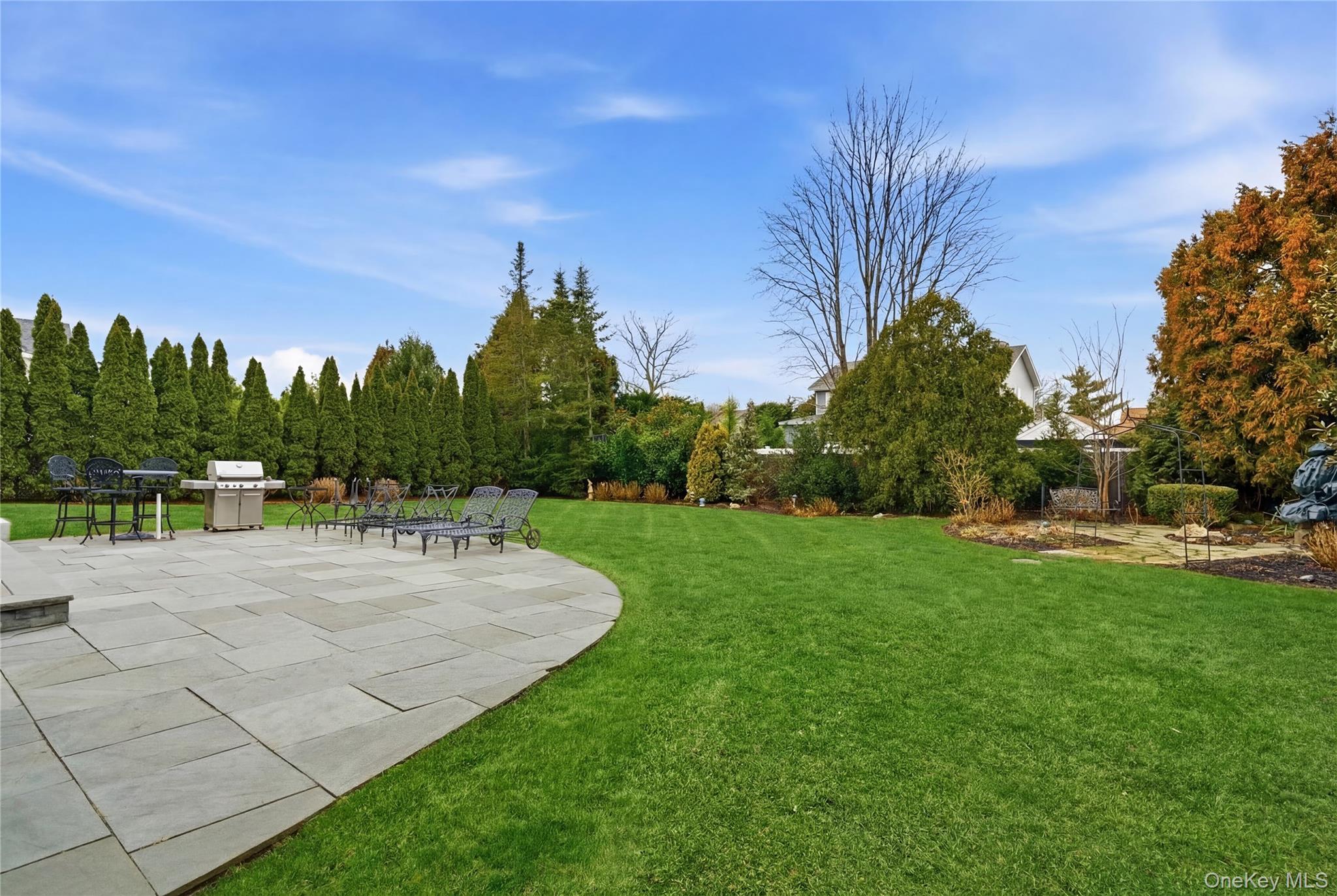 Welcome to this exceptional contemporary residence nestled in the coveted enclave of Biltmore Shores, one of Long Island's distinguished waterfront communities. Upon entry, soaring ceilings and a striking staircase set the tone, creating a grand impression. The family room offers a warm yet sophisticated space, featuring a marble gas burning fireplace with glass sliders that lead directly to the backyard, enhancing the home’s effortless entertaining flow. A stunning marble bathroom on the main level adds both elegance and convenience. The home’s culinary centerpiece is a show stopping gourmet eat-in kitchen, meticulously designed for beauty and function. A massive, seamless custom marble island anchors the space, complemented by top-of-the-line Wolf appliances, including a cooktop and double ovens, pot filler, Sub-Zero refrigerator, Bosch dishwasher, and a dedicated wine refrigerator—a true chef’s dream. Surrounded by panoramic windows, the dining area offers serene views of the beautifully manicured grounds. New glass sliders open to the impeccably landscaped backyard, seamlessly merging indoor and outdoor living. Outdoors, a custom covered portico with a wood-burning fireplace provides an inviting, resort-like setting for year-round gatherings and al fresco evenings. Additional first floor features include a home office or 4th bedroom and main level laundry room. The upper level hosts three well-appointed bedrooms, highlighted by a primary suite featuring a newly renovated spa-inspired ensuite bath with a soaking tub, and a spacious walk-in closet. Additional highlights include a generous finished basement, 2 car garage, in-ground sprinklers, and a video surveillance system. Residents enjoy exclusive access to the highly desirable Biltmore Beach Club or the Green Harbour Shore Club offering a premier coastal lifestyle just moments from the water. Come make this remarkable home your dream home today.