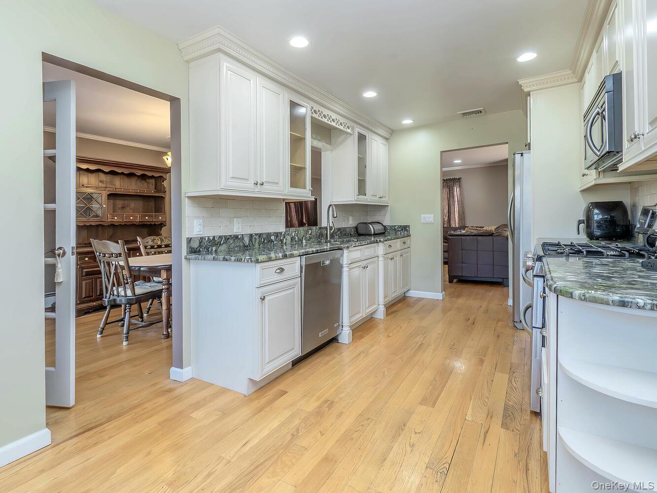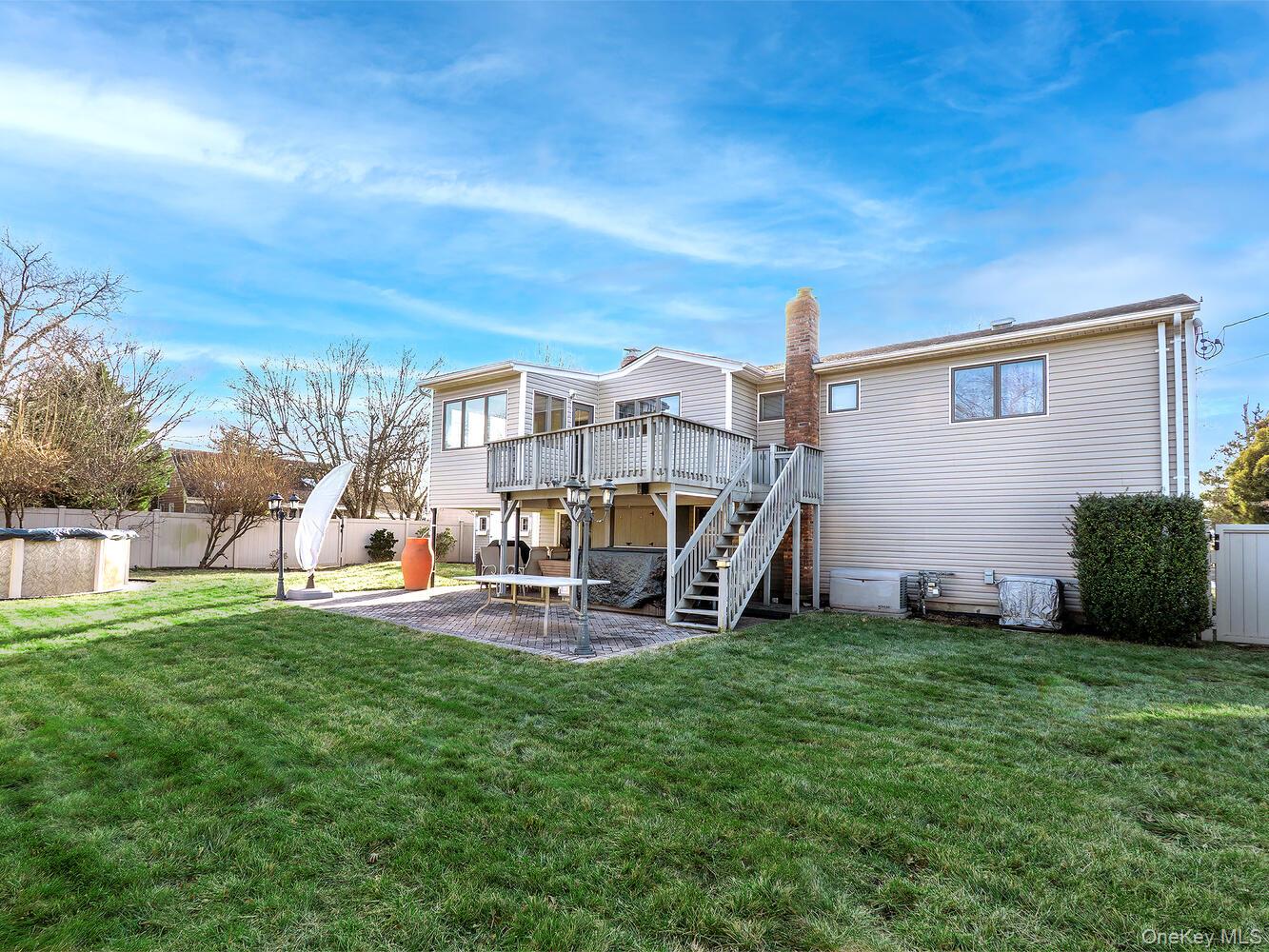 This well-maintained 3-bedroom, 2-bath high ranch offers comfort, space, and excellent indoor-outdoor living. Large living room & formal dining room. The bright kitchen features granite countertops and stainless steel appliances. The primary bedroom includes a private full bath with shower. The lower level features a cozy fireplace with a wood-burning stove and sliding glass doors that lead directly to the backyard, filling the space with natural light and creating easy access for indoor-outdoor enjoyment. An oversized, attached 2-car garage offers ample room for vehicles and storage. Outside, enjoy a fully fenced yard designed for relaxation and recreation, complete with a patio, above-ground pool, pond, and hot tub—your own private backyard oasis.