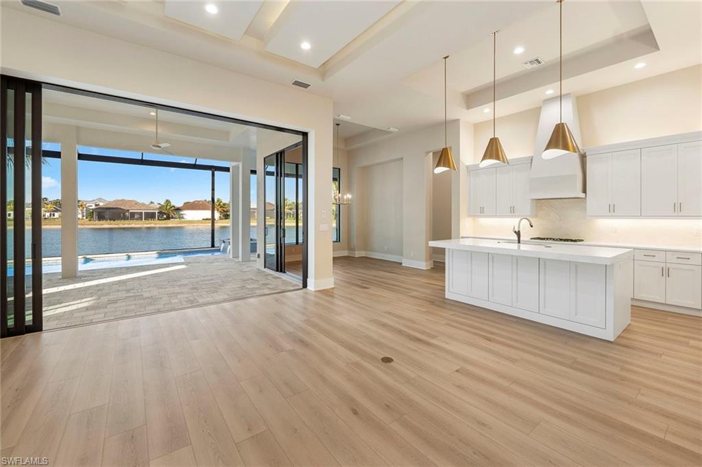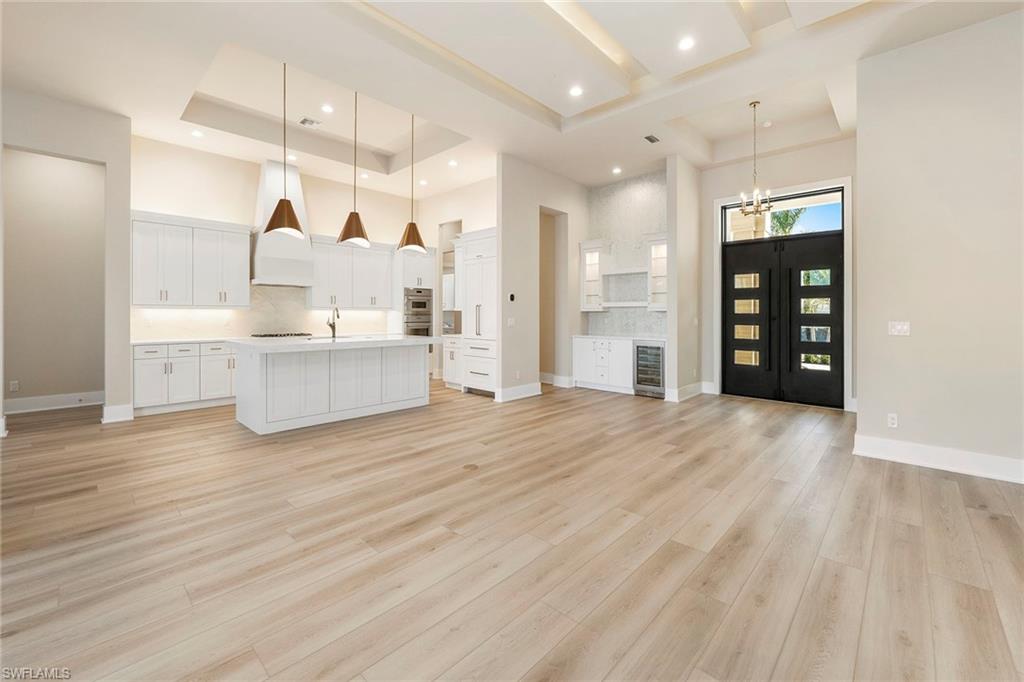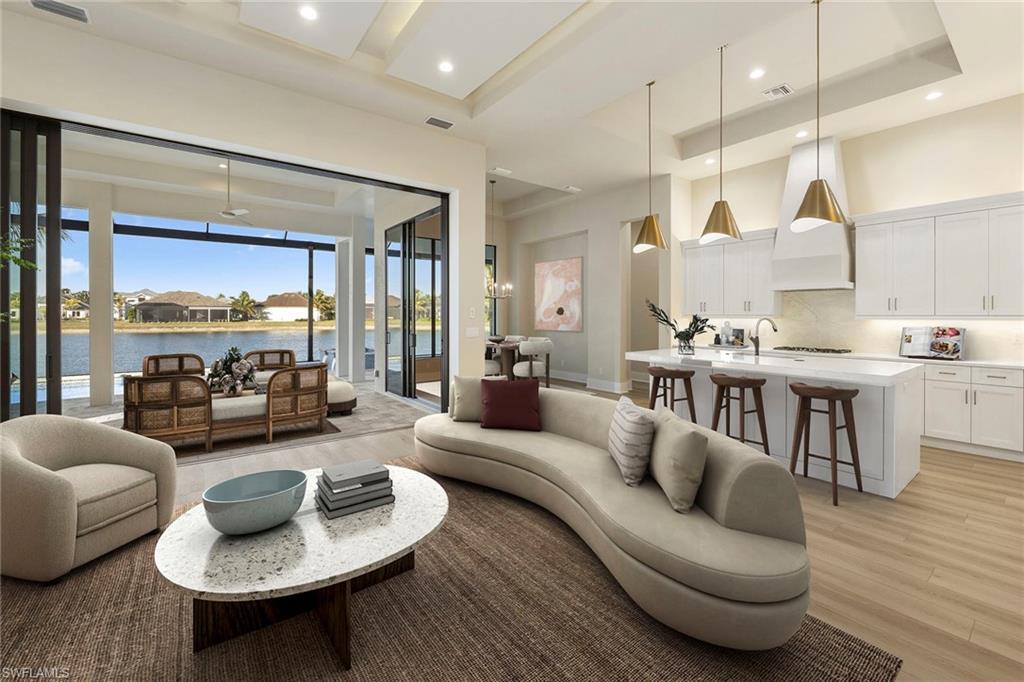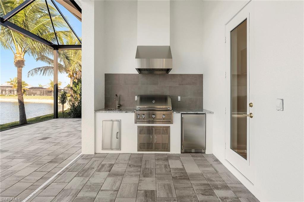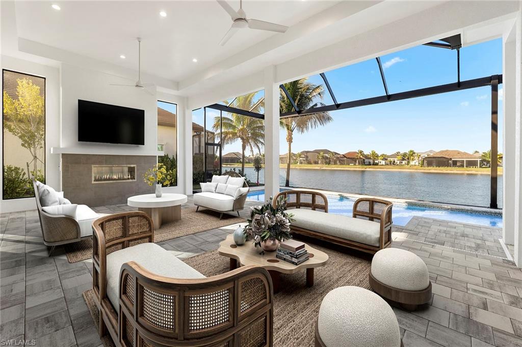 An elevated expression of contemporary Florida living, this new 2026 estate home by Lundstrom Development is gracefully positioned on a lakefront homesite (with no flood insurance required), in the custom-estate enclave of Parrot Cay at Naples Reserve. Architectural precision, refined finishes, and an emphasis on livability converge to create a home that feels sophisticated and quietly welcoming. Introduced by custom impact-rated iron doors with transom, the interior unfolds with a sense of volume and light. Modern ceiling details and a thoughtfully designed open floor plan frame tranquil lake views, while a discreet dry bar adds a subtle layer of elegance for entertaining. Expansive 10-foot impact sliders draw in the outdoors, creating a seamless connection to the lanai and water beyond. The kitchen is appointed with quartz countertops, a full quartz backsplash, custom hood vent and custom cabinetry with full-extension soft-close drawers. Under- and above-cabinet lighting, designer pendants, and a walk-in pantry enhance both form and utility. A fully paneled suite of Thermador appliances, including gas cooktop, French-door refrigeration, combination wall oven, speed oven and dishwasher, supports effortless everyday living and gracious entertaining. The primary suite offers a private retreat, defined by a double tray ceiling with recessed lighting and dual walk-in closets. The spa-inspired bath features dual vanities with quartz countertops, a soaking tub, and a generous walk-in shower with multiple showerheads, designed for relaxation and renewal. Outdoor living is equally considered. The lakefront lanai showcases a large pool with sun shelf and spa, complemented by a clear-view screen enclosure that preserves uninterrupted water views. A gas outdoor fireplace, and fully equipped outdoor kitchen create an inviting setting for quiet evenings and refined gatherings. Featuring a 500-gallon buried propane tank which services the gas cooktop, pool and spa, outdoor grill and fireplace. Additional highlights include a finished three-car garage with glass-insulated doors, epoxy flooring, attic access and a one-year builder warranty. More photos to follow when completed next week! Residents of Naples Reserve enjoy a resort-inspired lifestyle centered around the Island Club, with amenities including a lakeside beach, resort pool, tiki bar, café, fitness center, tennis and pickleball courts, boating and kayaking, scenic recreational and biking trails, dog parks, and a vibrant calendar of social events, conveniently near downtown Naples, Marco Island and Southwest Florida’s celebrated beaches.