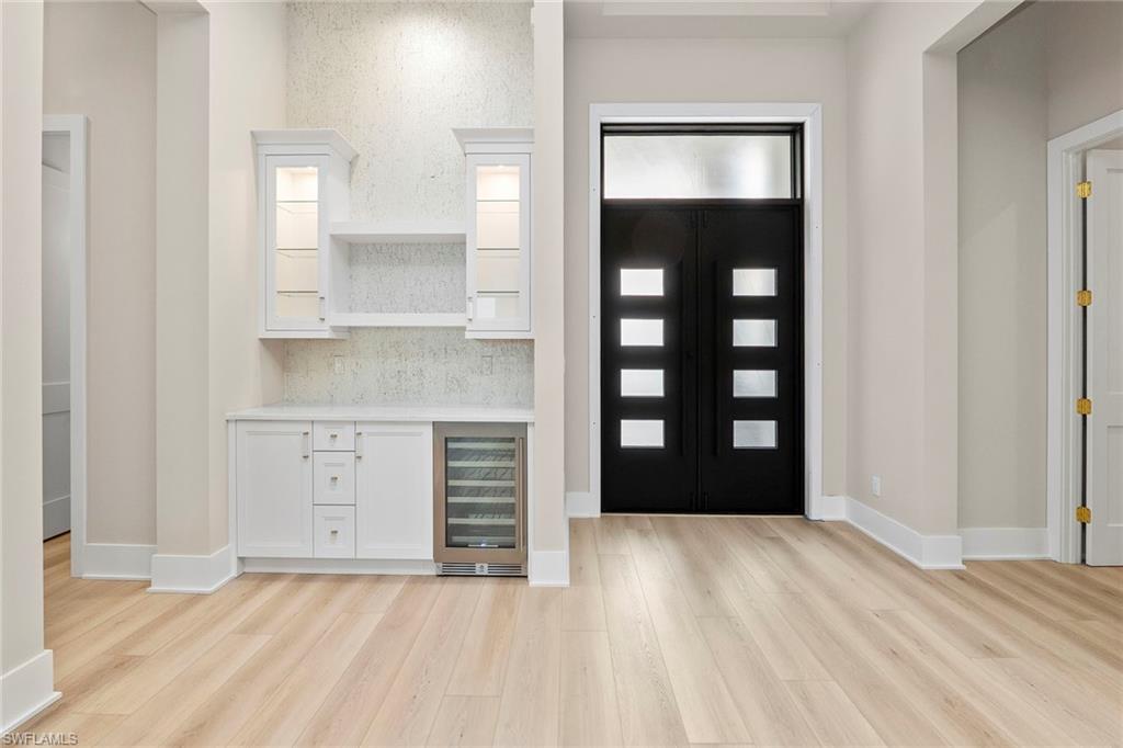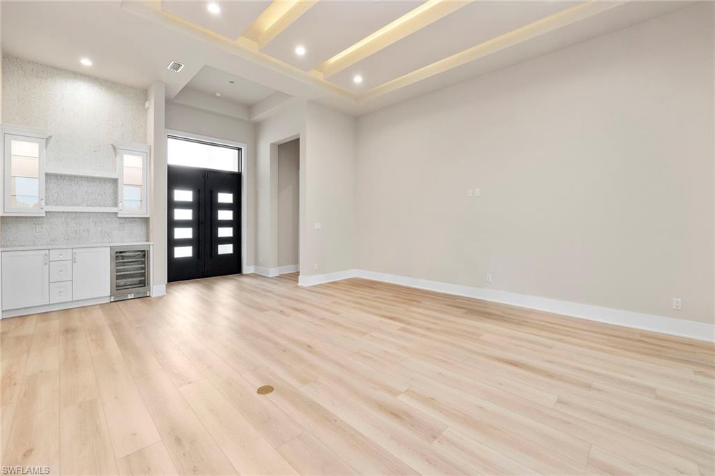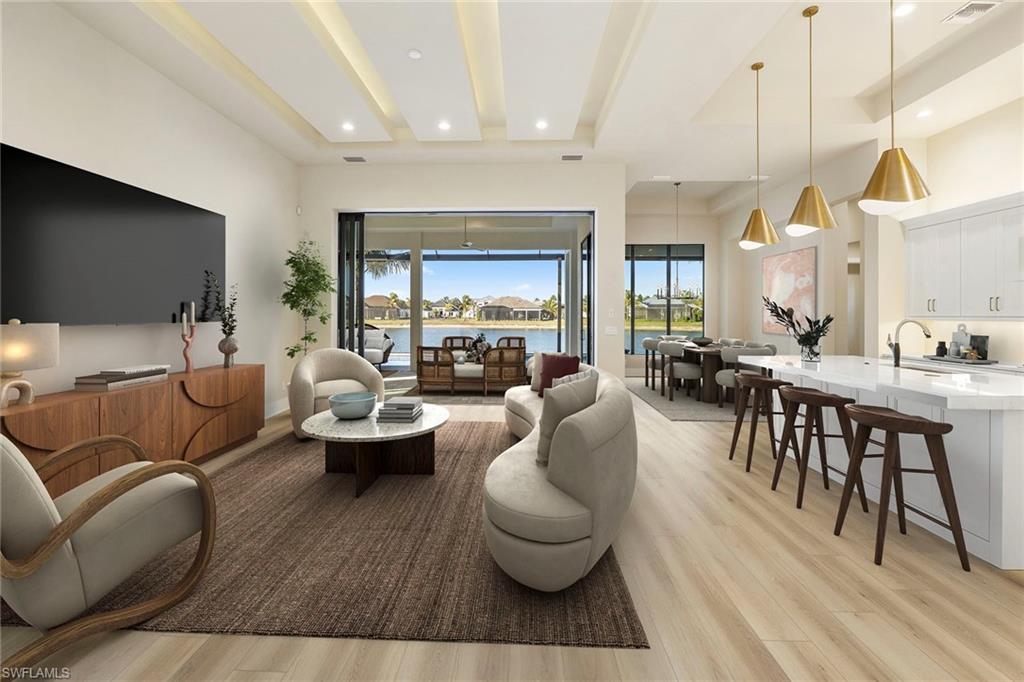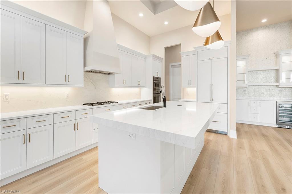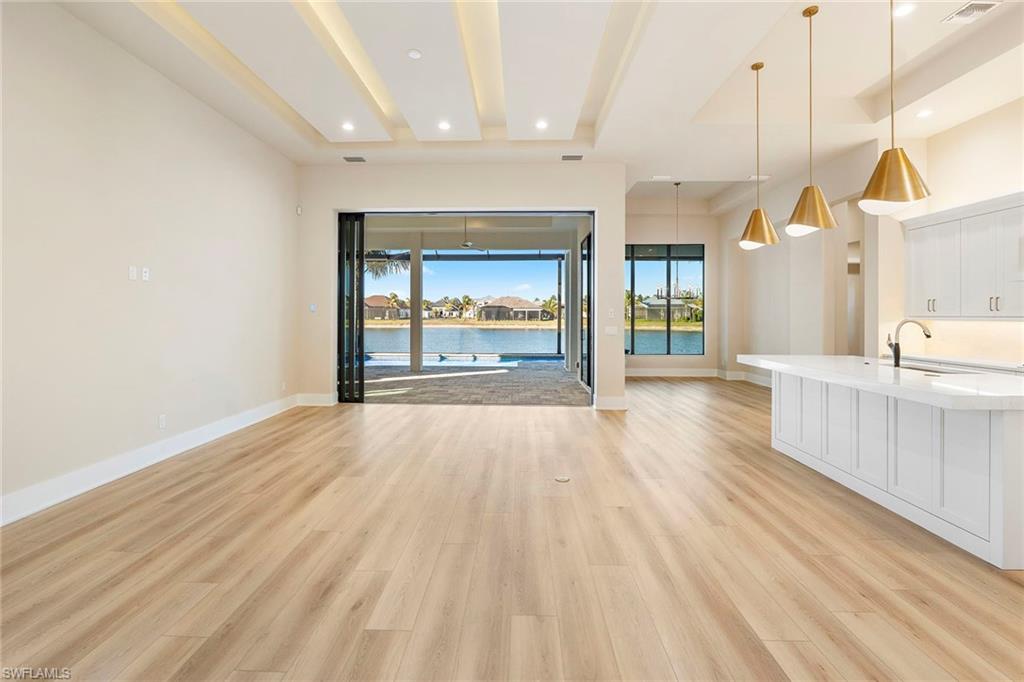 An elevated expression of contemporary Florida living, this new 2026 estate home by Lundstrom Development is gracefully positioned on a lakefront homesite (with no flood insurance required), in the custom-estate enclave of Parrot Cay at Naples Reserve. Architectural precision, refined finishes, and an emphasis on livability converge to create a home that feels sophisticated and quietly welcoming. Introduced by custom impact-rated iron doors with transom, the interior unfolds with a sense of volume and light. Modern ceiling details and a thoughtfully designed open floor plan frame tranquil lake views, while a discreet dry bar adds a subtle layer of elegance for entertaining. Expansive 10-foot impact sliders draw in the outdoors, creating a seamless connection to the lanai and water beyond. The kitchen is appointed with quartz countertops, a full quartz backsplash, custom hood vent and custom cabinetry with full-extension soft-close drawers. Under- and above-cabinet lighting, designer pendants, and a walk-in pantry enhance both form and utility. A fully paneled suite of Thermador appliances, including gas cooktop, French-door refrigeration, combination wall oven, speed oven and dishwasher, supports effortless everyday living and gracious entertaining. The primary suite offers a private retreat, defined by a double tray ceiling with recessed lighting and dual walk-in closets. The spa-inspired bath features dual vanities with quartz countertops, a soaking tub, and a generous walk-in shower with multiple showerheads, designed for relaxation and renewal. Outdoor living is equally considered. The lakefront lanai showcases a large pool with sun shelf and spa, complemented by a clear-view screen enclosure that preserves uninterrupted water views. A gas outdoor fireplace, and fully equipped outdoor kitchen create an inviting setting for quiet evenings and refined gatherings. Featuring a 500-gallon buried propane tank which services the gas cooktop, pool and spa, outdoor grill and fireplace. Additional highlights include a finished three-car garage with glass-insulated doors, epoxy flooring, attic access and a one-year builder warranty. More photos to follow when completed next week! Residents of Naples Reserve enjoy a resort-inspired lifestyle centered around the Island Club, with amenities including a lakeside beach, resort pool, tiki bar, café, fitness center, tennis and pickleball courts, boating and kayaking, scenic recreational and biking trails, dog parks, and a vibrant calendar of social events, conveniently near downtown Naples, Marco Island and Southwest Florida’s celebrated beaches.