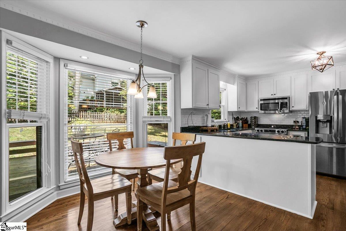 **Open House Sat 1/24 12-2pm**Beautifully Updated, Award-winning Riverside Schools, and Excellent Eastside Location! Nestled in Pelham Falls, one of the Eastside area’s most desirable and well-established communities, this charming 4-bedroom, 2. 5-bath home is completely move-in-ready with all new roof, gutters, windows, fence, kitchen cabinets, and downstairs HVAC; among many other recent updates. The perfect balance between modern updates and timeless character, this Home is far from cookie-cutter with mature trees and landscaping along with quality construction. The neighborhood offers a 1. 2 mile paved walking trail with sandy beach areas and rocky outcrops along the Enoree River and part of Rocky Creek, it is like having a private state park in the neighborhood! Nothing like it in the area! Step inside to the glowing hardwood floors and bountiful natural light. The two-story foyer and wood staircase will greet you at the door. The main level is perfectly laid out for both daily life and entertaining with the kitchen open to the breakfast area and living room, French doors leading to the sunroom, and the dining room and a flex-room/playroom/or office separate. Upstairs includes a large master suite with tray ceiling, updated master bath with soaking tub and tile shower, and walk-in closet. Two ample-sized secondary bedrooms are opposite the master bedroom and share a full bath. The 4th bedroom is very large and could be used as a playroom. The walk-in laundry with wash basin and multiple storage closets round off the upstairs. Outside, the side-entry garage with new retaining wall, fenced in yard, and deck are great outdoor spaces for dogs, kids, and cooking out. The location is ideal. Midway between 5-Forks and the Pelham/I-85 intersection, all that Greenville has to offer is at your fingertips. Pelham Falls is a close-knit community offering two pools, SAIL swim team, clubhouse, athletic field, playground, and tennis/pickleball courts in addition to the River Path. Don't miss your opportunity to have a well-loved HOME and be a part of such a wonderful COMMUNITY. Schedule your appointment today!