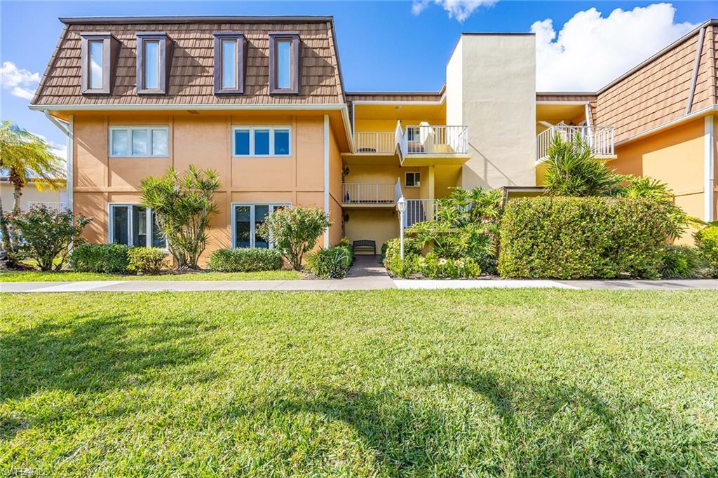 This two-bedroom, two-bath first-floor residence comes partially furnished and features seamless entry, timeless tile flooring, custom built-ins and a kitchen with ample storage and a thoughtfully integrated built-in desk. The open-concept living area flows into a glass-wrapped dining space, while all windows and sliding doors have been updated with hurricane-impact glass for enhanced safety and energy efficiency. Included is one assigned parking space and abundant guest parking. In Flood Zone X500, outside high-risk flood areas, and remained untouched by recent storms. Larger pets welcome with approval. Minutes from the Gulf, shopping, dining and top-rated schools. Ideal for seasonal, full-time or investment use, subject to association guidelines.