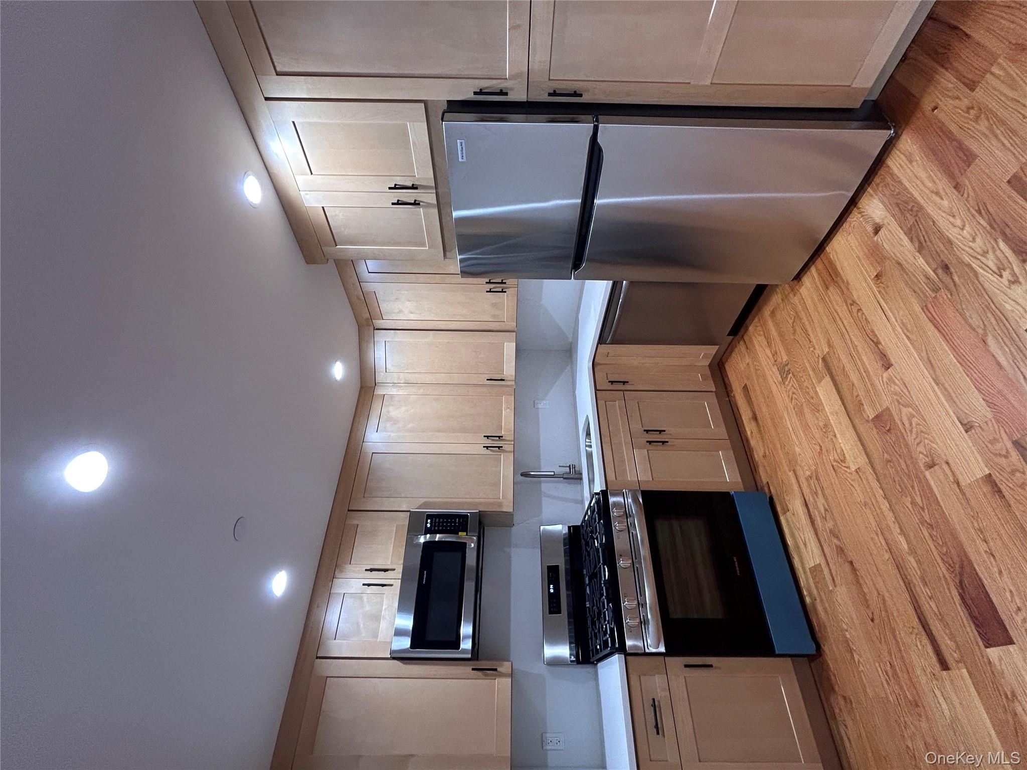 Brand new semi-detached 3 family house , meticulously crafted by an Italian builder. The house built size 21*52, lot size 30*98, It features three above-ground floors plus a finished basement. The first floor has 2 bedrooms and 2 full bathrooms, the second and third floors each have 3 bedrooms and 2 full bathrooms. The house boasts hardwood floors throughout, high-quality double-pane wide windows ensuring excellent natural light, one skylight, and a two parking space in fully concrete back yard. Located near schools and public transportation (Q 58& M train), this property is in a desirable neighborhood with high investment potential.