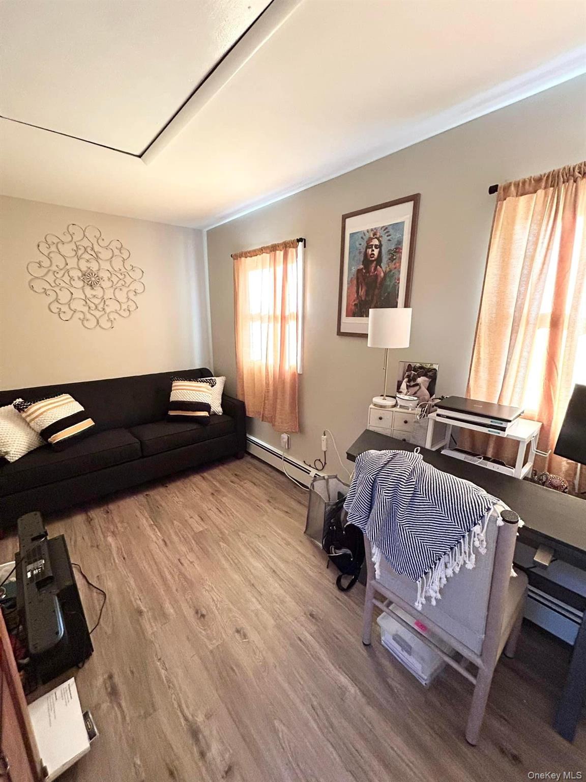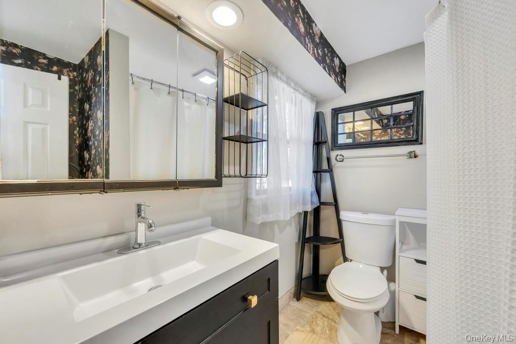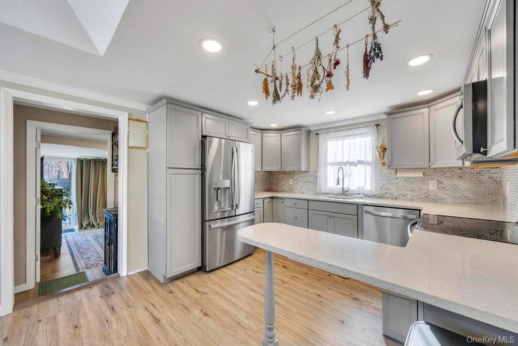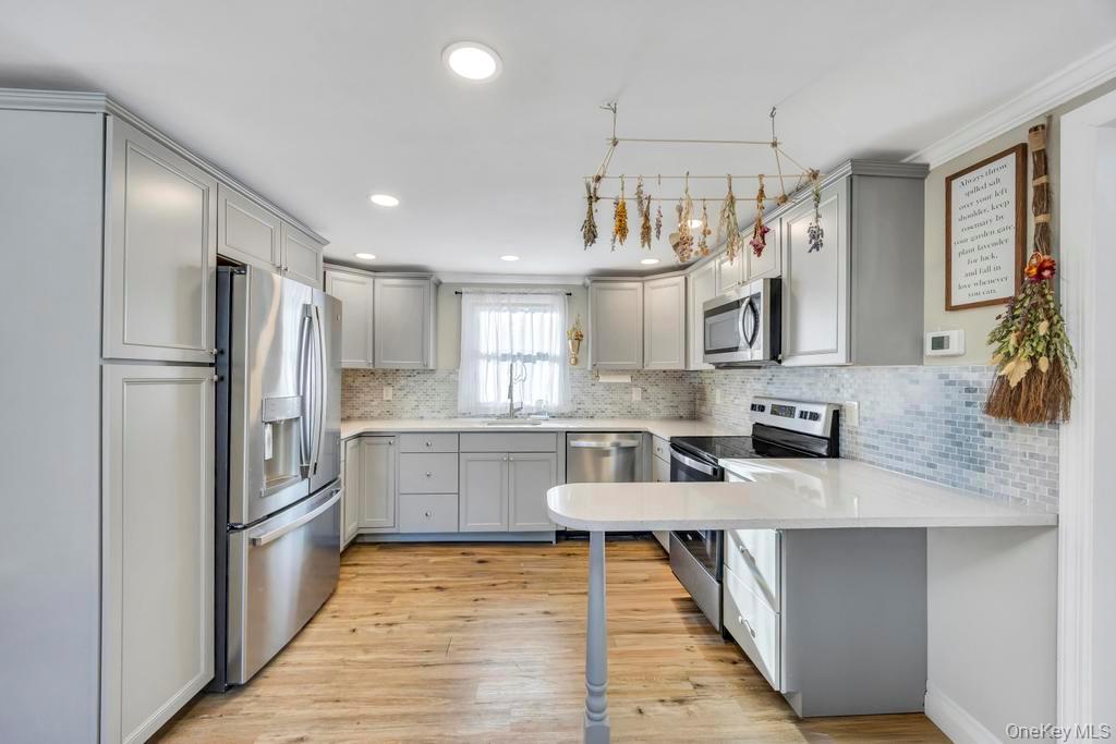 Welcome to 143 Wood Road in Centereach! This beautifully maintained and thoughtfully updated 2-bedroom, 2-bath ranch offers comfort, character, and versatile living space—perfectly complemented by a full basement and inviting outdoor areas. Step inside to a bright and cozy living room featuring vaulted ceilings, skylights and a modern mini-split system for efficient heating and cooling. The open layout flows seamlessly into the dining area and updated kitchen, which boasts granite countertops, stainless steel appliances, ample cabinetry, and recessed lighting—ideal for everyday living and entertaining. The spacious primary bedroom offers a peaceful retreat with stylish accent walls, generous closet space, a full bath en-suite and direct access to the backyard. The second bedroom is equally well-sized and filled with natural light. Both full bathrooms have been tastefully updated, featuring clean contemporary finishes. The full basement adds tremendous value and flexibility, offering plenty of room for storage, a home gym, recreation space, or future finishing possibilities. Outside, enjoy relaxing on the charming covered front porch or hosting gatherings in the fully fenced backyard, complete with a patio, lush lawn, and shed for additional storage. The property offers privacy and space while still being conveniently located near shopping, dining, parks, and major roadways. Move-in ready, full of charm, taxes under $4k and offering flexible living space—143 Wood Road is a wonderful place to call home!