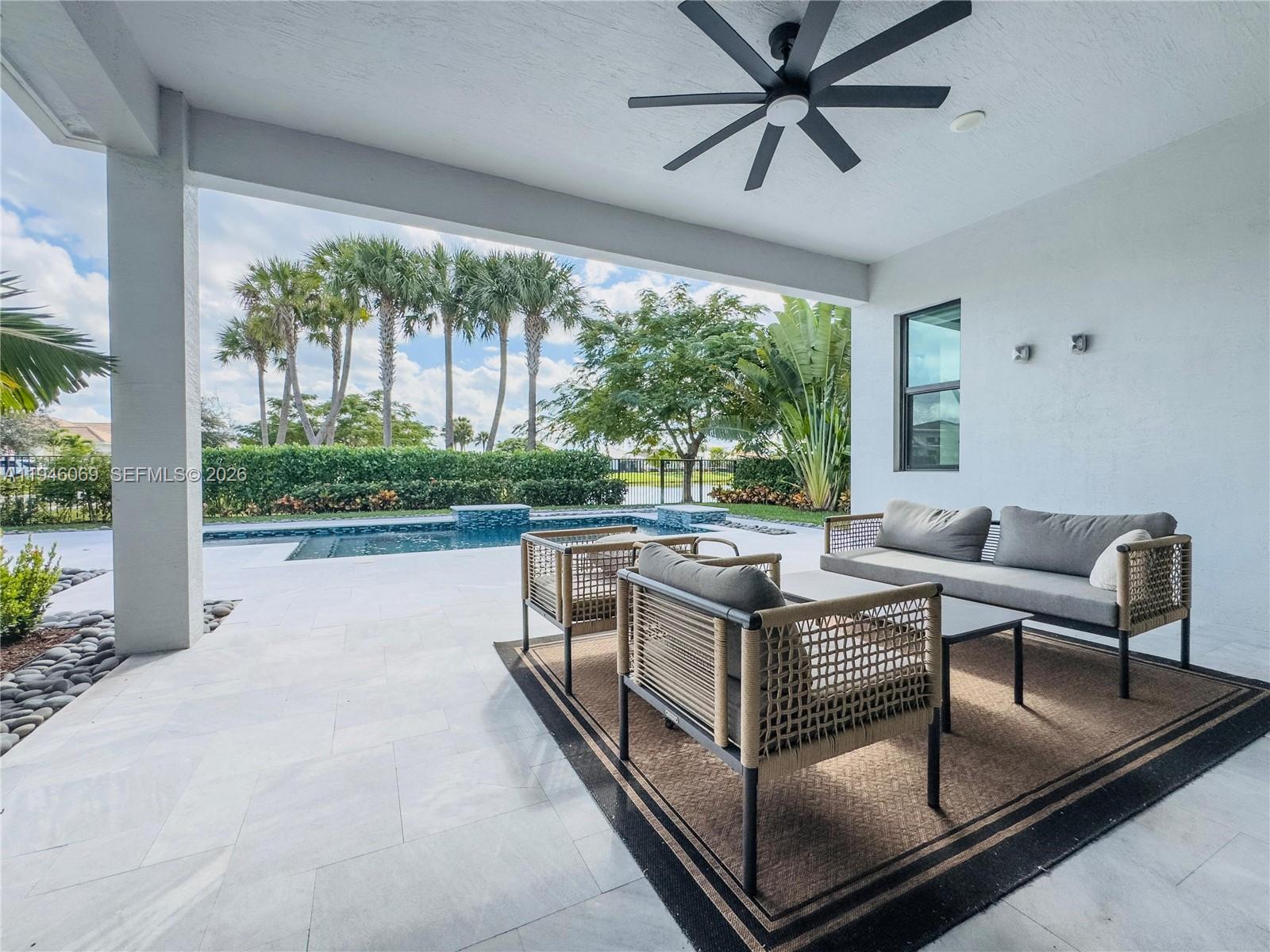 The home also features a private den and oversized laundry room, along with premium security and smart-home upgrades, including 12 security cameras and home automation controlling the heated pool, lights, alarm system, and waterfalls. Enjoy tranquil lake views and a private outdoor retreat perfect for relaxing or entertaining.