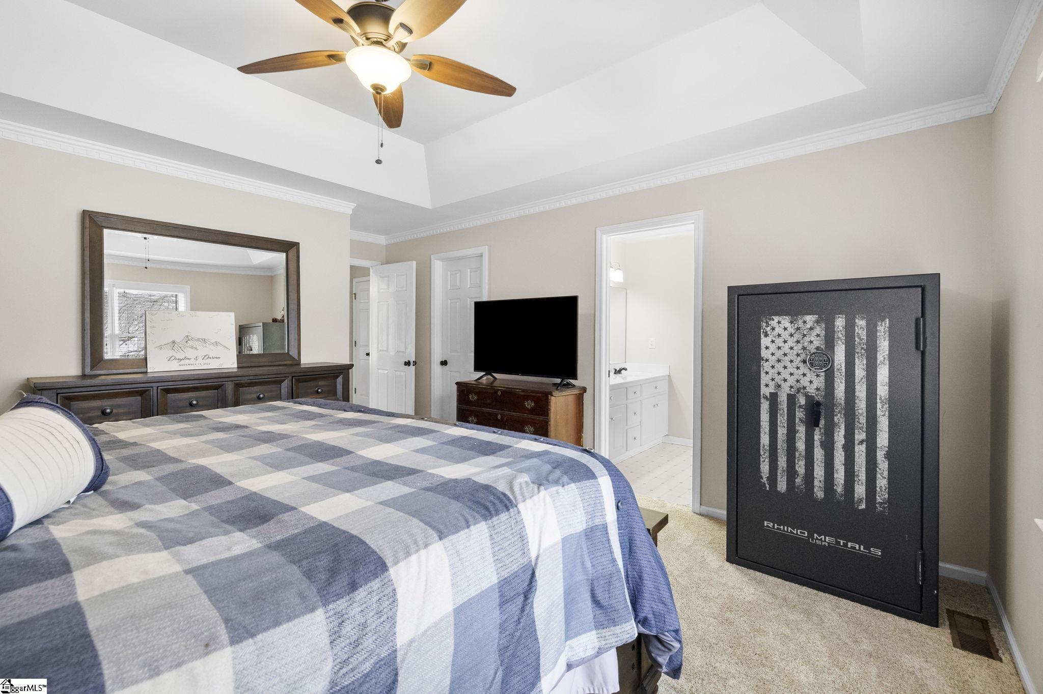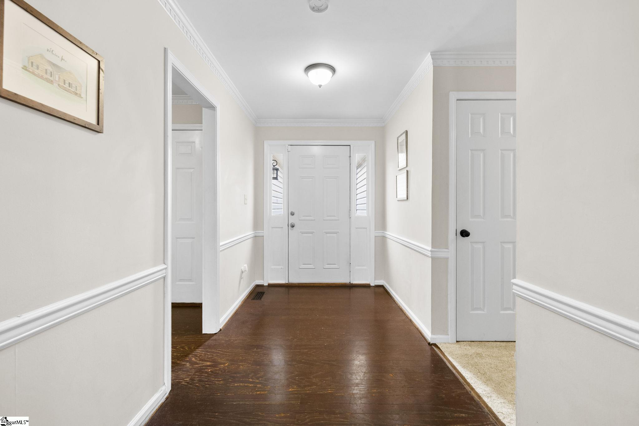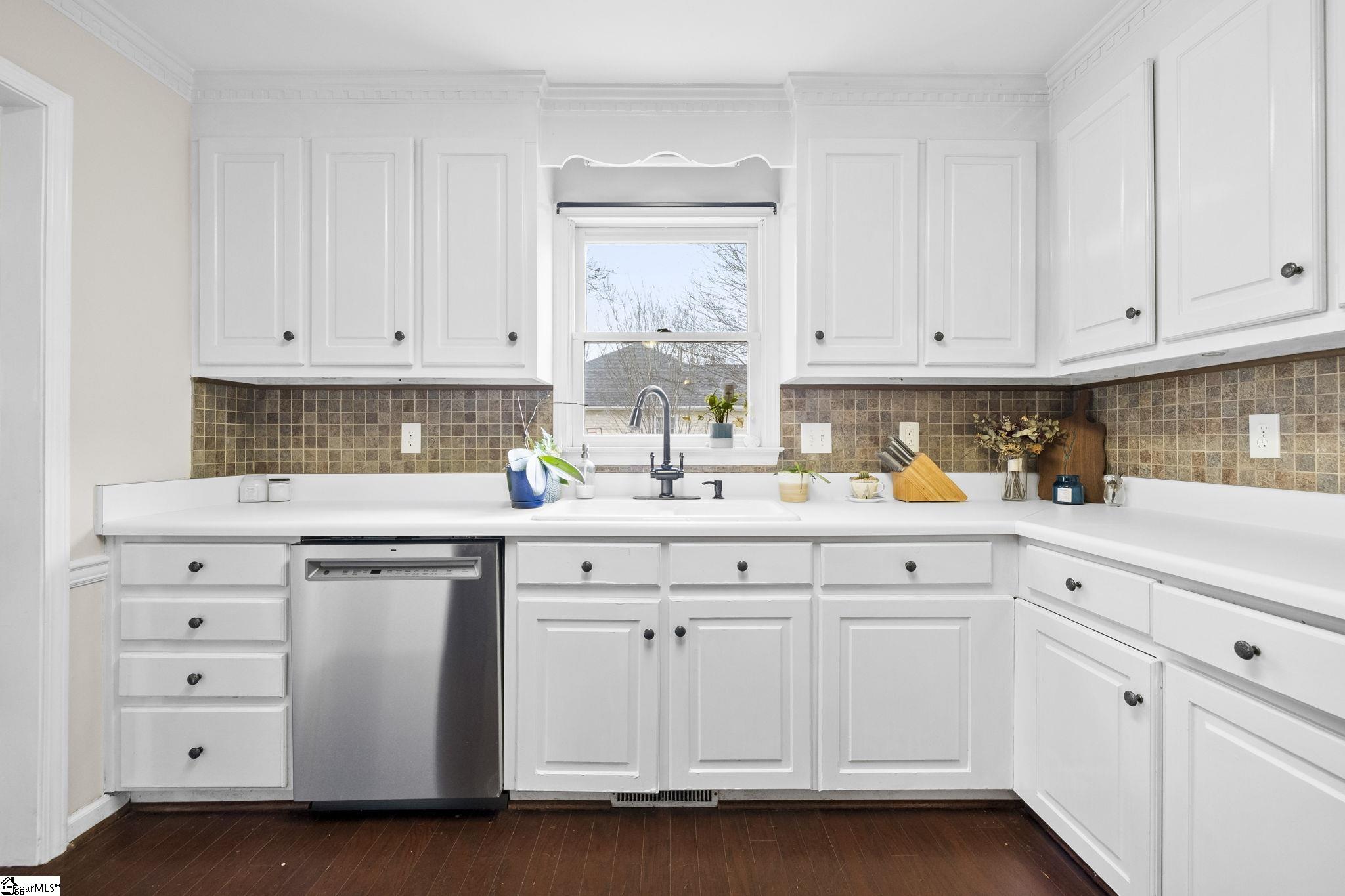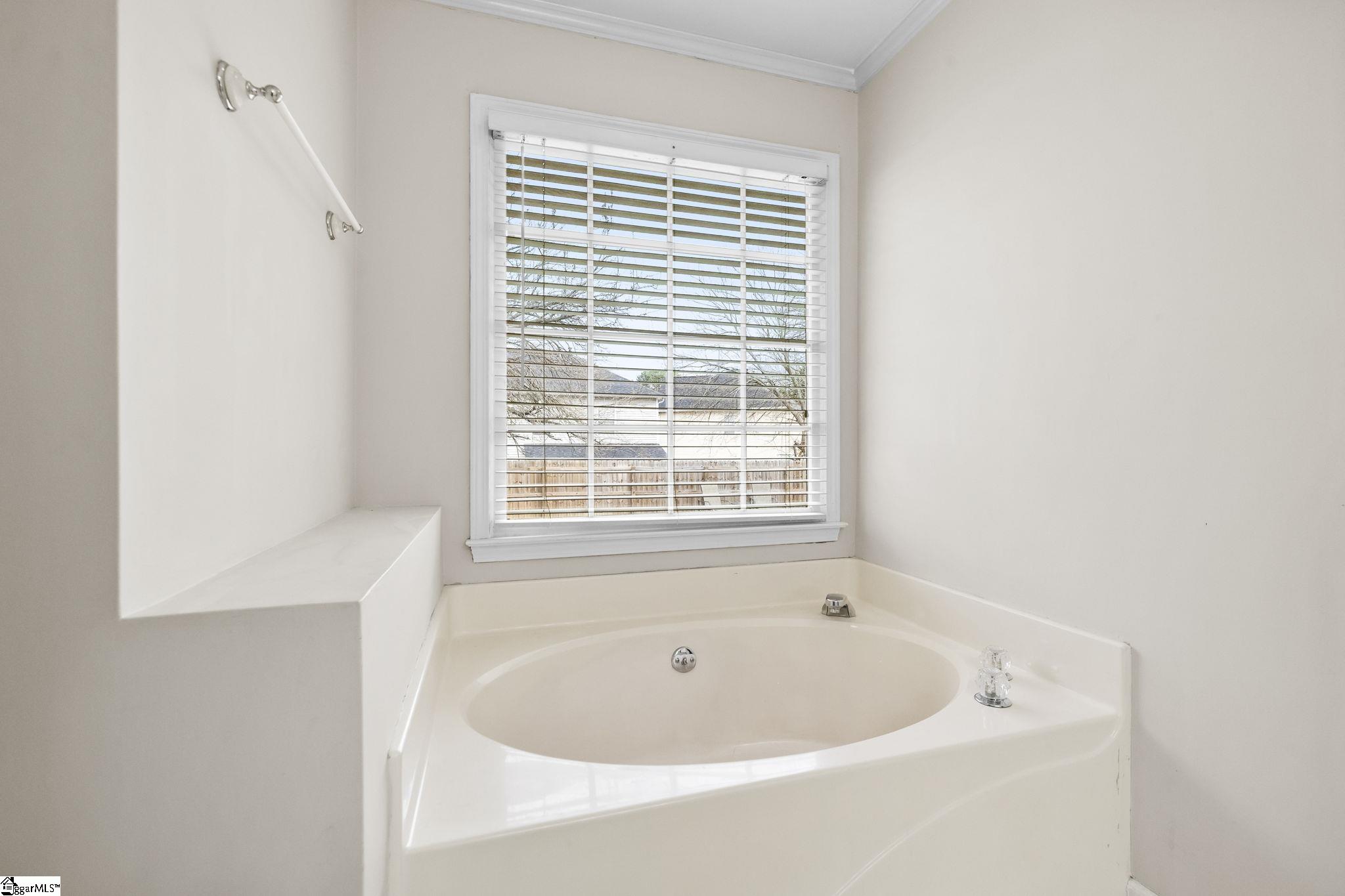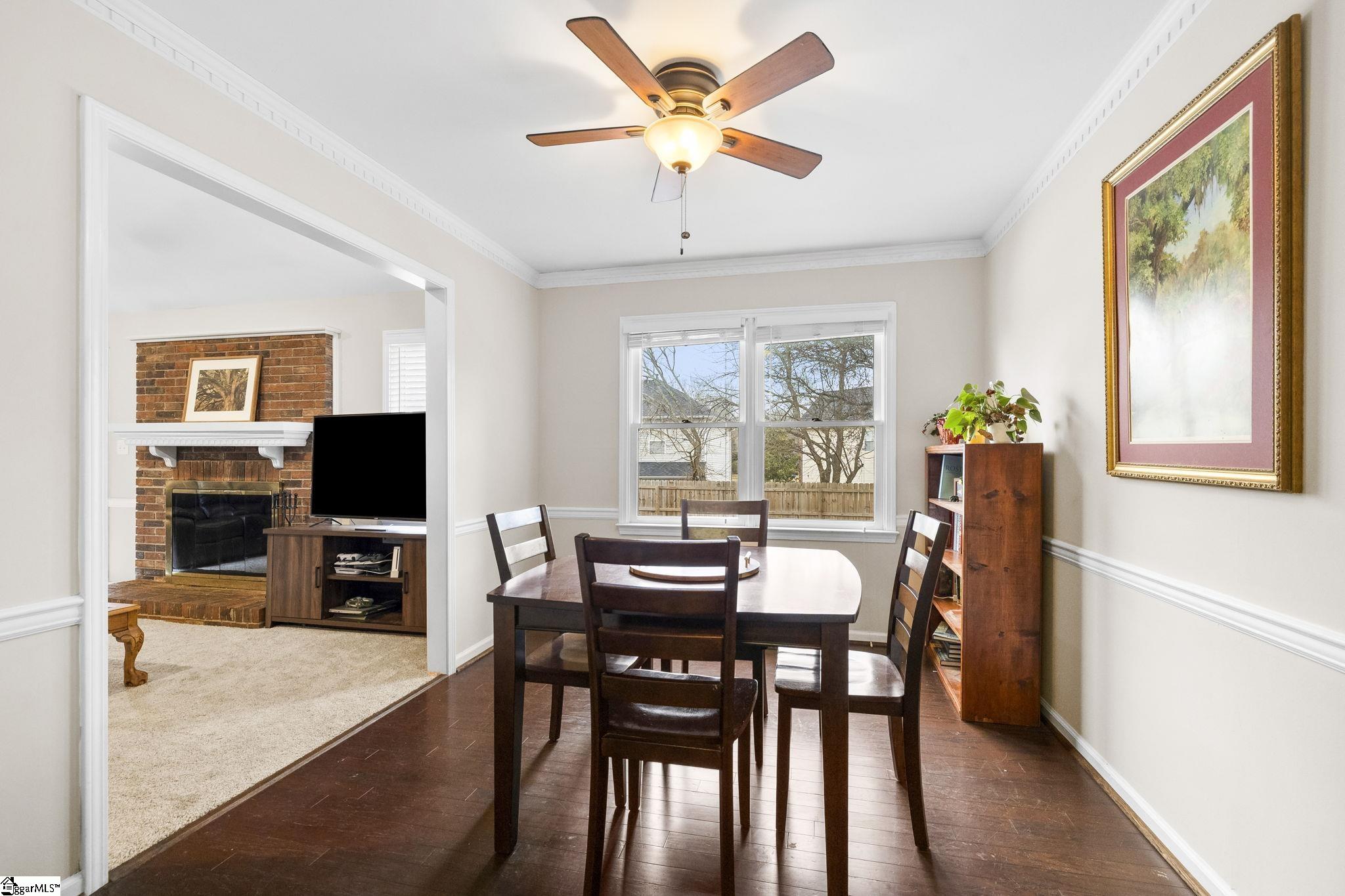 Ranch-style home offering one-level living at its finest, ideally located in the sought-after Rosemont neighborhood just minutes from downtown Simpsonville. The flexible floor plan features a spacious kitchen with the option for an eat-in area or a keeping room/drop zone that leads directly to the two-car garage. Off the kitchen is the sunny dining area with a great view of the backyard. The vaulted great room is warm and inviting with a cozy wood-burning fireplace—perfect for chilly winter nights. Two secondary bedrooms share a hall bath with a tub/shower combination, while the spacious primary suite offers a trey ceiling, walk-in closet, and private bath with dual sinks, a garden tub, and a separate shower. Step outside to a fabulous backyard designed for entertaining and everyday enjoyment, complete with a full privacy fence, mature landscaping, and a deck overlooking the in-ground saltwater pool with ample surrounding patio space. A separate covered patio provides the perfect spot for outdoor dining or relaxing in the shade. The generous backyard still offers plenty of room for a playset or additional gardens. Prime location just off Highway 14 and minutes from I-385, shopping, dining, and all that downtown Simpsonville has to offer.