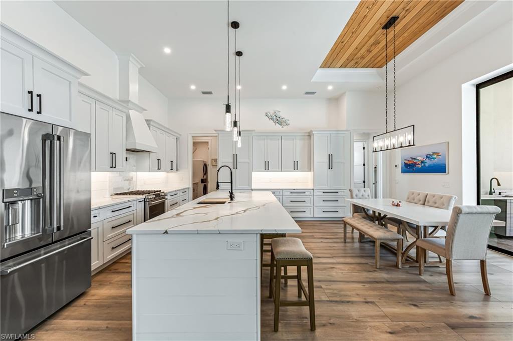 This one of a kind home sits in a prime location just one mile from the beach! New construction and fully custom built in 2025 includes 5 bedrooms, 4 bathrooms, expansive kitchen, 2 car garage, salt water pool with spa and sun shelf, and outdoor barbeque. As you walk through the 10 foot high front door you have the benefit of an open concept living space that perfectly blends a coastal and elegant feel. Master bedroom offers his and her closets and vanities, separate toilet room, expansive shower with dual shower heads with rain shower. The living room includes a custom built shiplap accent wall with television and electric fireplace. 10' sliders give sweeping views of the extensive lanai with multiple seating areas, outdoor shower and green space. The home is completely equipped with GE Cafe gas appliances drawing from the 500 gallon propane tank included on property. The custom finishes and detailed wood ceiling accents are the perfect example of artisanal craftsmanship. This home does not disappoint in any area and as a builder product, warranty is still in place. Fully or partially furnished it is ready for you to start your dream of island living today!