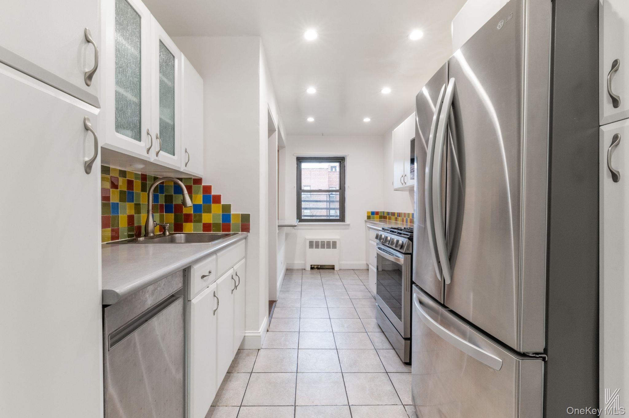 Bathed in natural light from its north and east exposures, this sun-filled corner residence offers a rare blend of warmth, scale, and thoughtful design. Custom window seats with hidden storage anchor the expansive living room and flow seamlessly into a defined dining area, creating an inviting setting for both everyday living and effortless entertaining. The pass-through kitchen has been beautifully reimagined with both form and function in mind. Generous counter space allows for comfortable prepping and hosting, while Corian countertops, a striking glass tile backsplash, custom cabinetry, recessed lighting, and ceramic tile flooring elevate the space. Stainless steel appliances, including a dishwasher, complete the kitchen, which can be accessed from both the foyer and dining area for intuitive flow and ease of use. Just beyond the kitchen, the spa-like bathroom is a standout. It features a custom glass-enclosed bathtub, floor-to-ceiling porcelain tile accented by a refined glass mosaic border, chrome fixtures, a double-wide mirrored vanity with storage below, hexagon ceramic tile flooring, and a modern triple-light fixture. The result is a serene, well-appointed space that feels both timeless and indulgent. Both bedrooms are privately situated and generously proportioned. The primary bedroom enjoys soft northeast light, while the second bedroom is filled with southeast sun, offering flexibility as a guest room, home office, or nursery. Storage throughout the home is exceptional, beginning with two oversized floor-to-ceiling closets with 96-inch custom doors upon entry. Each bedroom features its own floor-to-ceiling closet, complemented by two additional closets located just outside the bathroom. An oversized entryway closet functions as a true storage room—an increasingly rare and valuable feature. New moldings and baseboards throughout provide a crisp, finished feel and complete this truly move-in-ready home. Monthly maintenance is a remarkably low $1, 158. 50 and includes all utilities. Additional amenities include a designated storage unit, complimentary bike storage, and access to a full fitness center for just $10 per month. The beautifully maintained cooperative offers landscaped gardens, three private courtyards with seating and play areas, and a party room available for private events at a nominal fee. A wait-listed indoor garage is also available. Small pets are permitted. Subletting is not allowed. A minimum 20% down payment and board approval are required.