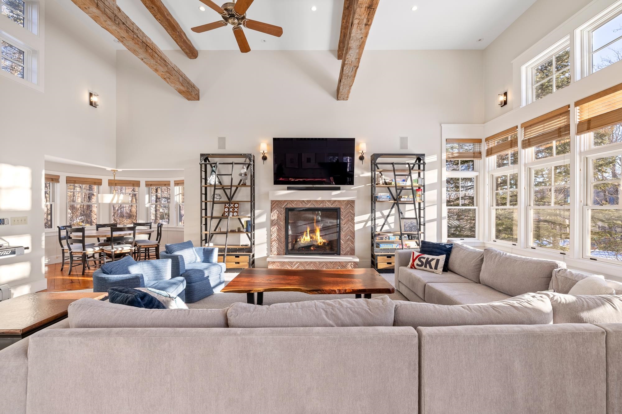 STUNNING Renovation of an iconic Stratton Mountain Residence-"The Cottage on the Green"- Long considered one of the Resort's Premier Properties with a much coveted location on the Golf Course Forest Tee # 8 and with huge Stratton Mountain views of the trails. Originally created by architect Jeffrey Barnes, the design has been recreated in a warm contemporary aesthetic, with great attention to details and quality. With wonderful open spaces and a comfortable flow, the floorplan design offers spacious gathering areas that flow seamlessly for entertaining, all with exceptional views and southerly exposure. The great room is the signature of this wonderful design with cathedral ceilings, warm wood accents, walls of light and a wood burning fireplace as the focal point. A new gourmet kitchen, huge island, and coffee bar open to a spacious dining area and screened in porch with outdoor fireplace. The main floor family room with third fireplace and loft offers maximum entertainment with billiard table, wet bar, game table nook and access to the deck with outdoor hot tub, creating a great apres ski experience and front row seats to resort firework celebrations throughout the year. The primary ensuite and sitting area with 4th fireplace is privately situated on a level of its own- the perfect respite when the home is alive with mountain activities. Multiple bedroom suites, new upscale tiled baths, sauna and small workout space bring a much enjoyed lifestyle to resort luxury living. With mudroom/ski room, double garage and functional use of storage, convenience abounds. The winter shuttle picks you up at your driveway, snowshoe directly from your backyard, enjoy pickleball or tennis at the resort fitness center, and don't forget golf at the 27 hole resort course. Rare opportunity to enjoy a turn key luxury property along the most premier row of homes. SIMPLY STUNNING!Showings Begin SUNDAY 1/18.