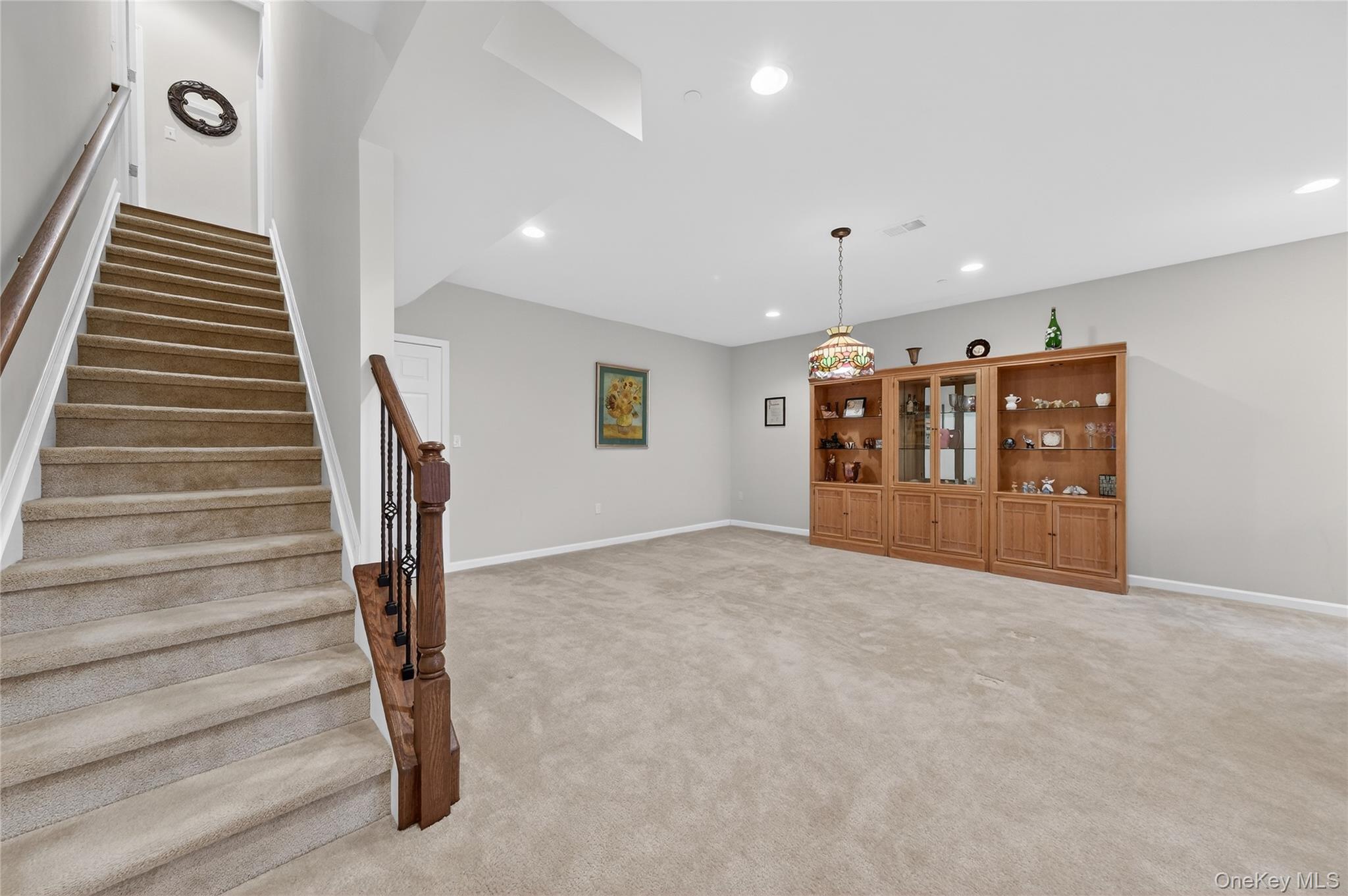 Luxury Living for your next BEST chapter. . . Welcome to this stunning three-level townhome offering nearly 3, 000 square feet of beautifully designed living space, perfectly positioned to capture gorgeous mountain views at The Retreat at Carmel by Pulte Homes, a premier 55+ community in Putnam County, NY—a lifestyle designed for comfort, convenience, and enjoyment. A grand, elegant entry foyer sets the tone, showcasing exceptional attention to detail throughout, including gleaming hardwood floors, decorative moldings & custom trim work, high ceilings, recessed lighting, and a wrought-iron spindle staircase, all within a flowing, thoughtfully designed floor plan. The formal dining room impresses with an elegant tray ceiling, creating a sophisticated setting for entertaining. The beautiful kitchen features a center island, light stone granite countertops, tiled backsplash, pendant lighting, and upgraded/new stainless-steel appliances, and opens seamlessly to a spacious living room with a gas fireplace and sliders to the deck, ideal for relaxing or entertaining. The expansive primary suite on the main level offers refined architectural detail and a spacious bathroom with a tiled shower, double sinks, and a walk-in closet. This level also includes a convenient powder room and a laundry room with a wet sink. The private second level features a loft overlooking the living area below, a generously sized bedroom with a walk-in closet, and a full tiled bath. The finished walkout basement provides a large great room and an additional room with a closet, ideal for a bedroom, home office, gym, or whatever best suits your needs, along with ample storage and rough-in plumbing for a future bathroom. Additional highlights include forced-air gas heat, central air, and a two-car garage. Enjoy low-maintenance, resort-style living with exceptional amenities including a 7, 100-square-foot clubhouse, fireplace lounge, outdoor heated pool, fitness center, tennis and bocce courts, putting green, BBQ area, hobby room, billiards room, ballroom, and kitchen—all just minutes from shopping, restaurants, and everything you need.