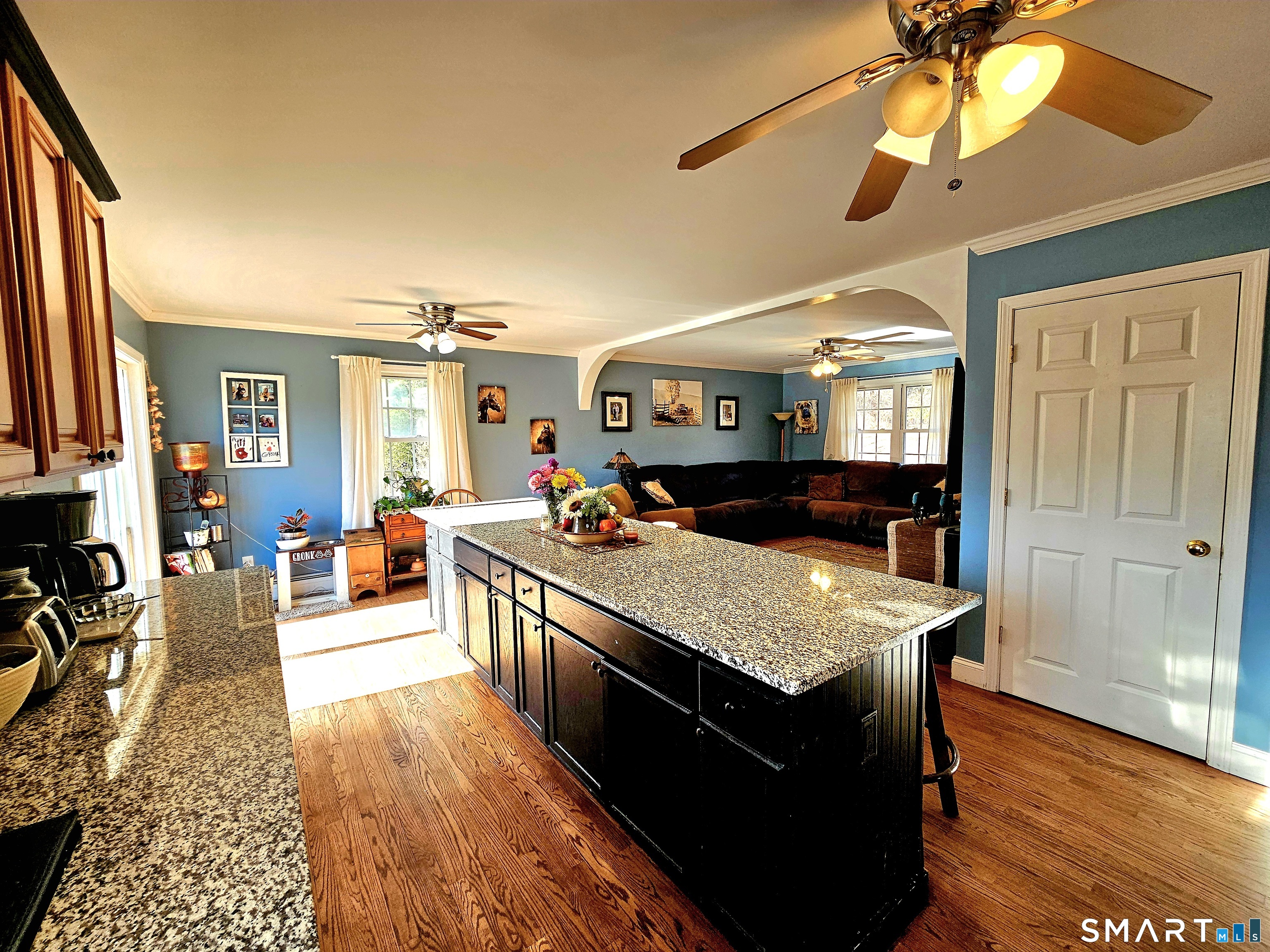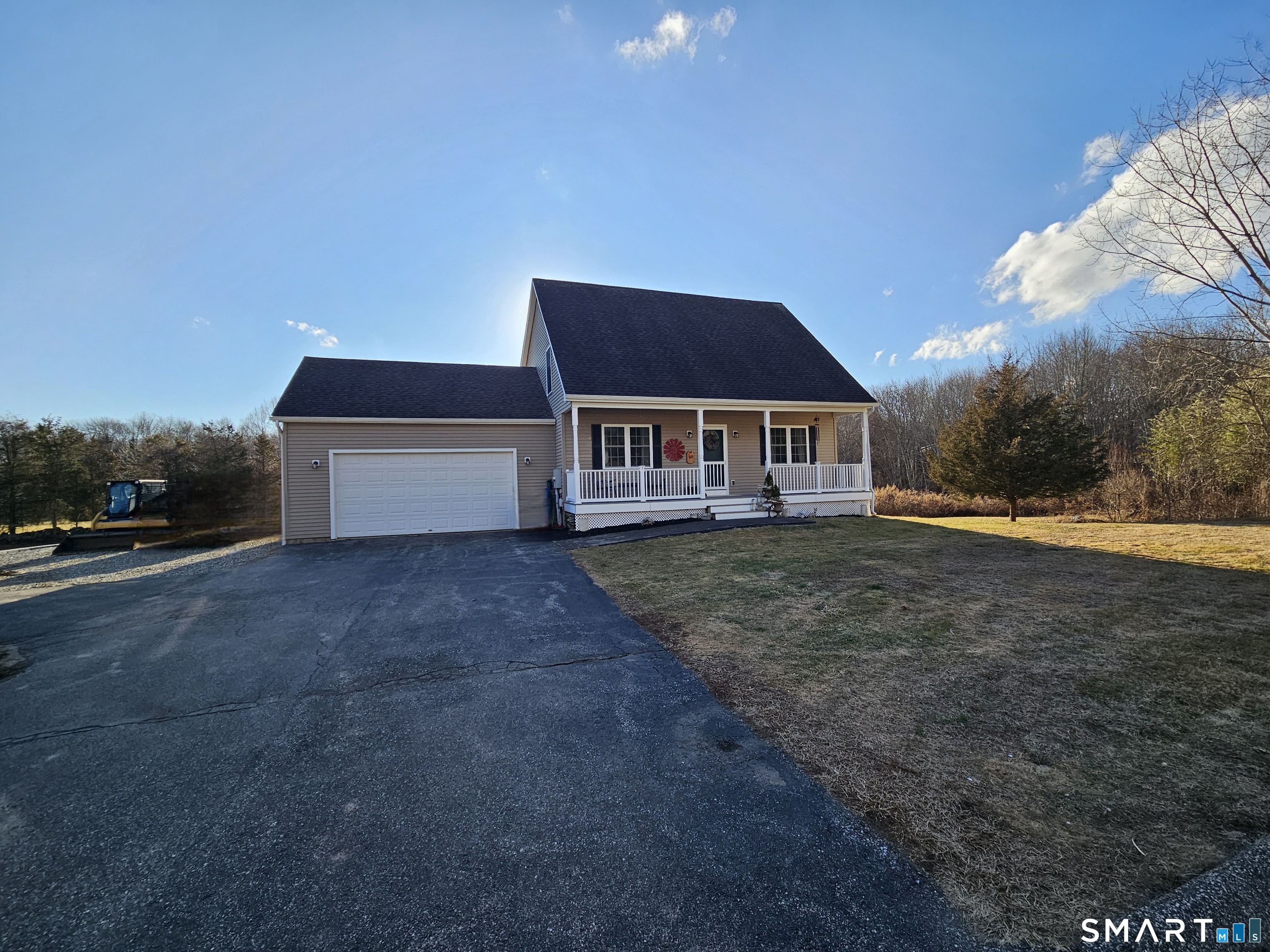 Griswold Beautiful Open Cape w an ADORABLE FARMERS PORCH, 2184sqft, 3 -4 bedrm, 2. 5 Baths, 2 Car Garage w/ high ceilings & garage door openers, 40x60 foundation built in the back yard and ready for any building you want. Could be a Barn, garage, steel building or more & already permitted on 1. 8ac of land in a DESIRABLE CUL DE SAC. Have you dreamed of living on a dead end street with block parties, holloween nights walking, riding bikes & much more. This could be the perfect home. GORGEOUS open floor plan with 2 tone GRANITE kitchen w/ built in sink, fully applianced and a HUGE 11x3 GRANITE ISLAND w/full cabinets on one side & overhang on 3 sides w/a Slider to your NEW trek deck w/ Vynl railings over looking your private yard w/ a fire pit area. Spacious living rm and separate dining rm. Hardwd floors throughout, open stairs case between your living & dining rm. Lots of closet space & large pantry w/1st floor half bath. 3 bedrms on the 2nd floor w/ a beautifully done master suite w/ a walkin closet, full bath w/ tile floors, double granite sinks & glass door shower stall. 2 nice size bedrms w/ full bath w/ hardwd floors. FULL basement finished for more expansion for a 4th bedrm, INLAW, Family rm, play room, office with a walkout w/ plenty of storage. Paved driveway, newer walkway, lots of parking. Close to all major routes, 395, 95, RI, Airports, casinos & more. More pictures to come of the bedrms. So much to offer in this spacious home. Come make this your forever home