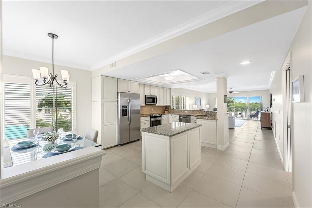 Experience breathtaking bay views and vibrant sunset skies from this move in ready end unit in Marina Bay Club. This beautifully updated two-bedroom, two-bath condominium offers a seamless blend of comfort, style, and convenience. The spacious open concept living area is bathed in natural light and enhanced by modern finishes throughout. The gourmet kitchen features granite countertops, stainless steel appliances, custom cabinetry, and a center island ideal for both everyday living and entertaining. Step onto the private, screen-enclosed balcony to enjoy peaceful mornings or evening cocktails while overlooking lush surroundings, tranquil waterways, and stunning sunsets. The primary suite serves as a serene retreat, complete with a custom designed walk-in closet and a luxurious en-suite bath featuring dual vanities and a walk-in shower. A spacious guest bedroom and newly renovated guest bath provide visitors comfort and privacy. Full storm protection provides peace of mind, with brand-new impact windows and electric roll-down shutters on the lanai. Additional upgrades include tile flooring throughout, plantation shutters, new lighting fixtures, and a new air conditioning system installed in 2021. This residence also offers in unit laundry, under building parking, and extra storage. Residents enjoy an impressive array of amenities, highlighted by a community pool and spa that were just remodeled with a freshly resurfaced pool, new pavers, and new patio furniture. Additional amenities include a BBQ area, fire pit, tennis and pickleball courts, kayak storage, and a kayak launch. Low condo fees cover fiber-optic cable and WiFi, water, building security, an on-site manager, and more. Ideally located just minutes from pristine beaches, world-class dining, and shopping, this exceptional condo delivers the best of the Naples lifestyle. Don’t miss the opportunity to own a piece of paradise in one of North Naples’ premier buildings.