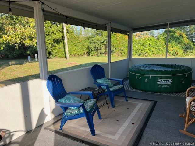 Motivated Seller ! All new interior , new bathrooms, new kitchen with Quartz countertops, stainless appliances, glass backsplash, 2 bedrooms, 2 baths, plus extra large Florida room and attached carport , plus 2 storage areas. New flooring and sub flooring . Very large lot with privacy in the back yard. Gated community offering , two pools, clubhouse, tennis, fitness, game room, library, boat and RV Storage. This home is being sold furnished, hot tub does not convey . New AC 5/2023, Newer Hot water heater. This home shows like a model and ready for a new owner .