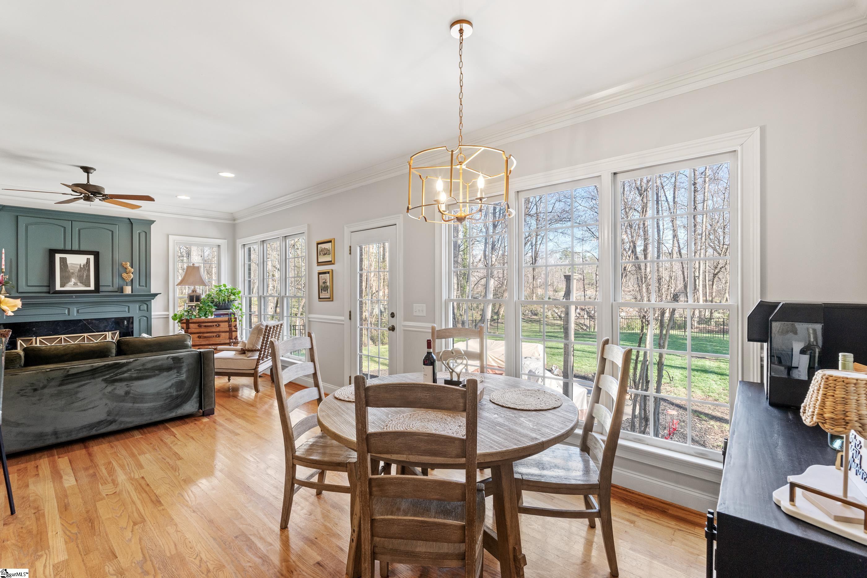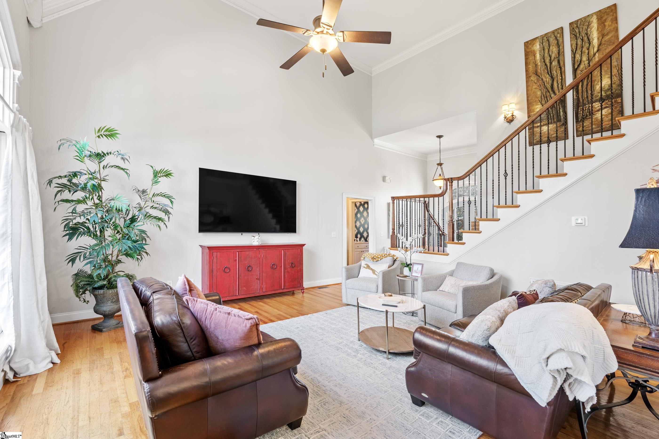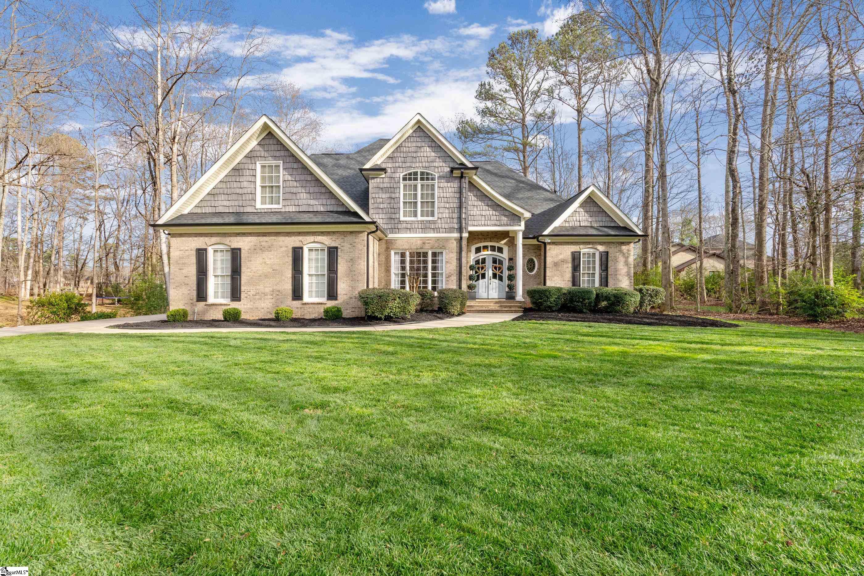Welcome home to this meticulous, one-owner residence located in one of Easley's most sought-after neighborhoods, Smithfields. This 4-bedroom home offers a desirable primary suite on the main level featuring an updated bathroom and spacious walk-in closet. The two-story great room creates an impressive focal point, filled with natural light and overlooking a private, fenced backyard with serene pond views. The kitchen is open to the cozy keeping room with a gas fireplace, perfect for everyday living and entertaining. Step outside to enjoy the brick paver patio complete with a fire pit, ideal for relaxing or hosting gatherings. Upstairs, you'll find three additional bedrooms, including a guest suite, along with a versatile bonus room perfect for a gaming space, den, or home office. Additional highlights include a 2-car garage and a beautifully maintained yard. This exceptional home blends comfort, functionality, and location, an opportunity not to be missed. Home comes with American Home Shield Warranty.