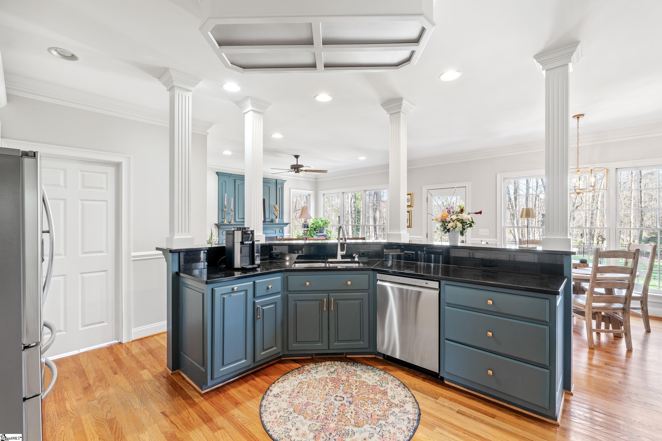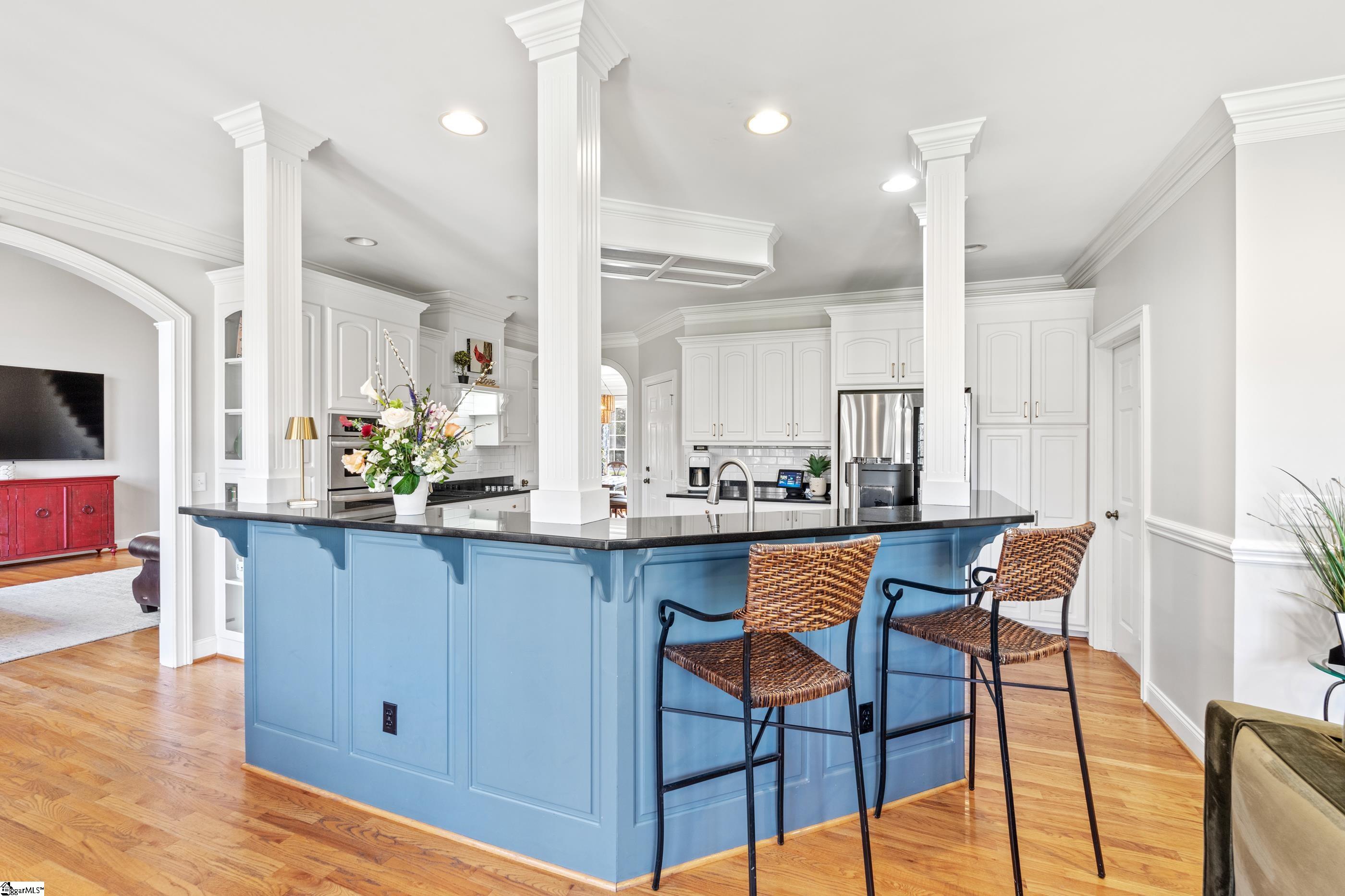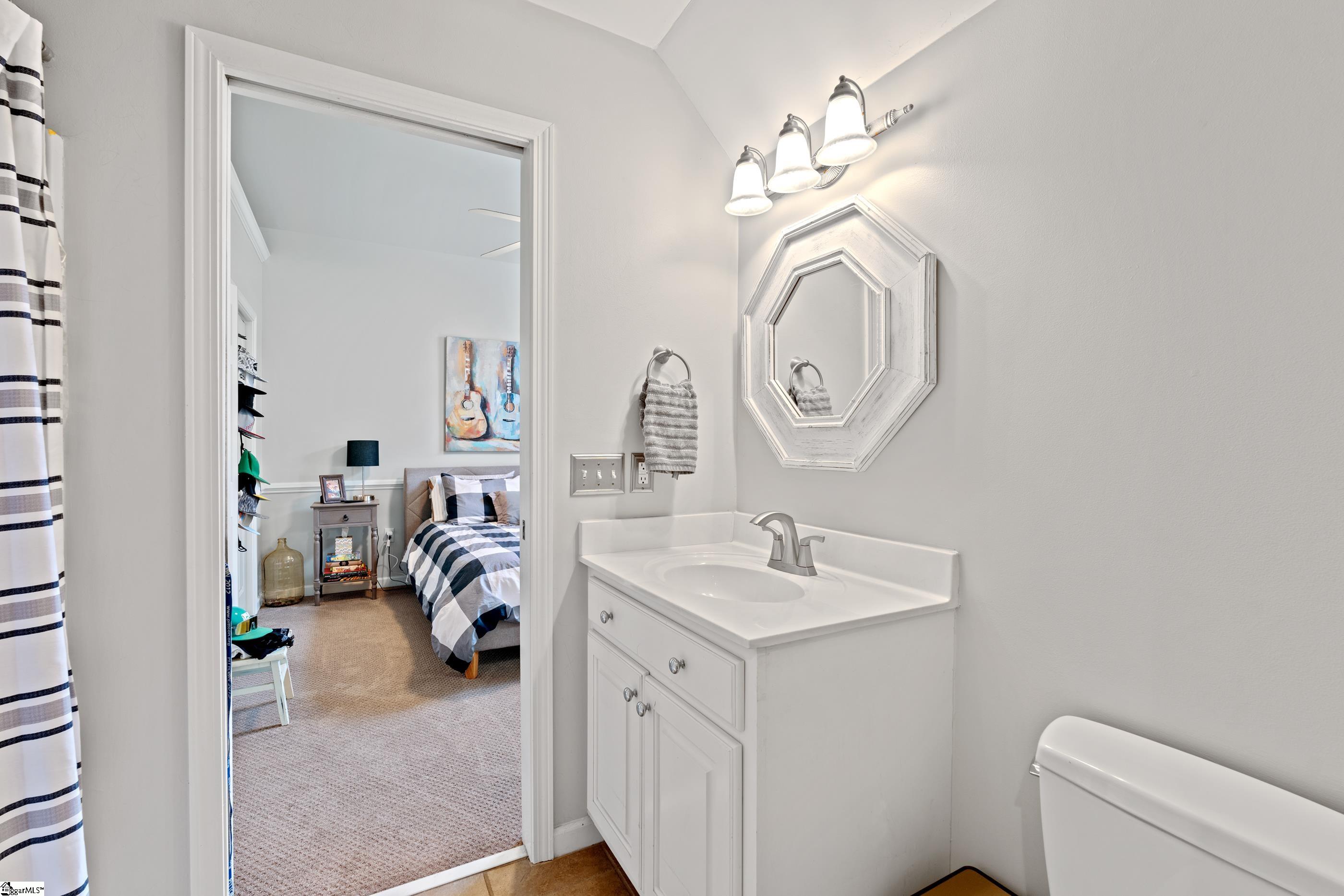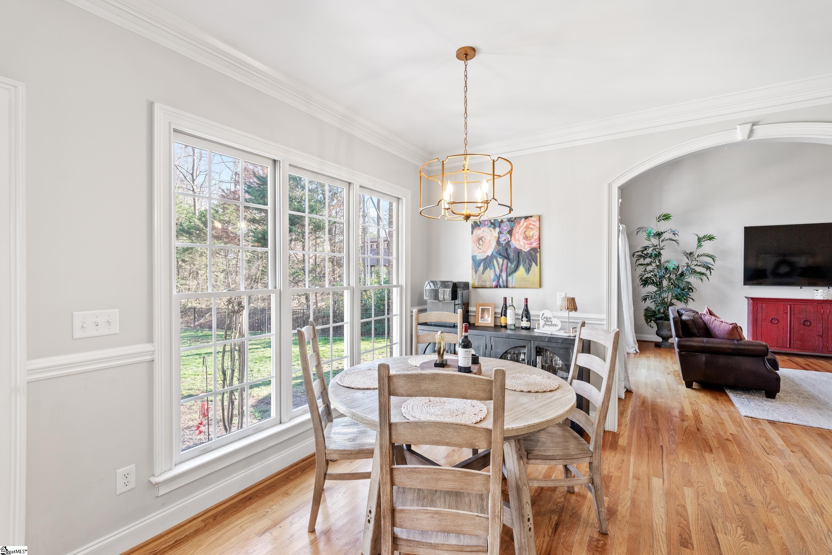 Welcome home to this meticulous, one-owner residence located in one of Easley's most sought-after neighborhoods, Smithfields. This 4-bedroom home offers a desirable primary suite on the main level featuring an updated bathroom and spacious walk-in closet. The two-story great room creates an impressive focal point, filled with natural light and overlooking a private, fenced backyard with serene pond views. The kitchen is open to the cozy keeping room with a gas fireplace, perfect for everyday living and entertaining. Step outside to enjoy the brick paver patio complete with a fire pit, ideal for relaxing or hosting gatherings. Upstairs, you'll find three additional bedrooms, including a guest suite, along with a versatile bonus room perfect for a gaming space, den, or home office. Additional highlights include a 2-car garage and a beautifully maintained yard. This exceptional home blends comfort, functionality, and location, an opportunity not to be missed. Home comes with American Home Shield Warranty.