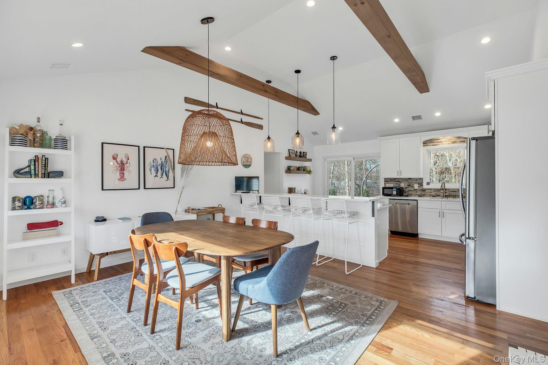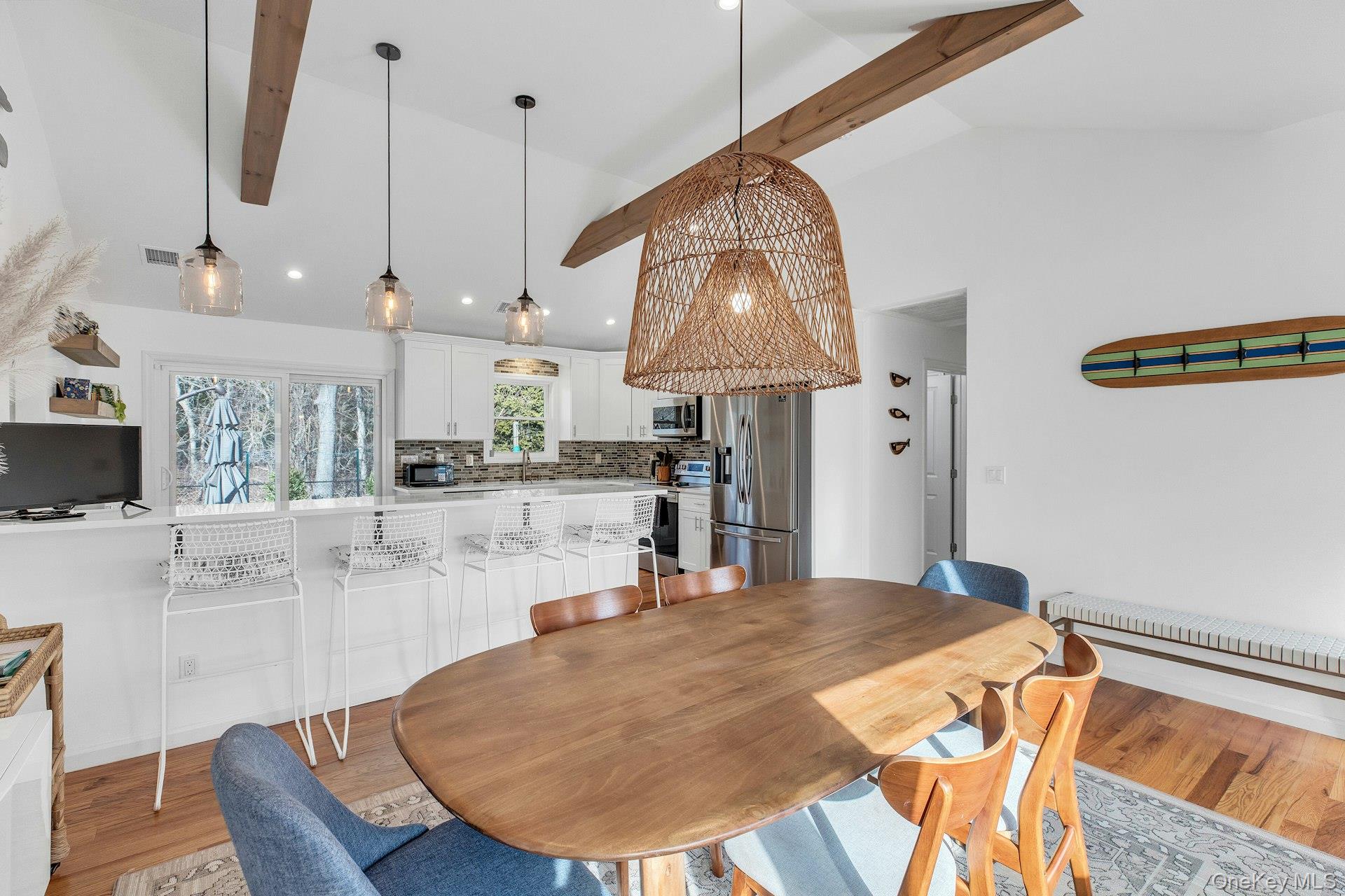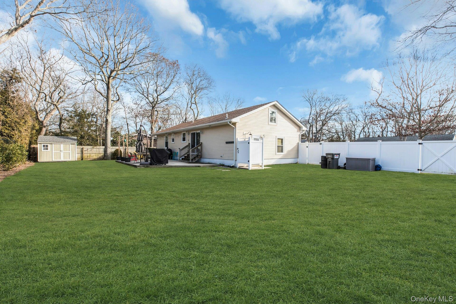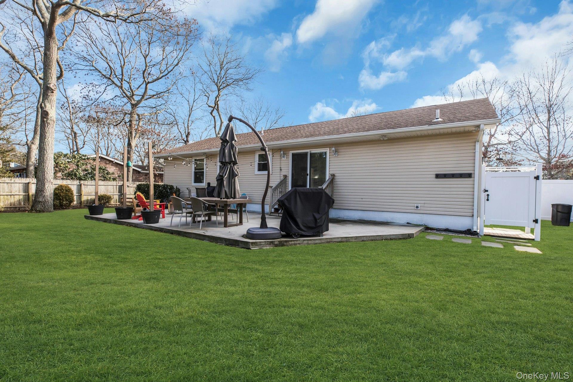 Nestled in the scenic beauty of Hampton Bays, NY, this stunning 3-bedroom, 2-bathroom residence offers an ideal blend of modern comfort and coastal charm. Step inside to discover a bright and airy open floor plan highlighted by soaring cathedral ceilings that create an inviting and spacious atmosphere. The newly renovated kitchen boasts sleek countertops, contemporary cabinetry, and state-of-the-art appliances—perfect for both budding chefs and culinary connoisseurs. The generous living room seamlessly flows into the elegant dining area, providing ample space for family gatherings or intimate dinners. An additional office space is perfect for remote work or creative pursuits. Retreat to the serene bedrooms where tranquility awaits after a long day. Both bathrooms have been beautifully updated with modern fixtures for spa-like relaxation. Outside, the expansive backyard is a private oasis offering endless possibilities—from hosting summer barbecues to creating your own garden sanctuary. Located just moments from pristine ocean and bay beaches, parks, shopping etc. this home ensures you experience the best of coastal living while being conveniently close to local amenities. Don’t miss your chance to make this captivating Hampton Bays retreat your own personal paradise!
