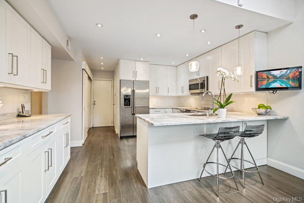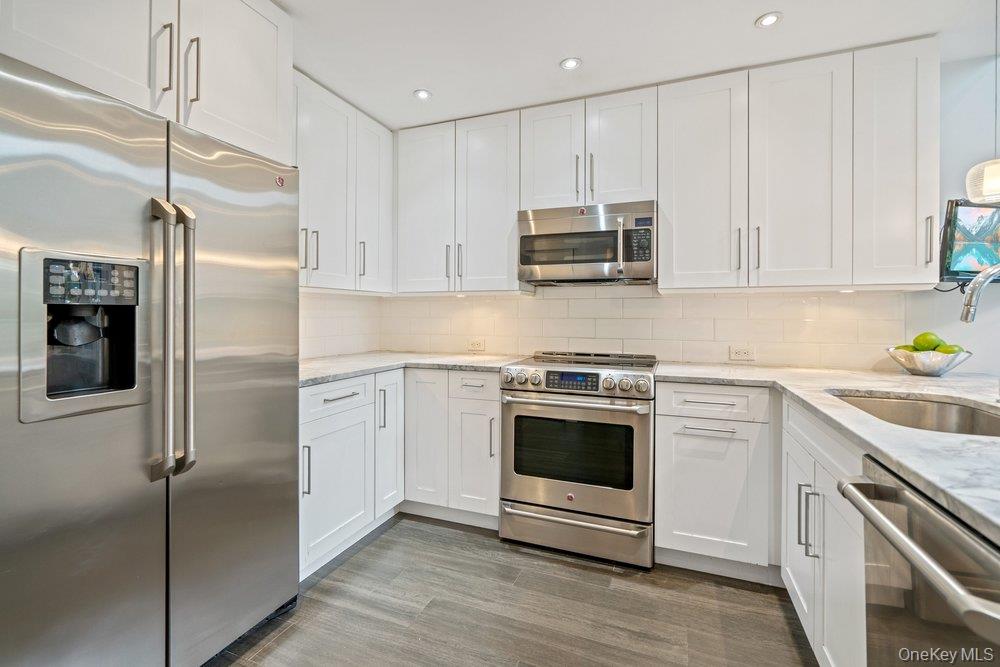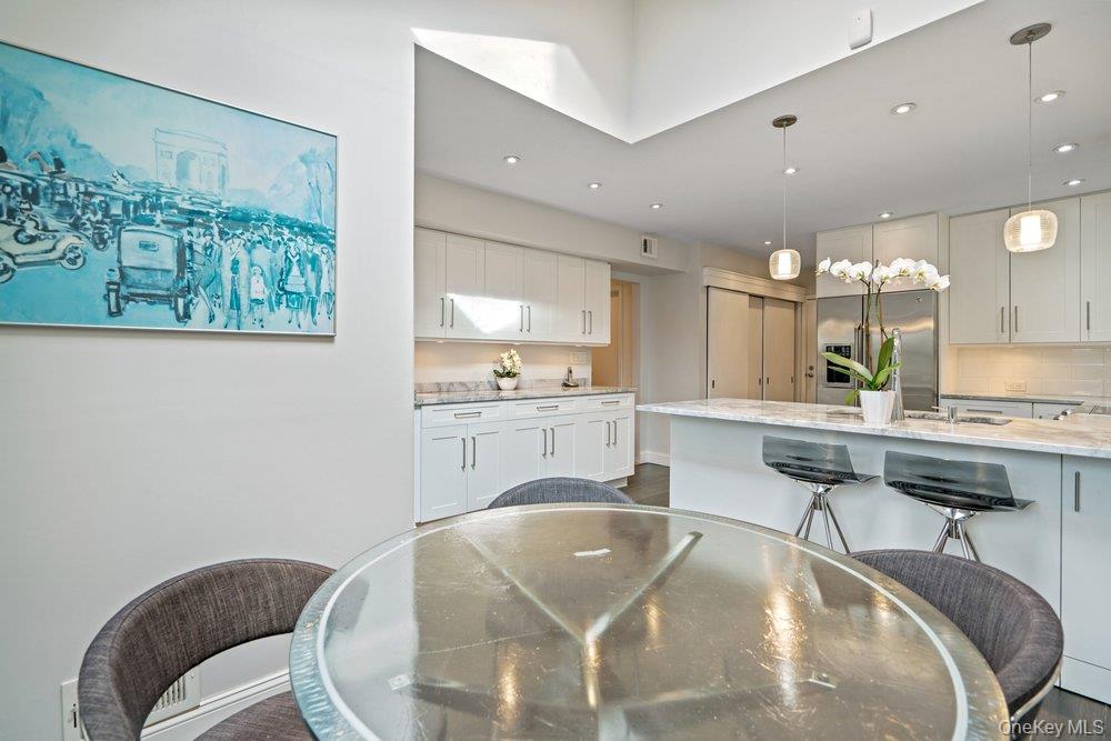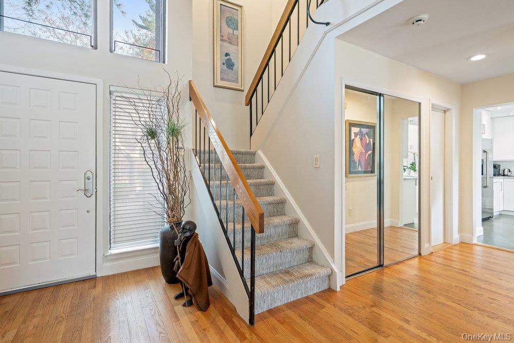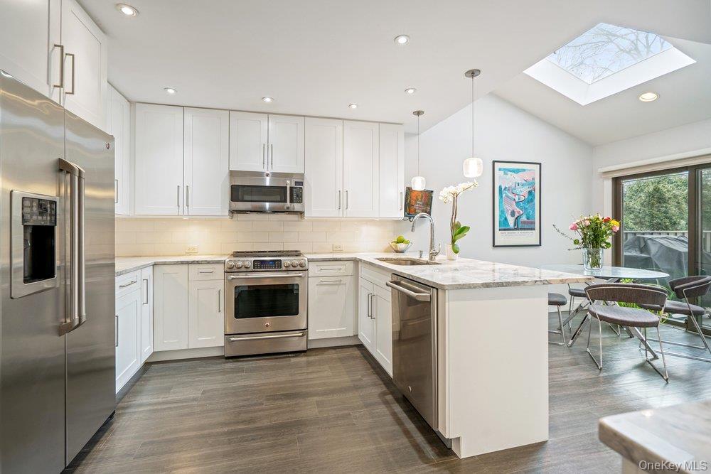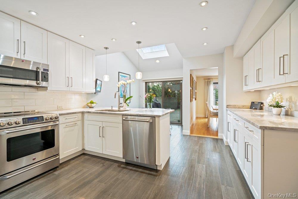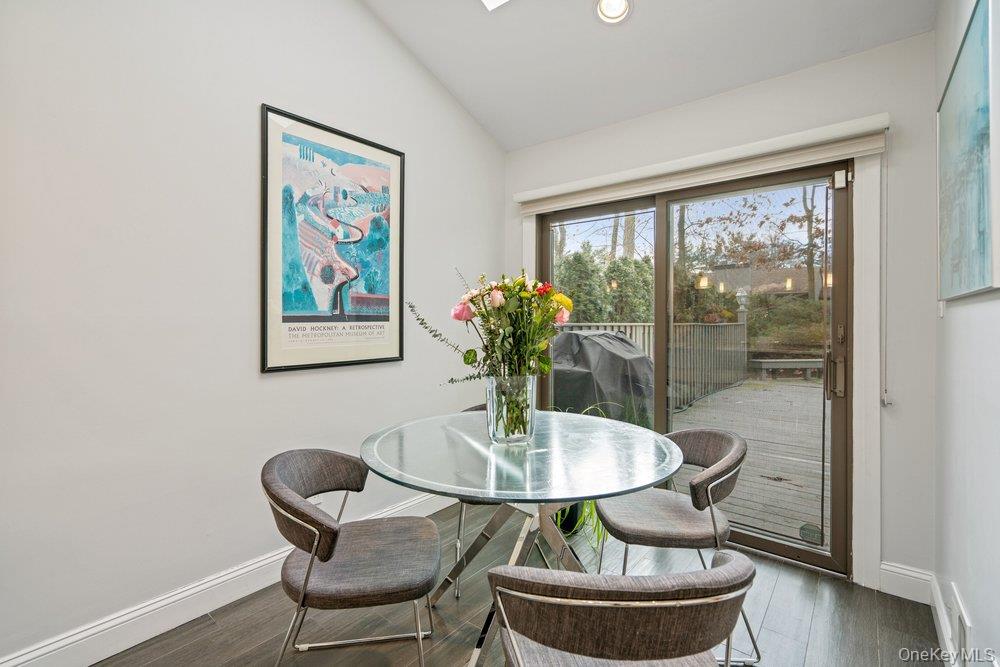 Welcome to this gracious recently renovated home. Upon entering there are wood floors throughout the main level, wood burning fireplace as focal point in the Living and Dining Rooms. All rooms on the main floor have sliders to an enclosed deck in with an expansive backyard. The Kitchen, with laundry area, has white cabinetry, quartz counters tops, Breakfast Bar plus room for a table. There's easy access from both the garage and the deck from this elegant Kitchen. The Living and Dining Rooms make it easy for entertaining as they flow from one to the other. Upstairs to the Primary Suite, with a dressing area, new bathroom with an expanded shower and walk-in closet. The second bath, shared by the other two Bedrooms is also new, with quartz counters. Both Bathrooms have windows since it's a end unit. Looking for a move-in condition home , then this is for you. Enjoy the year round amenities and security The Hamlet has to offer as this is a quickly moving market and properties like this, do not last for long.