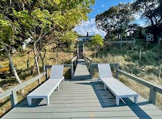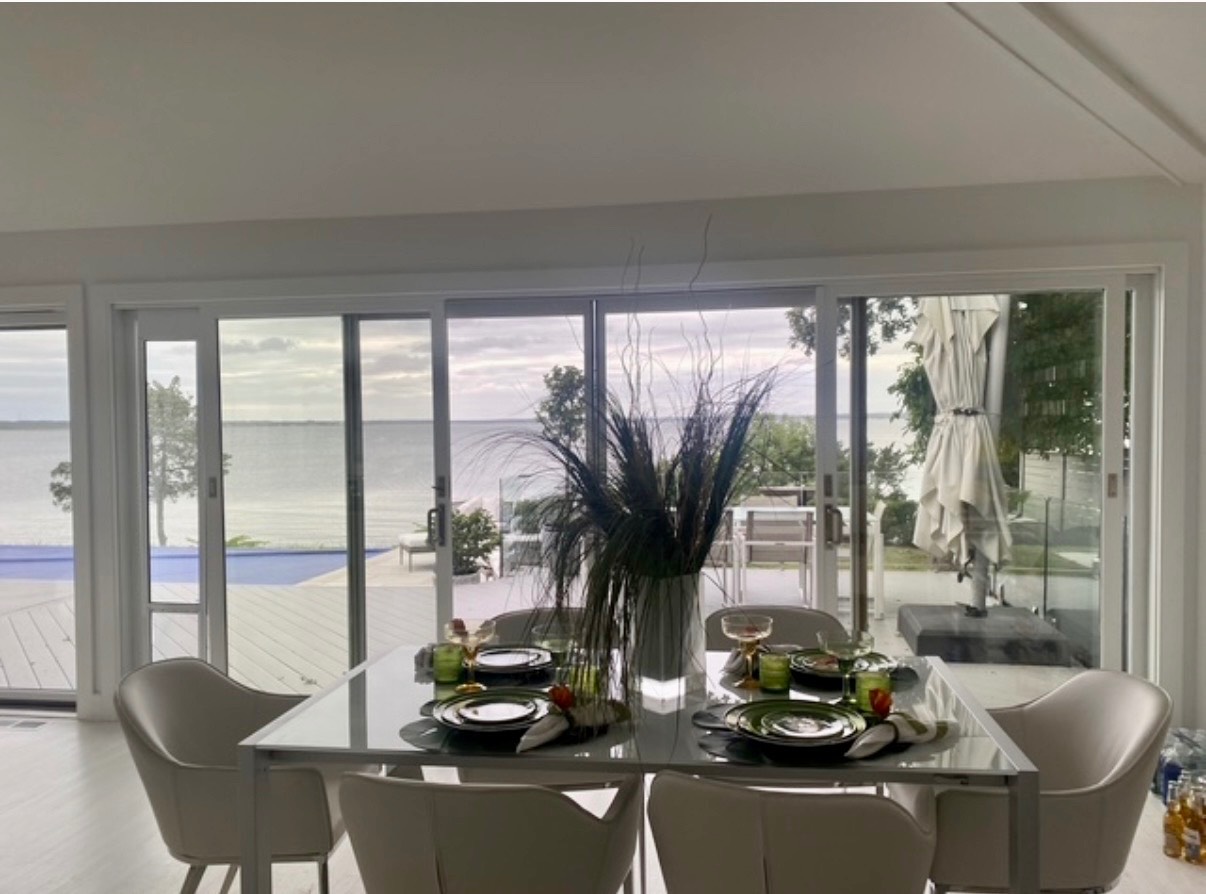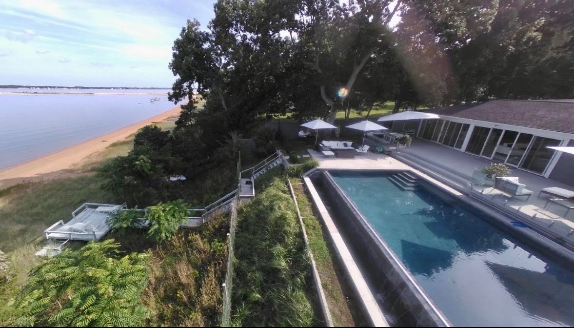 Set atop a bluff with beautiful vistas in every direction, this light-filled waterfront retreat offers a rare sense of serenity and escape. More than just a house, it is a true sensory experience-where gentle bay breezes, shimmering water views, and breathtaking sunsets become part of daily life. Designed for seamless indoor-outdoor living, the open-flow layout extends to multiple decks, an infinity pool, and private steps leading down to the bay beach, inviting you to swim, paddle, or simply play along the shore. Each evening, the sky transforms into a stunning canvas of color as the sun sets over the water. Primary bedroom overlooking the bay, two guest bedrooms, (one with private deck), 2 baths, and an outdoor shower provide comfort for all. Privately sited at the end of a quiet cul-de-sac, far from traffic and crowds, this exceptional sanctuary offers complete privacy-yet remains just a 10-12 minute drive to the village and shopping. Permit available for Southampton Town ocean & bay beaches from Westhampton to Sagaponack.