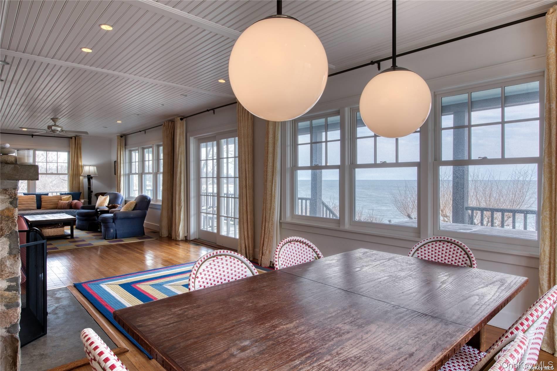 Available May $10, 000 (RENTED); June 3-27 $28, 000; July 7-30 $29, 500 (RENTED); Sept 2-16 $14, 000. Stunning waterfront shingle style home overlooking Long Island Sound with private beach access. Waterview, heated pool. Wrap-around porch. Original beach stone fireplace, vintage beadboard walls, large, updated gourmet kitchen, open common area, 5 bedrooms, 3 bathrooms, large master ensuite with private screen water view balcony. Beautiful interior furnishings, with teak rocking chairs, chaise lounges and picnic table on porch and pool area for entertaining. Close to Orient Village amenities, marinas, Country store, Yacht Club, and bay beaches. Permit# 1108.