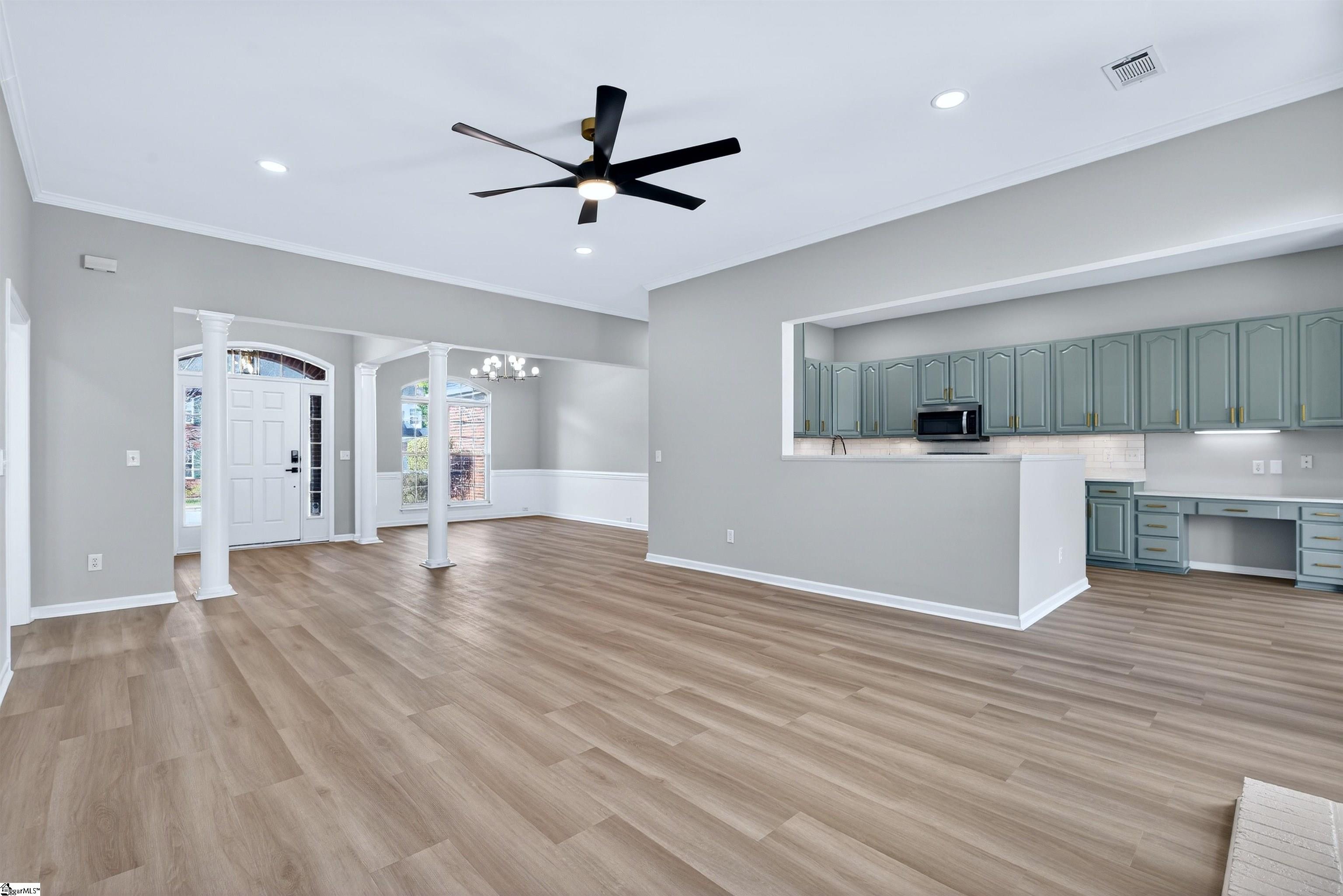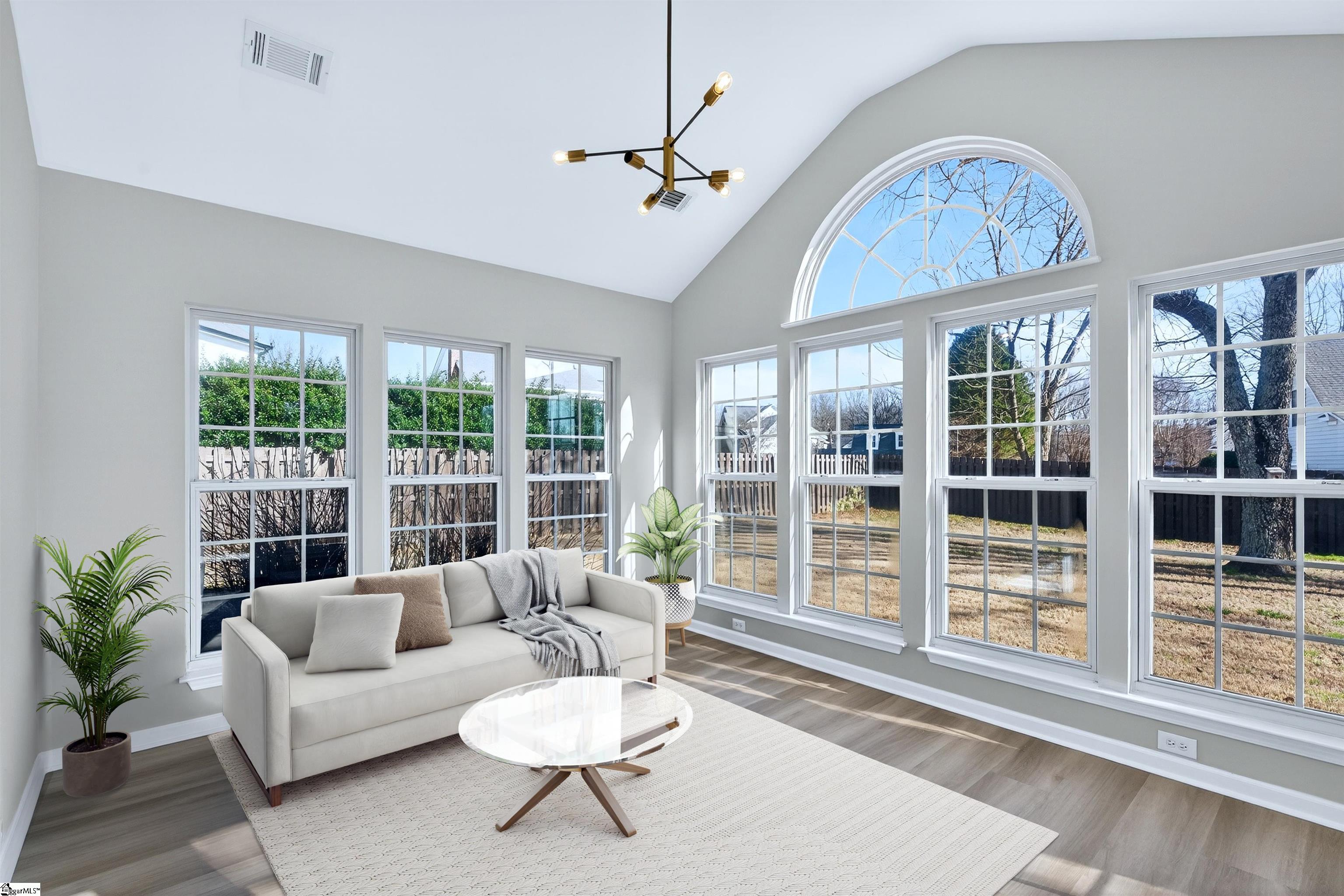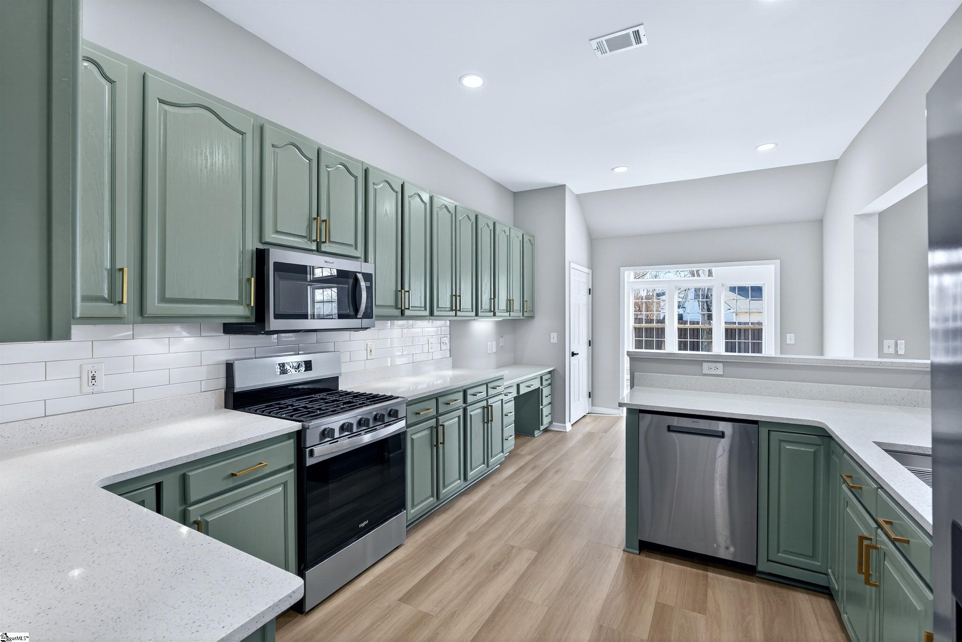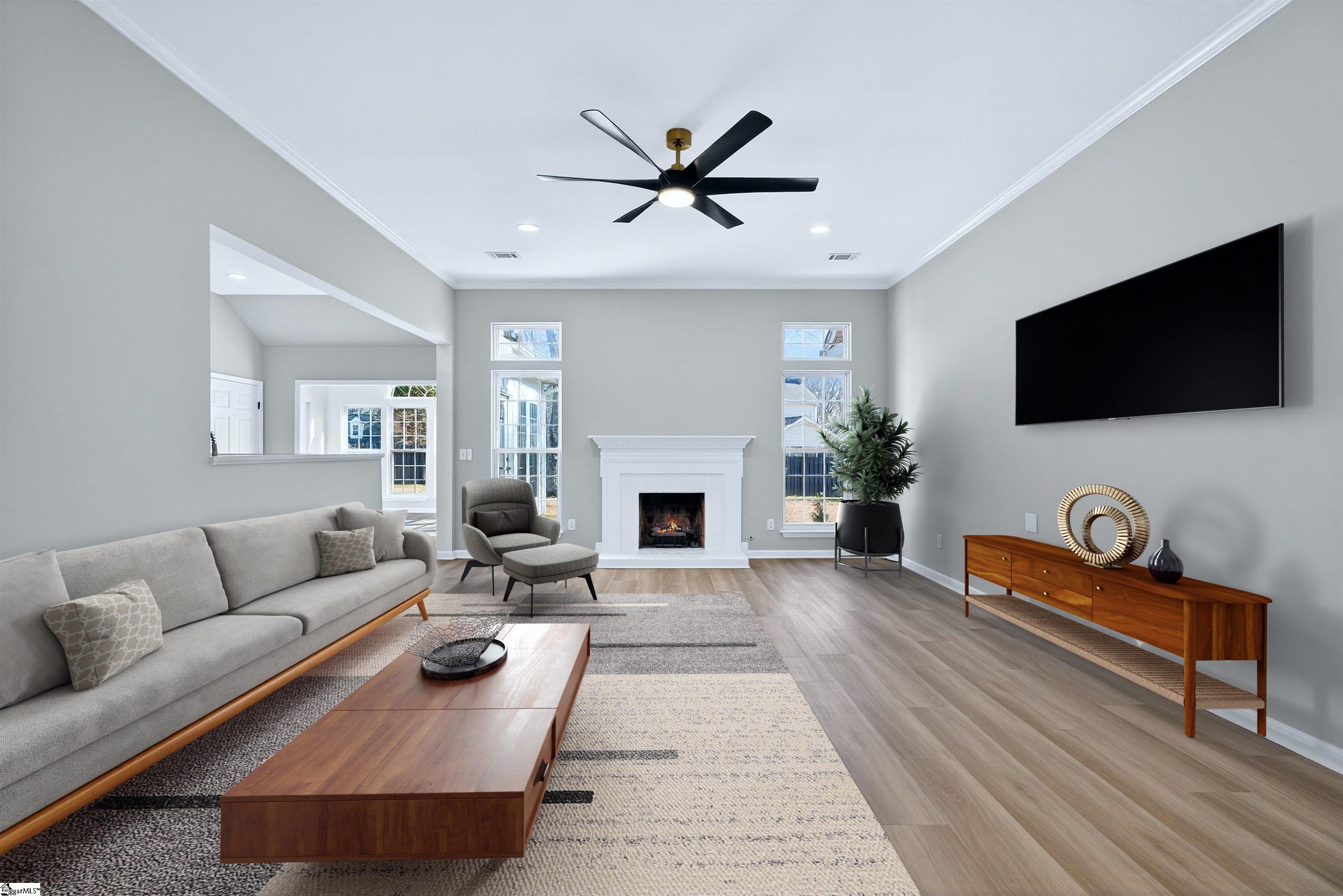 One level living rarely looks this good. Located in the desirable Roper Meadow community of Simpsonville, this beautifully renovated brick ranch offers a move in ready home with modern updates, an inviting layout, and a location that puts everything within easy reach. Just minutes from Five Forks, Southside schools, shopping, dining, and I-85, this home blends comfort, convenience, and style in all the right ways. With over 2, 200 square feet, this 4 bedroom, 2 bath home has been thoughtfully updated from top to bottom. Wide plank 9 inch LVP flooring, recessed LED lighting, and abundant natural light create a bright and welcoming feel throughout. The spacious living room is the heart of the home, centered around a striking masonry fireplace with gas logs and the option to convert to wood burning. A separate large dining room is perfect for hosting, while the breakfast nook offers a cozy everyday space just off the kitchen and sunroom. The kitchen is a true standout, featuring quartz countertops, under cabinet lighting, stylish mint cabinetry, a deep sink with an integrated strainer and cutting board, and brand new appliances including a gas range with an air fryer. Refrigerator, washer, and dryer are included, making this home truly turnkey. The primary suite is privately located on one side of the home and features a tray ceiling with recessed lighting, a spacious walk in closet, and a beautifully updated bath with two separate vanities and a travertine tiled ADA accessible shower with multiple shower heads. Shower glass can be installed at the buyer’s request. Three additional bedrooms on the opposite side of the home are generously sized and share a full bath, creating an ideal split bedroom layout. A light filled sunroom opens to a large 16x16 patio overlooking the flat, fully fenced backyard, perfect for pets, play, or entertaining. Situated on approximately 0. 28 acres, this home also offers a two car garage and access to neighborhood amenities including a community pool and sidewalks. Fully updated, thoughtfully designed, and perfectly positioned, this Roper Meadow home delivers easy one level living with space, style, and everyday comfort.