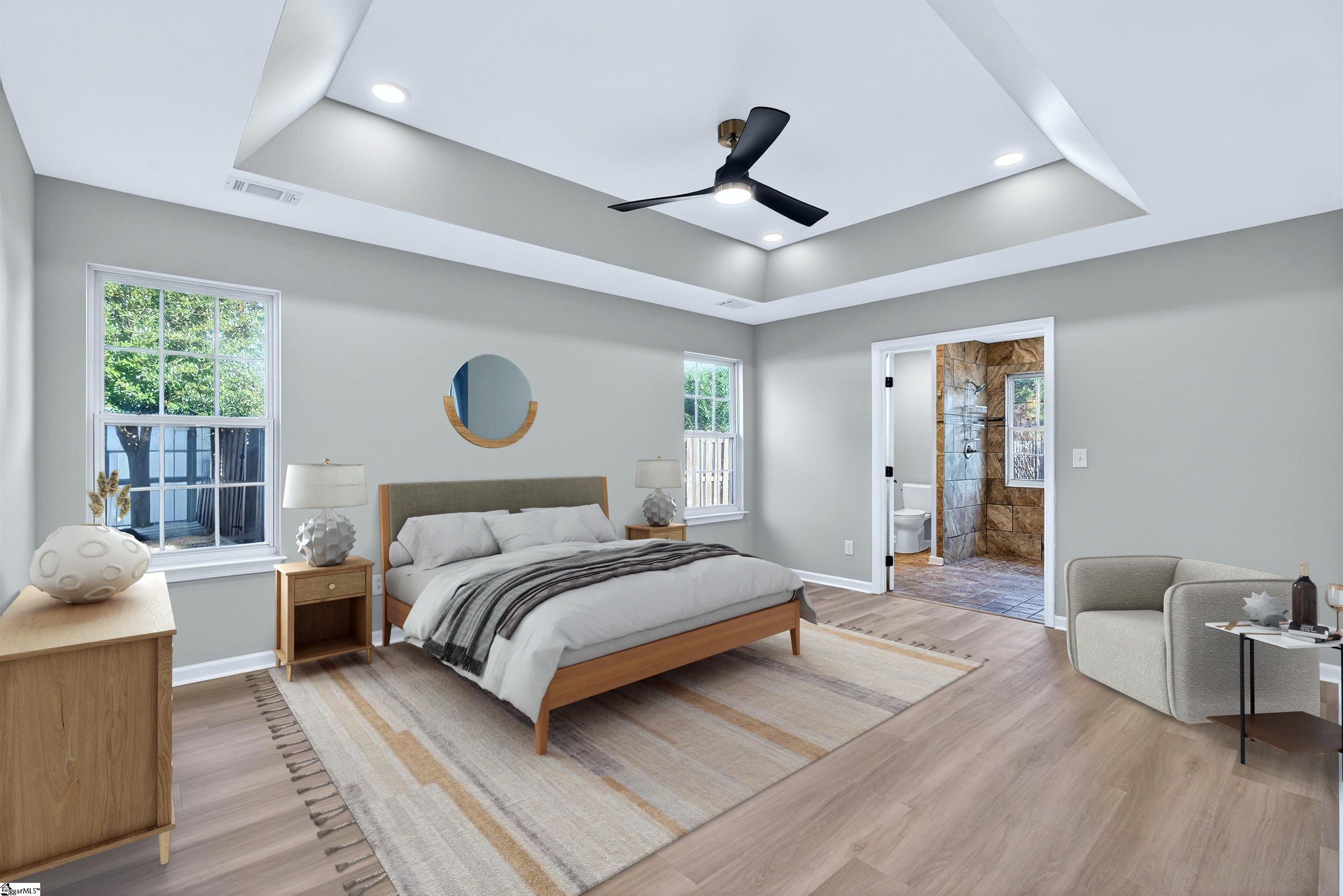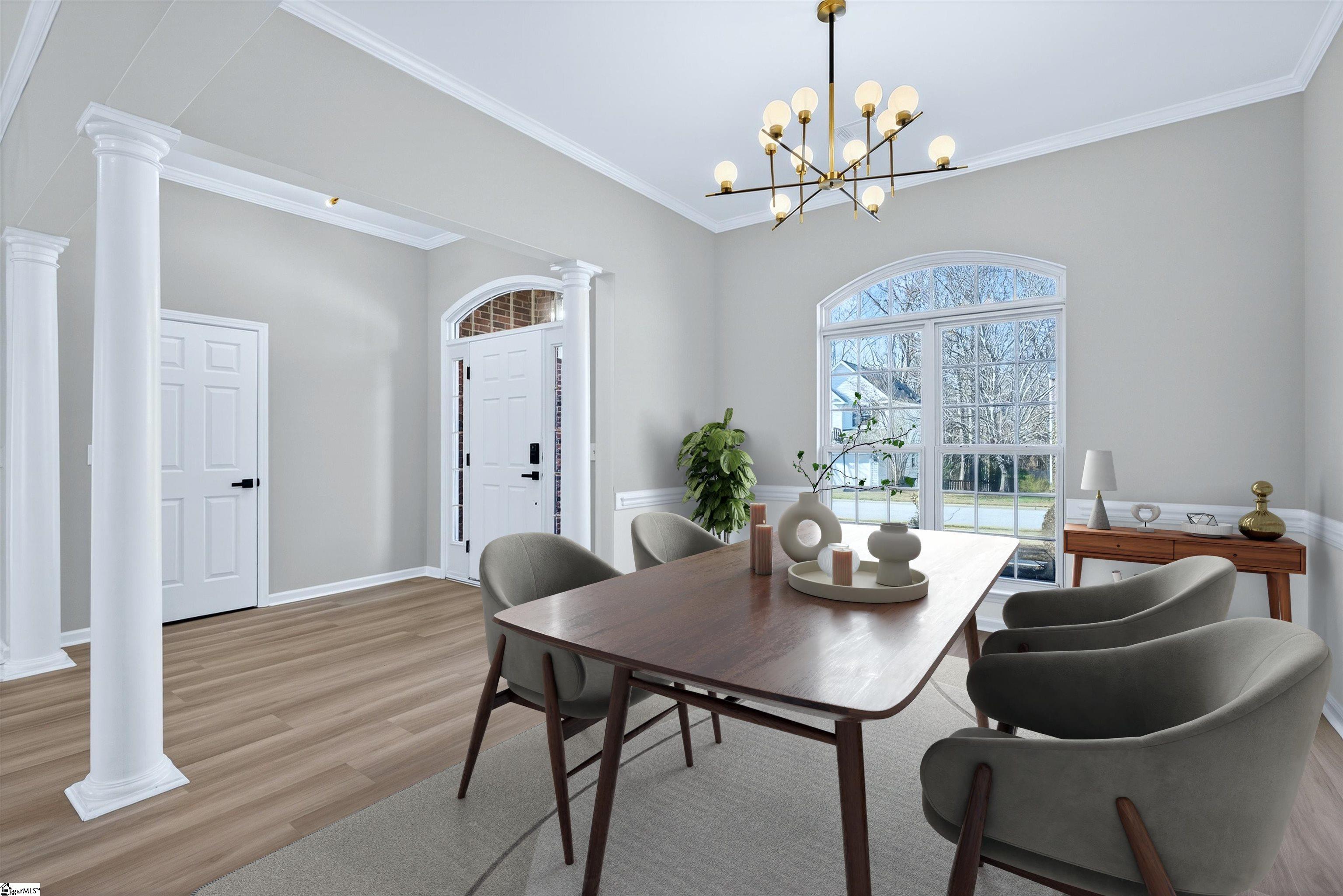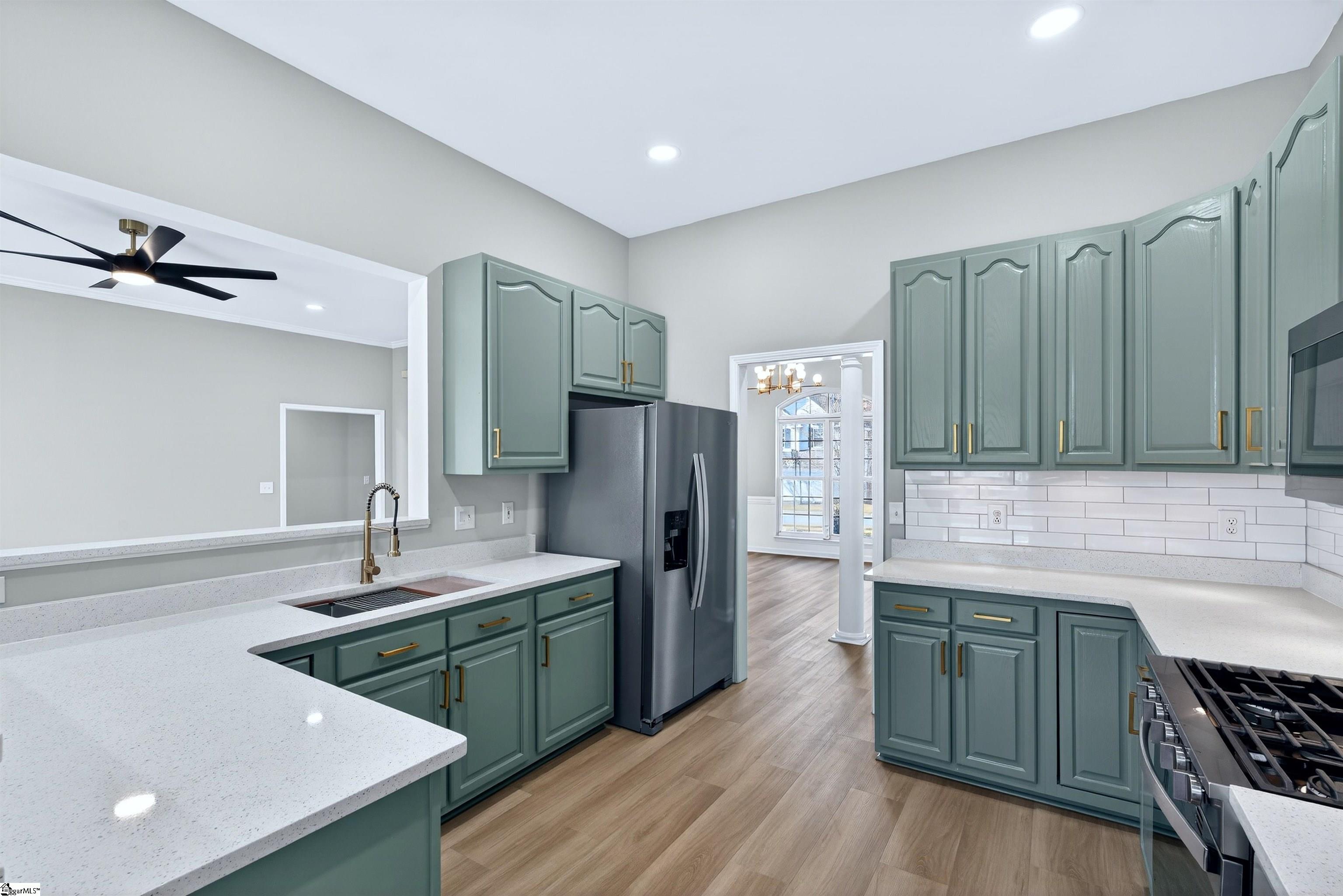 One level living rarely looks this good. Located in the desirable Roper Meadow community of Simpsonville, this beautifully renovated brick ranch offers a move in ready home with modern updates, an inviting layout, and a location that puts everything within easy reach. Just minutes from Five Forks, Southside schools, shopping, dining, and I-85, this home blends comfort, convenience, and style in all the right ways. With over 2, 200 square feet, this 4 bedroom, 2 bath home has been thoughtfully updated from top to bottom. Wide plank 9 inch LVP flooring, recessed LED lighting, and abundant natural light create a bright and welcoming feel throughout. The spacious living room is the heart of the home, centered around a striking masonry fireplace with gas logs and the option to convert to wood burning. A separate large dining room is perfect for hosting, while the breakfast nook offers a cozy everyday space just off the kitchen and sunroom. The kitchen is a true standout, featuring quartz countertops, under cabinet lighting, stylish mint cabinetry, a deep sink with an integrated strainer and cutting board, and brand new appliances including a gas range with an air fryer. Refrigerator, washer, and dryer are included, making this home truly turnkey. The primary suite is privately located on one side of the home and features a tray ceiling with recessed lighting, a spacious walk in closet, and a beautifully updated bath with two separate vanities and a travertine tiled ADA accessible shower with multiple shower heads. Shower glass can be installed at the buyer’s request. Three additional bedrooms on the opposite side of the home are generously sized and share a full bath, creating an ideal split bedroom layout. A light filled sunroom opens to a large 16x16 patio overlooking the flat, fully fenced backyard, perfect for pets, play, or entertaining. Situated on approximately 0. 28 acres, this home also offers a two car garage and access to neighborhood amenities including a community pool and sidewalks. Fully updated, thoughtfully designed, and perfectly positioned, this Roper Meadow home delivers easy one level living with space, style, and everyday comfort.