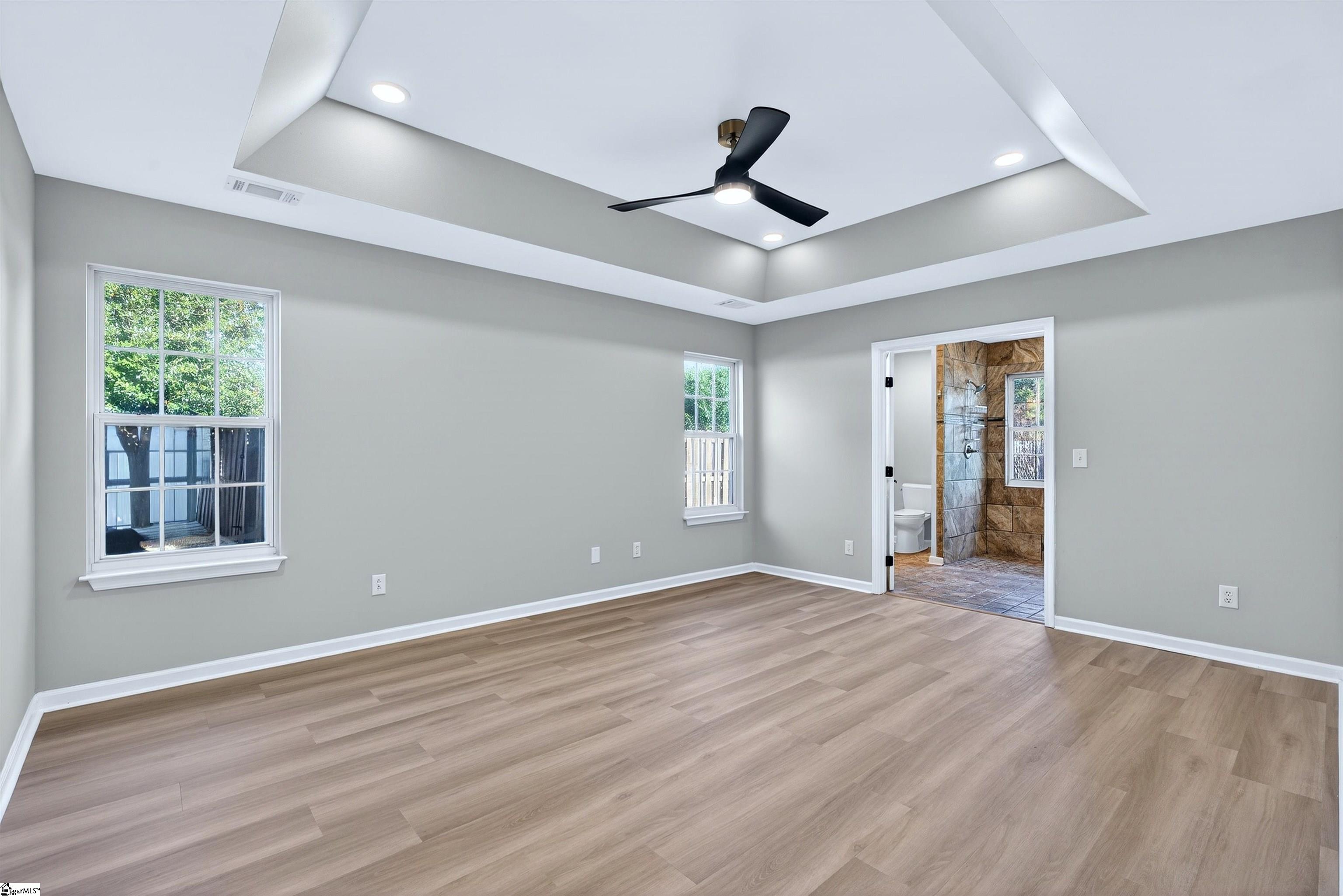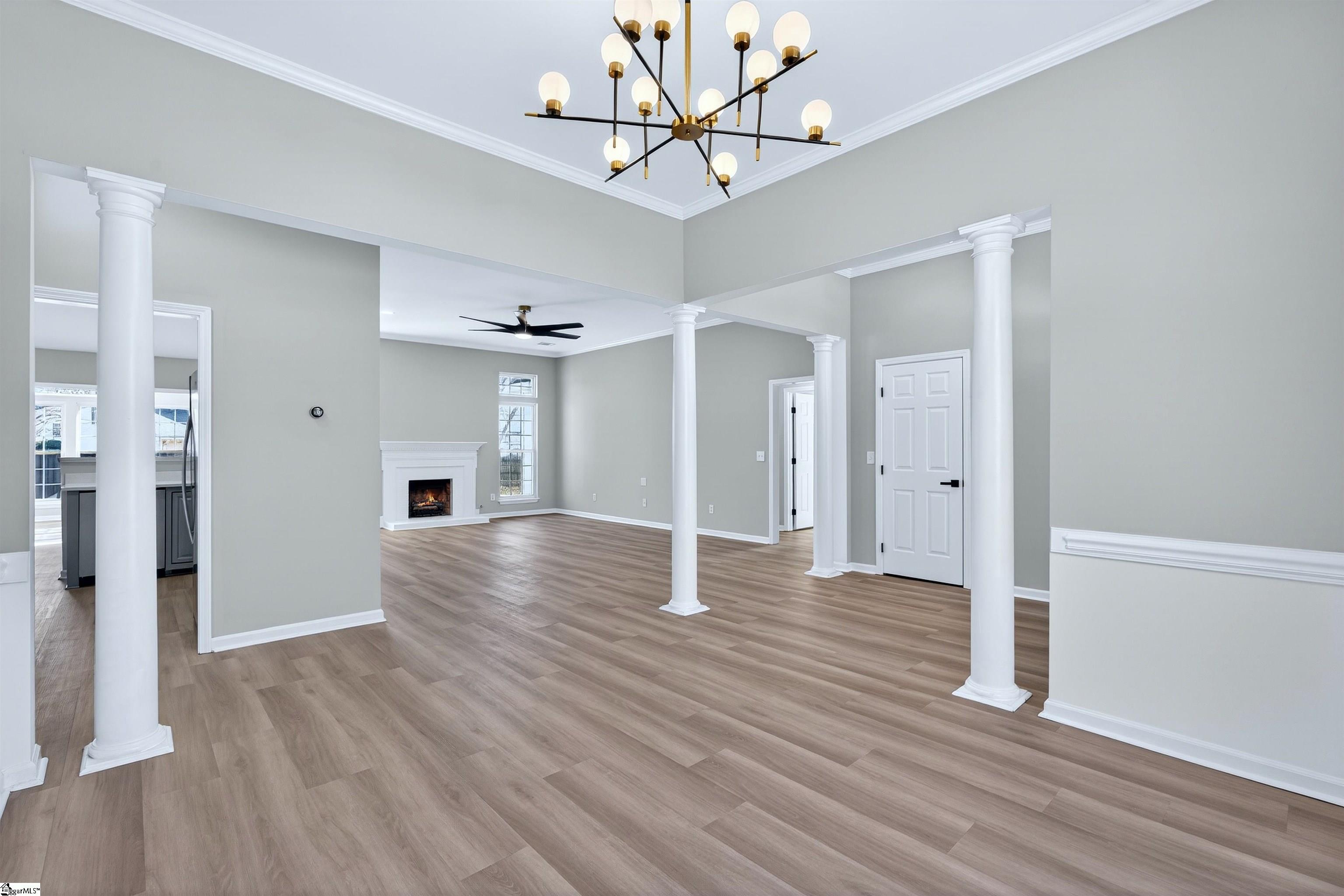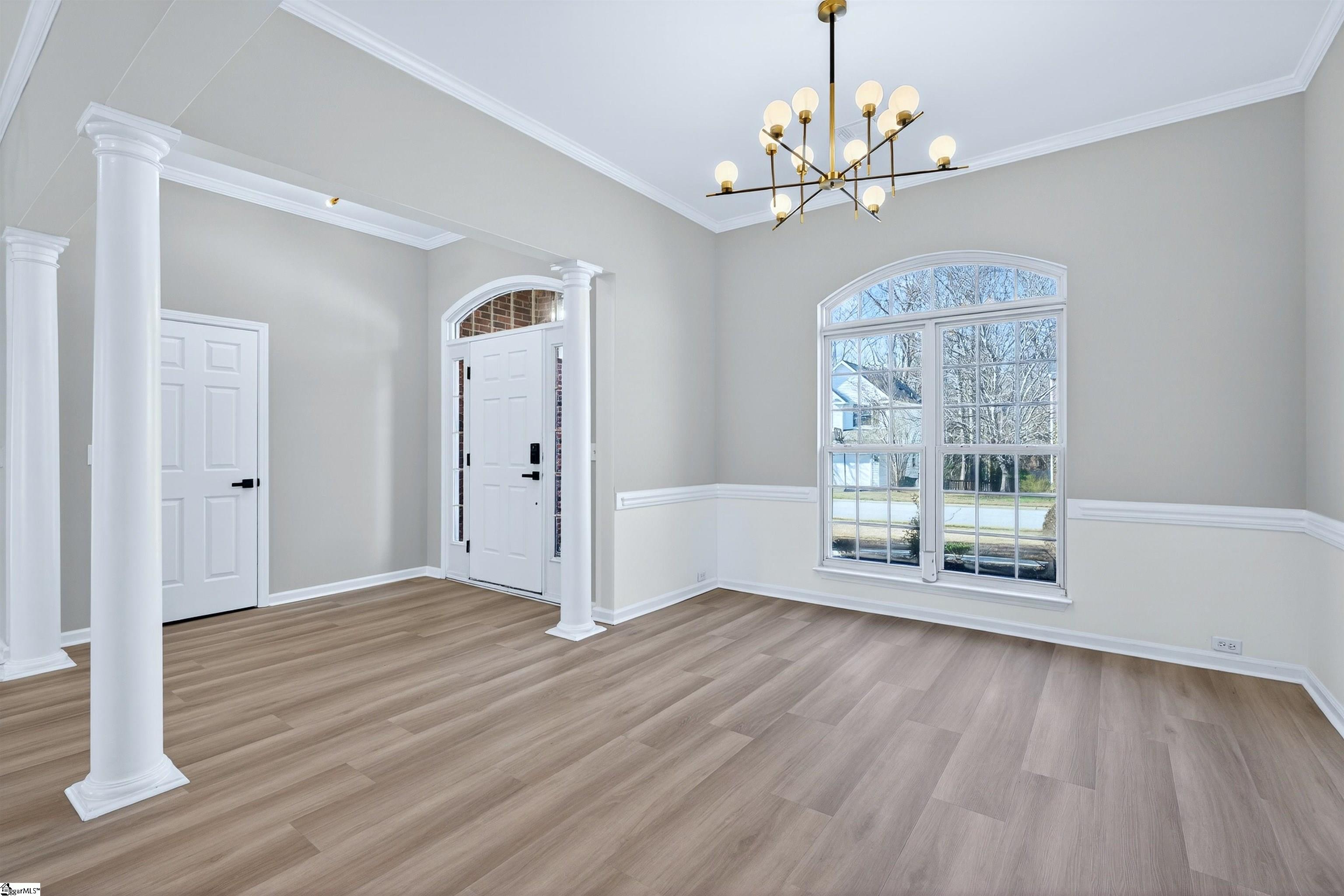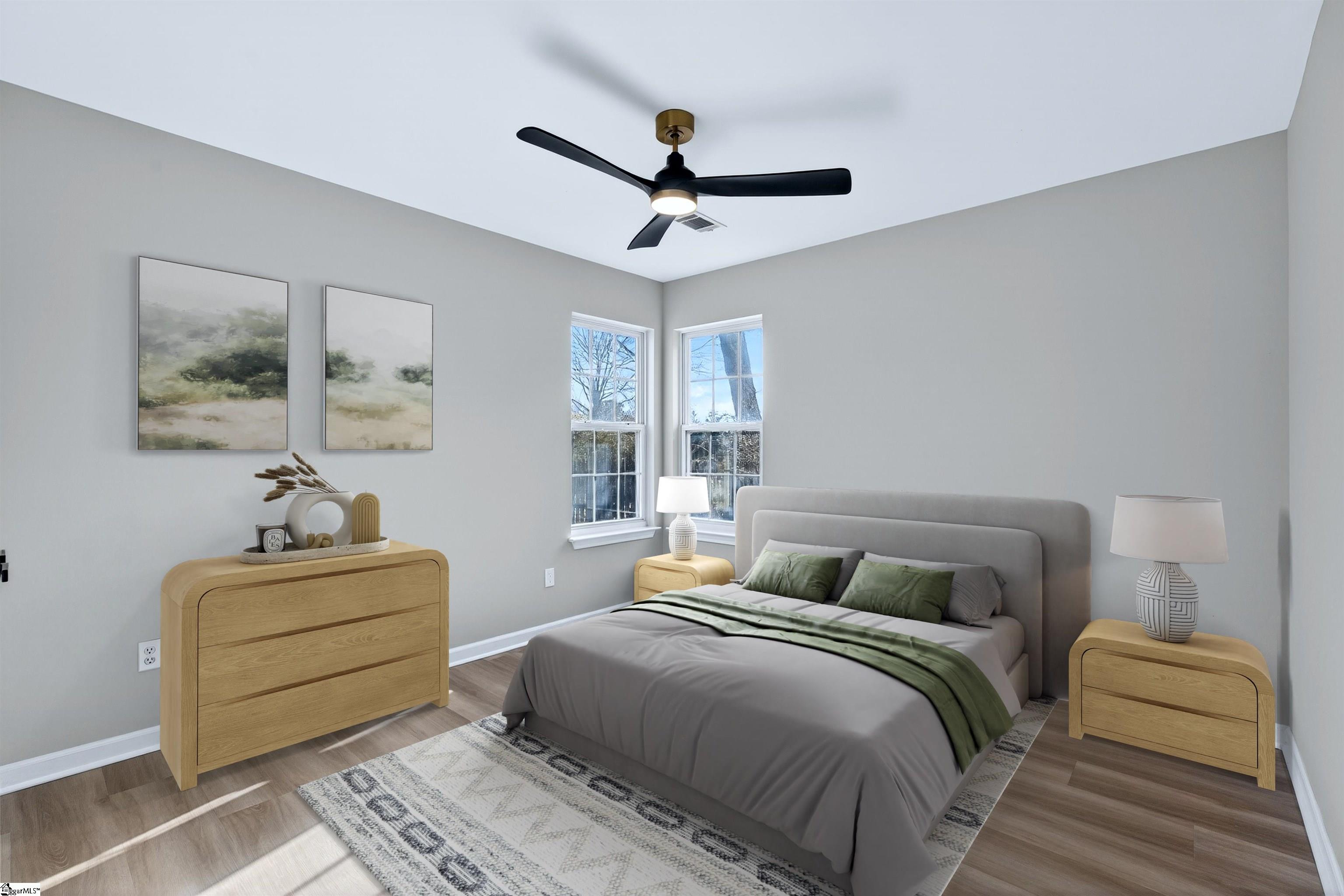 One level living rarely looks this good. Located in the desirable Roper Meadow community of Simpsonville, this beautifully renovated brick ranch offers a move in ready home with modern updates, an inviting layout, and a location that puts everything within easy reach. Just minutes from Five Forks, Southside schools, shopping, dining, and I-85, this home blends comfort, convenience, and style in all the right ways. With over 2, 200 square feet, this 4 bedroom, 2 bath home has been thoughtfully updated from top to bottom. Wide plank 9 inch LVP flooring, recessed LED lighting, and abundant natural light create a bright and welcoming feel throughout. The spacious living room is the heart of the home, centered around a striking masonry fireplace with gas logs and the option to convert to wood burning. A separate large dining room is perfect for hosting, while the breakfast nook offers a cozy everyday space just off the kitchen and sunroom. The kitchen is a true standout, featuring quartz countertops, under cabinet lighting, stylish mint cabinetry, a deep sink with an integrated strainer and cutting board, and brand new appliances including a gas range with an air fryer. Refrigerator, washer, and dryer are included, making this home truly turnkey. The primary suite is privately located on one side of the home and features a tray ceiling with recessed lighting, a spacious walk in closet, and a beautifully updated bath with two separate vanities and a travertine tiled ADA accessible shower with multiple shower heads. Shower glass can be installed at the buyer’s request. Three additional bedrooms on the opposite side of the home are generously sized and share a full bath, creating an ideal split bedroom layout. A light filled sunroom opens to a large 16x16 patio overlooking the flat, fully fenced backyard, perfect for pets, play, or entertaining. Situated on approximately 0. 28 acres, this home also offers a two car garage and access to neighborhood amenities including a community pool and sidewalks. Fully updated, thoughtfully designed, and perfectly positioned, this Roper Meadow home delivers easy one level living with space, style, and everyday comfort.