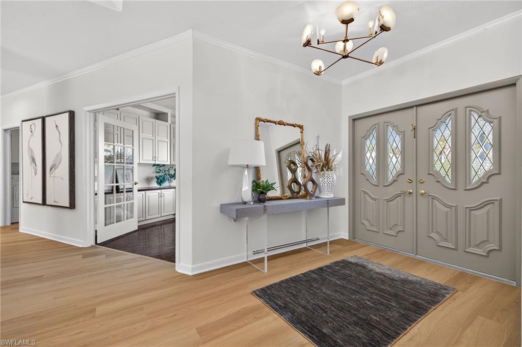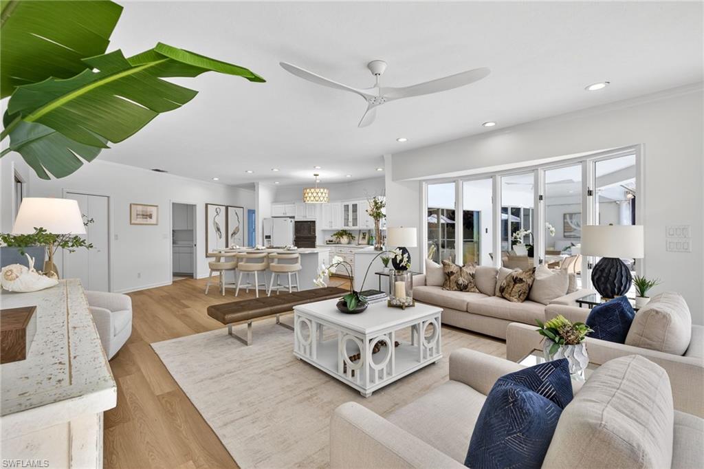 This impressive single-family residence in the prestigious Wyndemere Country Club delivers exceptional space, versatility, and outdoor living on one of the neighborhood's largest lots. Situated in the desirable Mahogany Bend, the home sits on . 78-acres with mature landscaping, complete privacy, and ample room for future expansion. The residence offers 3, 040 square feet under air (with a total living area of 6, 444 square feet) and includes 3 bedrooms, a dedicated office plus a second flexible den/office space ideal for today's dual-work-from-home lifestyles. One of the feature highlights of this home is the expansive outdoor entertaining area, with a large pool and spa complemented by an expansive, covered lanai that flows directly from the kitchen bar, creating seamless indoor-outdoor living. Perfect for entertaining large gatherings or intimate family dinners. Inside, an abundance of natural light pours through oversized windows and sliders. Blending coastal sophistication with everyday comfort, this home shines with a bright, modern refresh, featuring newly installed luxury vinyl flooring throughout the main areas, recessed lighting, contemporary ceiling fans and chandeliers, plush bedroom carpeting, new paint throughout and brand new HVAC. The garage features custom-built storage closets with space for golf clubs, tennis gear, beach equipment, and all the active essentials for Naples living. This rare offering combines substantial space, prime location, and strong potential in a top-tier golf community, ideal for those seeking a large estate in one of Naples premier clubs. Immediate golf is available! Wyndemere, an award-winning 2025-2026 Platinum Club of America, offers unmatched amenities, including 27 holes of Arthur Hills golf, 10 HarTru tennis courts, pickleball courts with 165 stadium seating for pickleball pro exhibitions, active bocce teams, full croquet, a resort style zero entry pool, golf simulator, putting greens, driving ranges, 2 pro shops. A full-service spa, salon and state of the art fitness center with a full schedule of group exercise classes and personal training. Enjoy formal dining, as well as indoor/outdoor casual dining at the Tiebreaker, and a lively social schedule of events/parties at the club. Wyndemere, known for its friendly and welcoming membership, is ideally located within minutes to 5th Avenue world class dining, shopping and the spectacular sugar sand Gulf beaches. Live everyday like you are on vacation and come join this amazing Naples lifestyle!