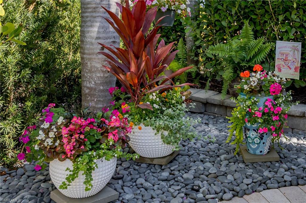 Lot 142 - Welcome to a private tropical retreat within the gates of the prestigious Naples Motorcoach Resort, a Class A–only, deeded motorcoach community in Naples, Florida. From the moment you arrive, you are welcomed by a lush, flower-lined entrance accented by stately Royal Palms, flowing fountains, and an elegant clubhouse—setting the tone for the exceptional lifestyle that awaits. This paved, turn-key motorcoach lot is beautifully landscaped and designed to offer both privacy and a true resort-style ambiance. Mature tropical plantings and manicured greenery surround the property, creating a serene and secluded setting. The tiki hut provides the perfect space for entertaining or relaxing, while enjoying the breathtaking view of your floral and rock garden.