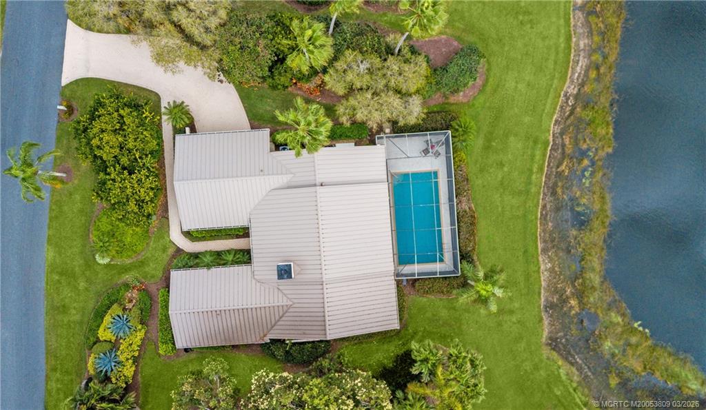 Enjoy tranquil views overlooking the pool and lake, perfect for indoor-outdoor Florida living.