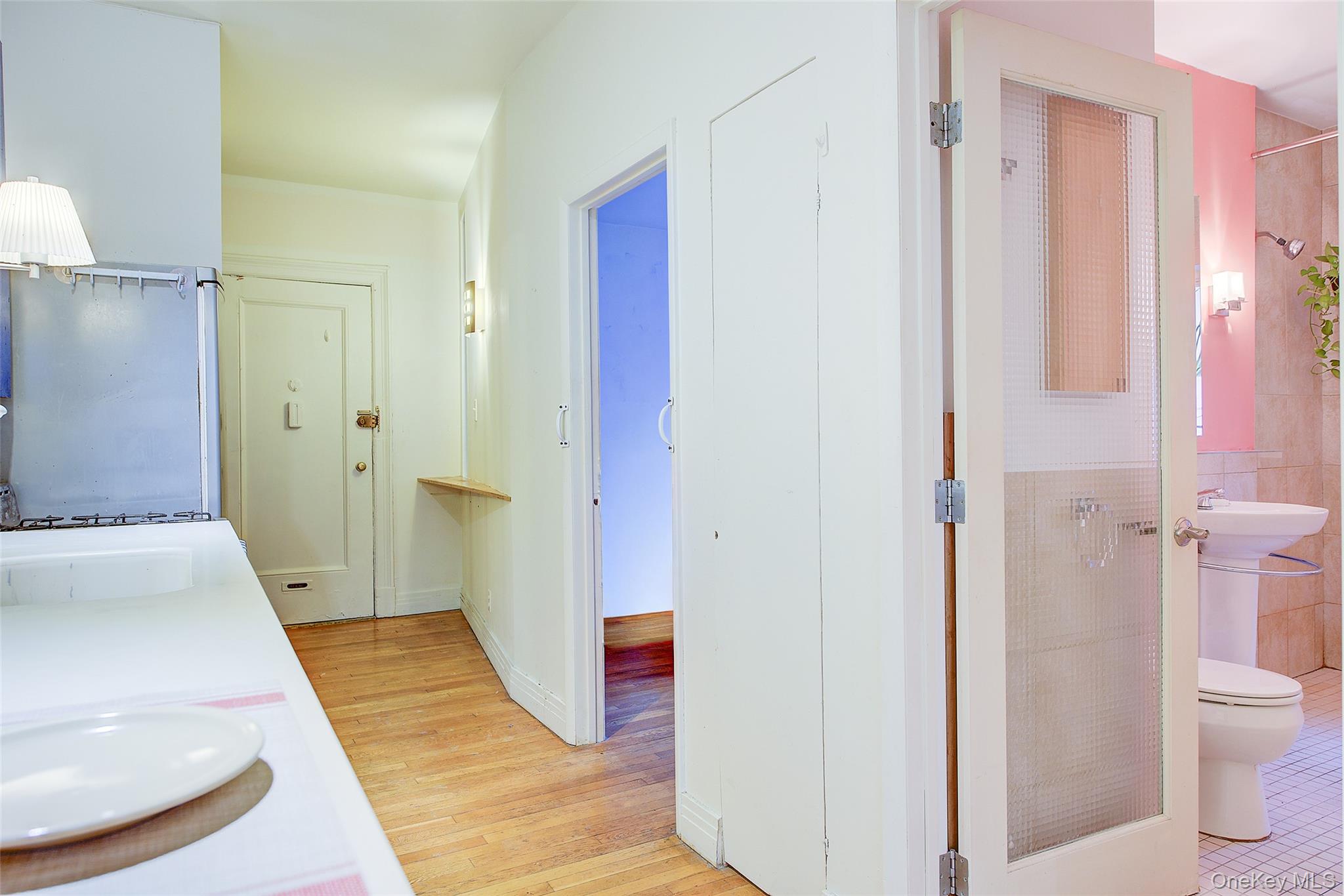 TENNIS VIEW APARTMENTS, FH GARDENS Burns Street & Tennis Place . THE UNIT: Welcome to #416… a unique, bright, sunny and sophisticated, one-of-a-kind apartment w/ an ideal floor plan - intentionally redesigned (vs. the original) by highly accredited and accomplished owner architect, Edward McGinnis w/ a focus on optimized living, max functionality/flow and of course, daily comfort and enjoyment in mind. An expert approach to this reworked space considers lifestyle needs, natural elements and elevated design decisions throughout paired w/ an overall aesthetic that boasts classic elegance and modern convenience… you’ll find quality craftsmanship right down to the details. . Step inside to a long entry hall and foyer w/ triple-wide, extra deep storage closet and novelty built-in shelf feature. To the left, a nicely-sized bedroom w/ large hidden closet sits apart from the rest of the apartment to maintain privacy. Look beyond to a sleek open-concept galley kitchen w/ lots of closed cabinetry, expansive shelving w/ hidden LED light illumination and plenty of countertop space by way of a custom, multi-functional built-in breakfast bar peninsula and dining area that easily converts to a desk top and/or other work space as needed. Opposite the kitchen, find even more flexible storage in a built-in pantry/linen closet that sits next to an expanded luxury bathroom w/ a spa-like feel, gorgeous novelty Italian tile and an open European-style shower w/ slanted drainage system that effectively streamlines and contains water flow. (option to add shower curtains or glass doors in addition. ) Look beyond to a nicely-sized, sun-drenched, L-shaped main living space w/ designated dining area, oversized windows (one at 9 feet long!) and dual exposures to allow plenty of light. Other highlights include classic hardwood floors, 9 foot ceilings, crown moldings and so much more… . This special apartment is impressively featured in the co-op’s Centennial coffee table book and is truly, an overall must-see! . . LOCATION/BUILDING: Enjoy the best of city and suburb in this prime ++ location… The Tennis View Apartments is a coveted, prestigious and landmarked mid-rise co-op building ideally located in the extraordinary, private community of Forest Hills Gardens and that offers both full-amenity living and pre-war charm. Enjoy extremely well-manicured interior and exterior grounds. Beautifully landscaped front gardens and a residents-only private park w/ playground and seating is accessible by key. Live-in Super & Porter w/ full maintenance staff in addition. On-site Property Manager & Resident Concierge w/ in-person office hours open to residents. New full-visibility, camera surveillance system across common areas and building perimeter. New, state-of-the-art video intercom system w/ easy remote management and guest/delivery access. Fully-equipped laundry room w/ plenty of machines & advanced wifi/app capability and convenient tap-to-pay option. Add’l in-building storage options & bike room. Online communication portal for super easy management of building communication, work orders, bill pay and more. Easy, private street parking by annual permit for residents only. Overnight neighborhood patrol car and security. This prime location is just steps from absolutely all - i. e. LIRR, local & express subway & buses, shops, entertainment, fine dining, Trader Joe’s, the beautiful and enchanting Station Square, West Side Tennis Club, Forest Hills Stadium and more! Minutes to all major highways and airports also make this a commuters dream. . OTHER: Board application, approval & interview required. Min down payment = 20%. Max DTI = 28%. Dogs welcome. Sublets after 2 years. Gifts allowed. Maintenance includes heat, hot water and real estate taxes.
