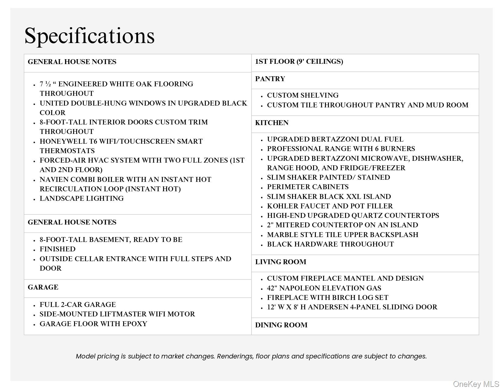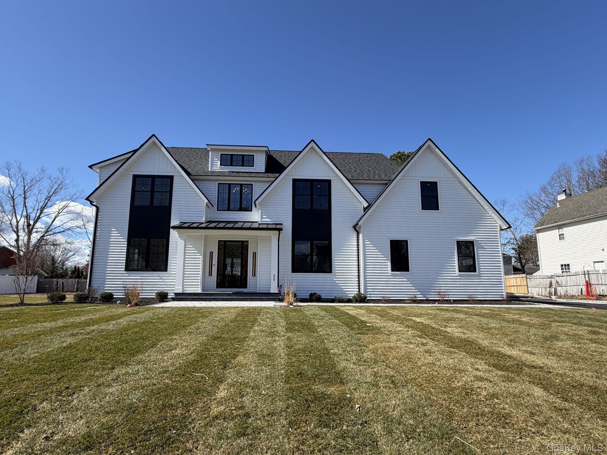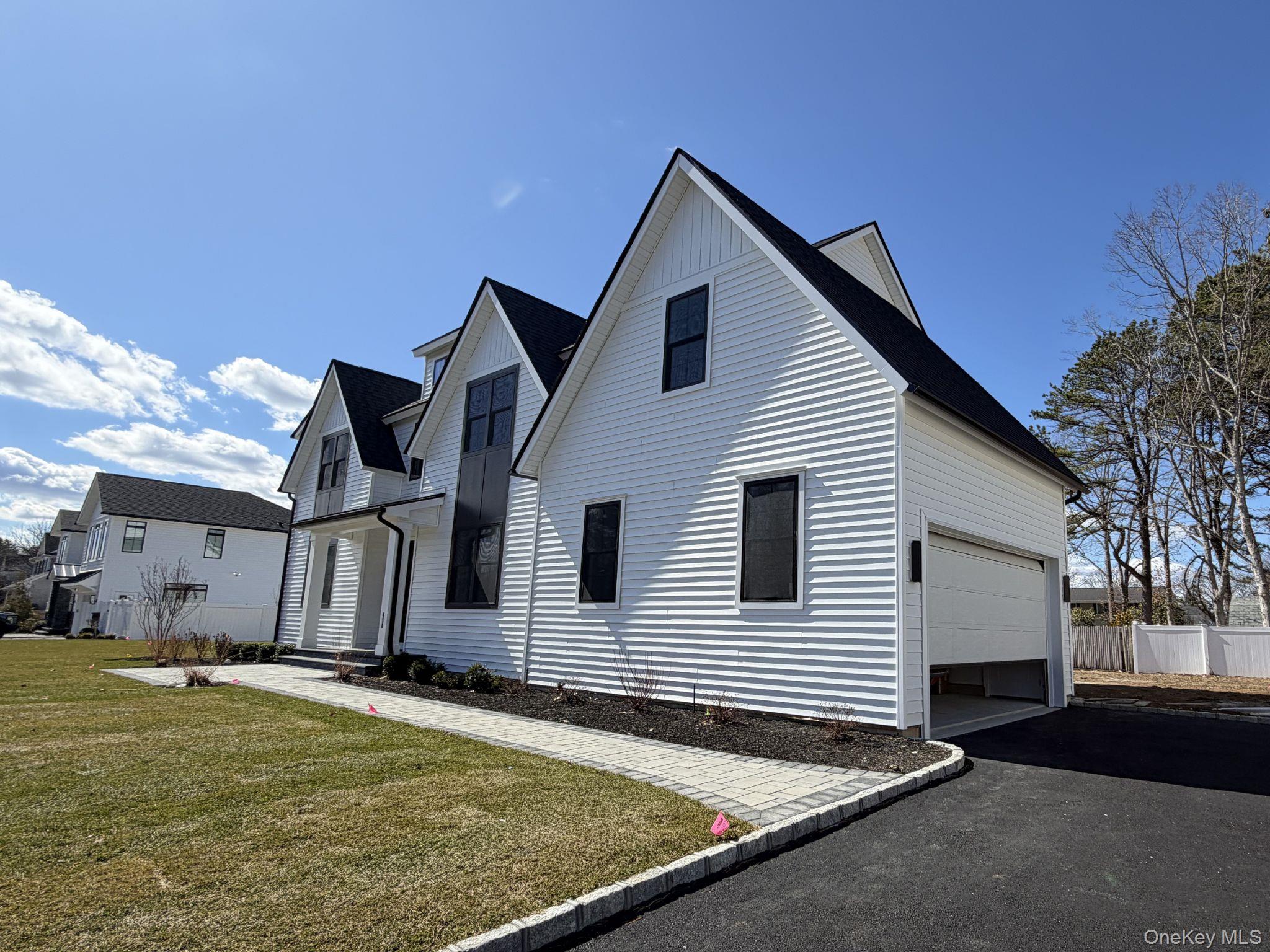 Builder's fully custom 3, 176SF (4 bedrooms + office and 2. 5 bathrooms) modern farmhouse is perfectly appointed by a Hampton's based interior designer. Enter the home into an expansive ~25’ high open foyer (floor to ceiling panel accents) with staircase stacked to the side creating a wide view through the home with 9’ ceilings on your first and 2nd floors including full 8’ doors throughout the home. Modern living across a tremendous 48’ span: your professionally designed custom kitchen opens into your dining area and then into your great room with a Napolean gas fireplace finished with a custom mantle design from floor to ceiling. The formal living room includes pocket doors for quiet conversation or can be left open while entertaining. If you want something special, this kitchen is for you with a completely upgraded Bertazzoni appliance package including a 6-burner gas range, modern slim shaker cabinetry with floor and wall accent lighting, an oversized island intended for both service and entertainment and a full walk-in pantry. Buyer to Pay Transfer Tax, Survey, Sewer Connection, Gas Connection, Water Tap Fee. Model pricing, specifications, and finishes are subject to change. The 2nd floor has a grand feel with a 6’ wide hallway with double doors entering your primary suite which includes two walk-in-closets and an amazing primary bathroom finished with large format tiles, a private water closet, double vanity with built-in linen closet, soaking tub with a backlit niche and frameless shower design. Also included is 3 other bedrooms, 2 of which have large walk-in closets, a walk-in laundry room and oversized bathroom with a custom designed shower and double floating white oak vanity with a marble top. The house includes 7” engineered white oak flooring, smart wifi touch screen thermostats, 2 zone HVAC system, Navien wall mounted hot water on demand, 2 car- side entry garage with upgraded epoxy floor, full basement with outside entrance. Enjoy the benefits and efficiencies of a new construction with none of the work. Everything is done ready for you to move in right away.