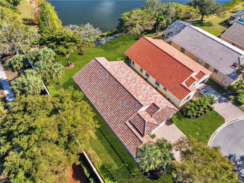 Rarely available West Indies Floor plan listed featuring 2 bed +den with lake view. New roof!!!!! What makes this particular home so special is its location at the end of a cul-de-sac offering a longer pavered driveway then most of the other homes. Be wowed by tall ceilings throughout and a very spacious floor plan. Tile on the diagonal throughout the main living areas, bathrooms and den offer easy maintenance. Cozy feel with carpet in both the main bedroom and the guest bedroom. A spacious Main bed En-suite offers a separate tub, walk in shower, double vanity with make up counter and separate water closet. Main bed closets are two spacious walk-in closets. Kitchen features stainless steel appliances as well as granite counters. Furniture is negotiable. Cascades at Estero is a gated active 55+ community with a 26K SF clubhouse oversized indoor/outdoor pools, ballroom, card, arts & crafts rooms, billiards, fitness, sauna, 4 pickle ball, bocce, 5 HAR-Tru tennis courts, low HOA fees. Convenient location with shops, restaurants, medical and close to airport. Pet friendly. HOA fees even include cable and Internet and home security, landscaping and recreational facilities saving residents hundreds of dollars a month!!!!!