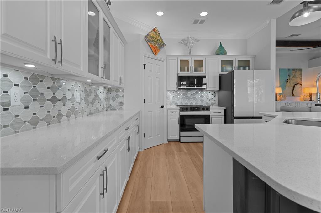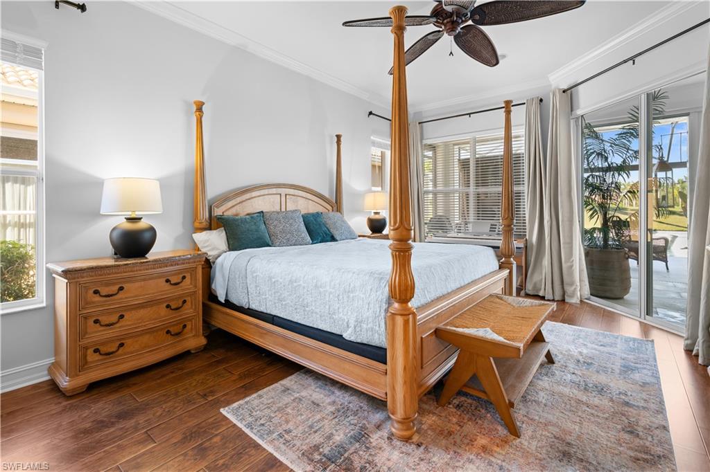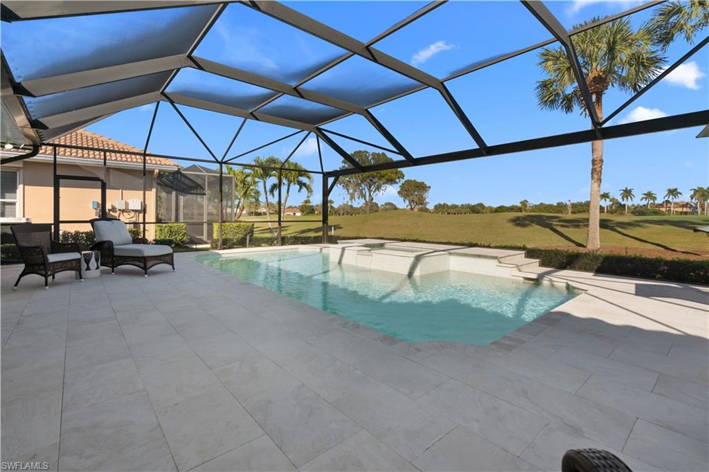 Perfectly positioned on a quiet, private cul-de-sac in Masters Reserve at Lely Resort, and offering one of the lowest HOA fees in Lely Resort, this Augusta 11 open floor plan home has been extensively upgraded throughout. The home features peaceful eastern exposure with golf course views beyond the oversized screened lanai, ideal for enjoying sunrise mornings, along with a 2024 roof, 2024 A/C system, luxury vinyl flooring throughout, fresh interior and exterior paint, an upgraded lanai, new travertine pool deck and pool, and custom landscaping. Inside, the bright kitchen showcases white cabinetry, quartz countertops, an island with bar seating, and Samsung stainless steel appliances. The bedrooms offer walk-in closets, the second bathroom includes a walk-in shower with updated mirrors and lighting, and the spacious owner’s suite features his and her sinks, a walk-in shower, a soaking tub, and updated fixtures. This home includes direct access to the Player’s Club and Spa with resort-style pools, clubhouse dining, fitness center, full spa services, bocce, pickleball, tennis courts, a lively tiki bar, two public golf courses, and one private course, delivering the ultimate Naples lifestyle.