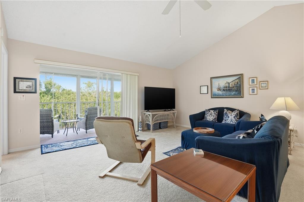 Welcome to the Perfect Combination - E303 is an oversized unit with vaulted ceilings, western exposure, overlooking a preserve, and only 1. 5 miles from Downtown and all Fifth Ave South has to offer. As you exit the elevator onto the third floor you will be overlooking one of two community pools and just a few steps away you will find your new front door. A large kitchen, breakfast bar, dining area, family room and lanai make up your main living space. The primary bedroom has a large walk in closet and step in shower. Being a split floor plan the second bedroom is "right" sized for your guests and has adequate space to incorporate an office. If you are only here a part of the year this home has the ability to provide solid rental income as the community permits multiple rentals as long as they are for at least 30 days. Stop by to truly appreciate how well Naples Sandpiper Bay Club is maintained. Other advantages offered include: the electronic lanai storm shutters, oversized utility and laundry room, first floor bicycle storage under roof, grilling stations, recently replaced roofs, freshly painted buildings, and your only utility bill being your electric. Some updates are needed and we have taken this into consideration with the very reasonable list price for everything being offered. Schedule your showing soon, it may not last long.