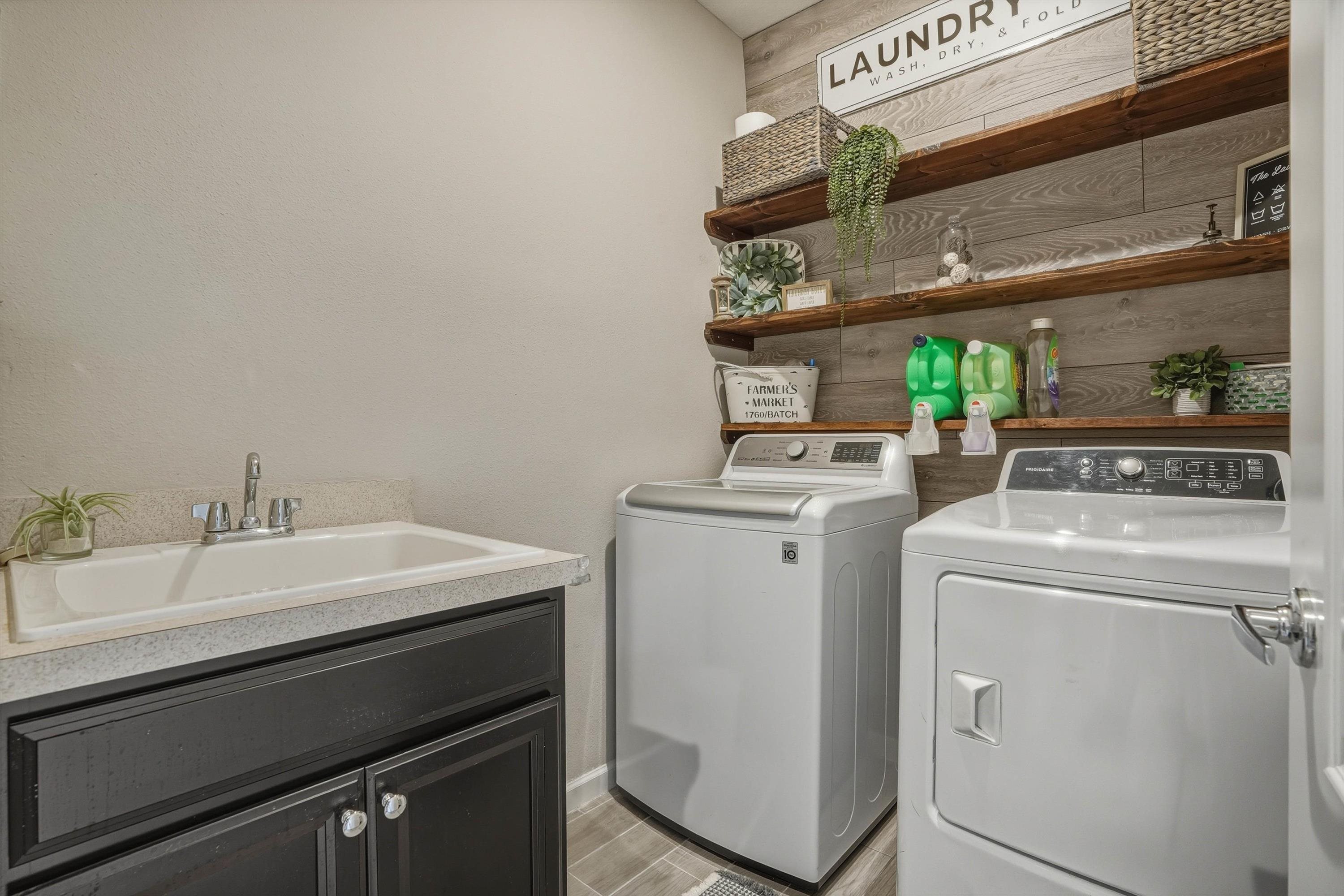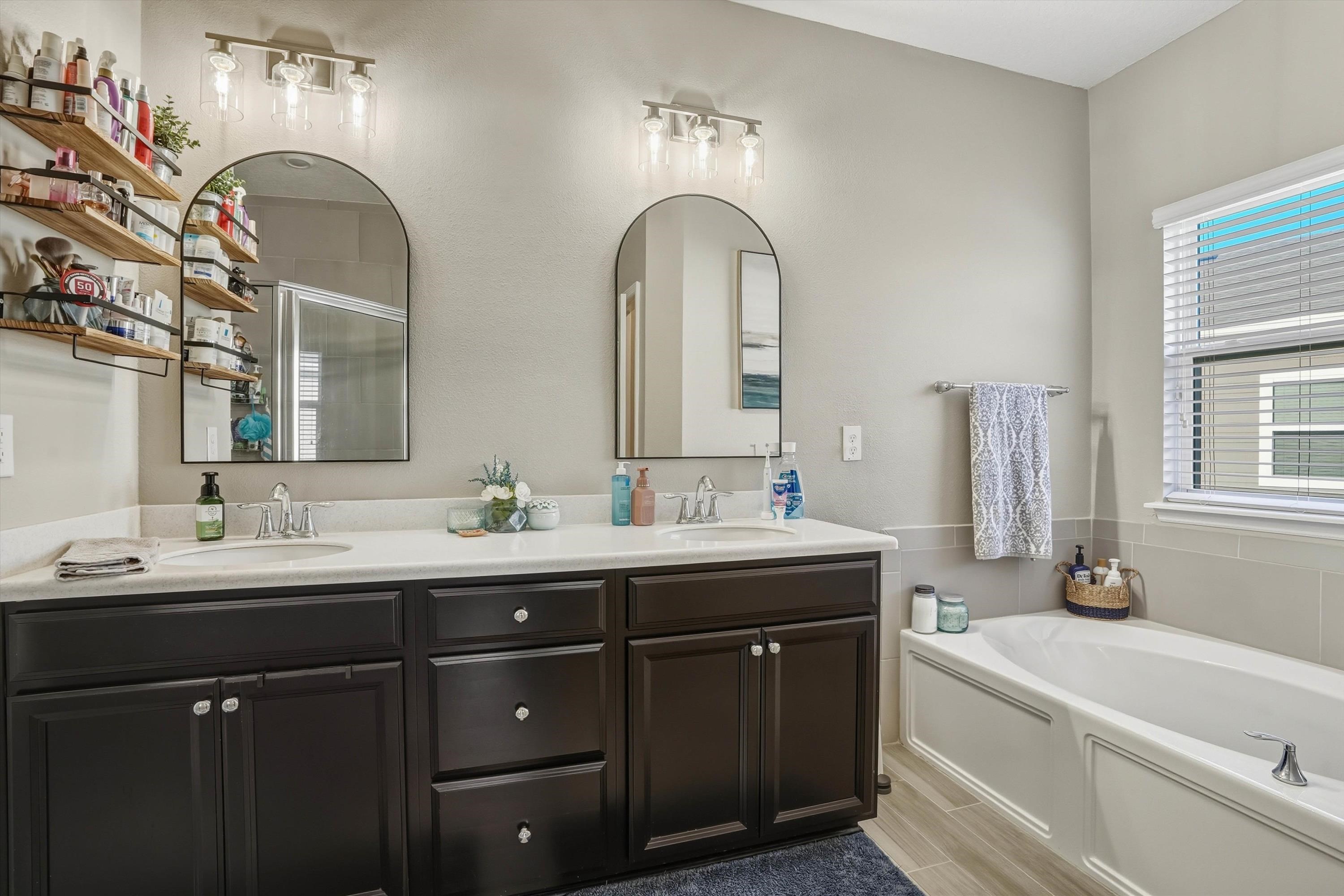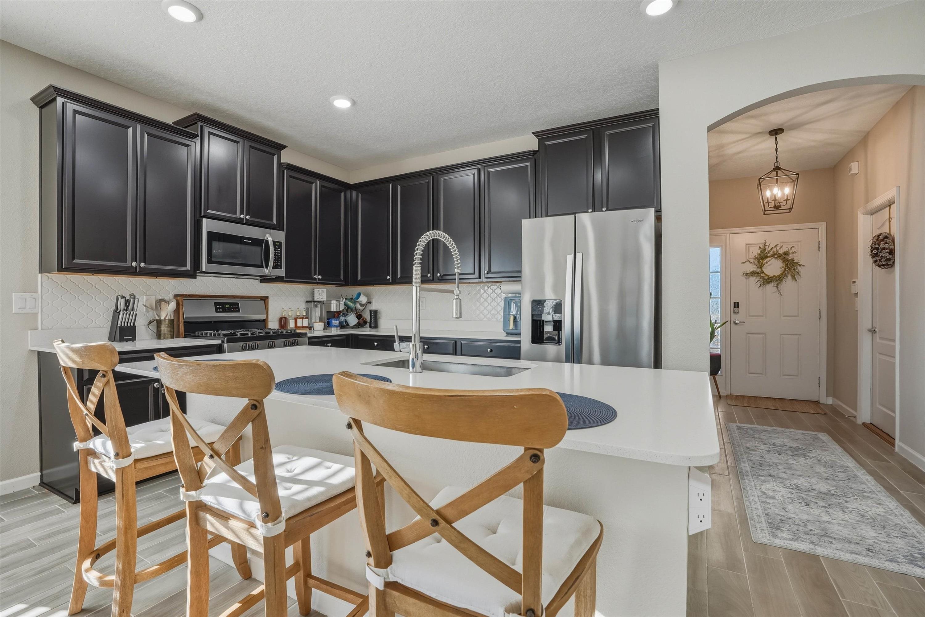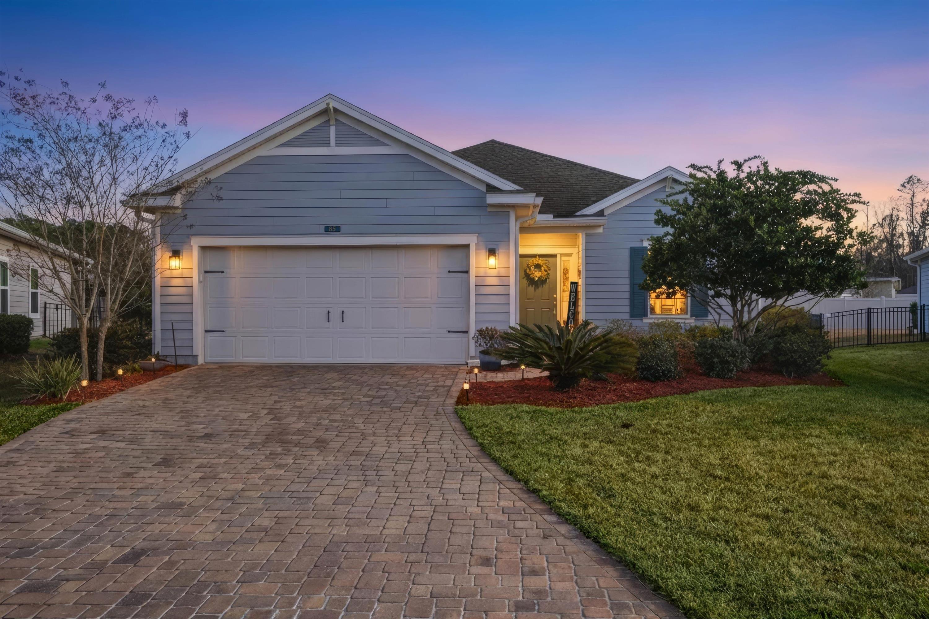 This is NOT your cookie cutter home in the gated community of Windward Ranch! From the moment you enter the foyer, the pride of ownership shines through. Custom built-in navy blue shelving and cabinetry adorn the front office space for an instantly elevated feel. Wood-look plank tile floors provide low maintenance living throughout the main living areas while the bedrooms are blanketed in soft plush carpet. This floor plan flows seamlessly from the kitchen with bar seating, stainless steel appliances, and elegant tile backsplash, through the casual dining area, and on to the living room anchored by an electric fireplace with shiplap surround and a cozy mantle. The living space extends even further out through to the screened lanai and outdoor paver patio to enjoy the best of Florida living. The back yard is larger than some as it is situated on the curve of the road so opens up nicely to the back. With a split floor plan, spacious bathrooms, and many up-styled areas adorned with custom woodwork, this house is easy to call home!