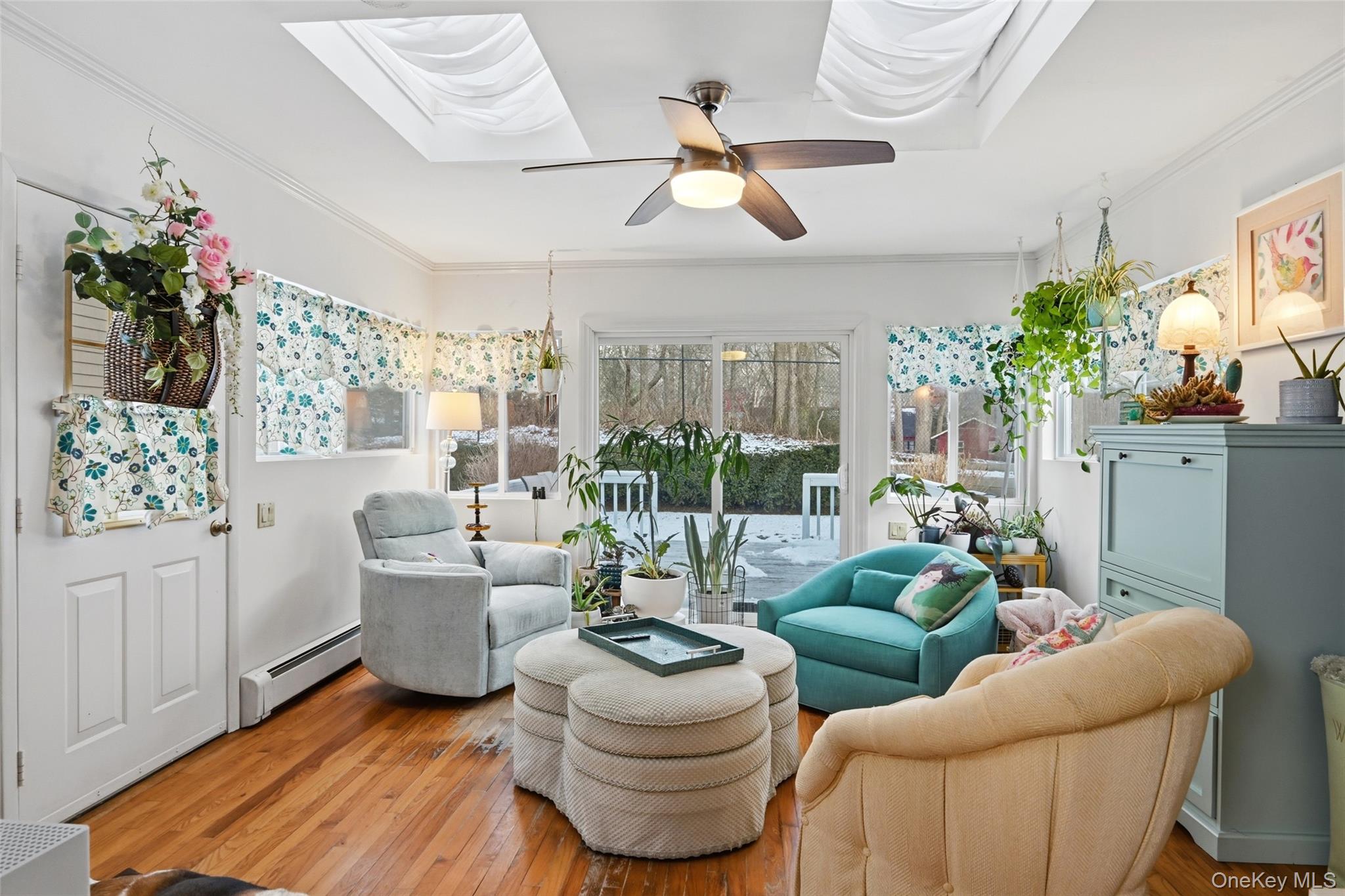 Charming home located in the quaint beachfront community of Wading River Shores consisting of 48 homes with private deeded beach rights on the Long Island Sound. Also in Shoreham Wading River school district, this home is ideal for year round living or a summer retreat. . The open front porch invites you to relax watching evening sunsets over the sound. Home features cozy living room anchored by a fireplace and hardwood floors that run throughout the home. An updated white kitchen featuring solid surface counters, stainless sink, and appliances seamlessly opening into a dining area/living room with a wall of windows/shutters . Modern bathroom, recently updated in 2019, featuring a contemporary step-in shower and a double vanity. Bright rear room has two sky lights, side door and sliders leading to low profile deck in rear. The Laundry room is on main level. The basement is perfect for storing your paddle boards, kayaks, bikes, or summer deck furniture. Updated 2025 electric panel 200 amp, and new baseboard. Enjoy outdoor living in the serene, private backyard with plenty of space for gardening and lounging, complemented by a new driveway and retaining wall completed in 2025.